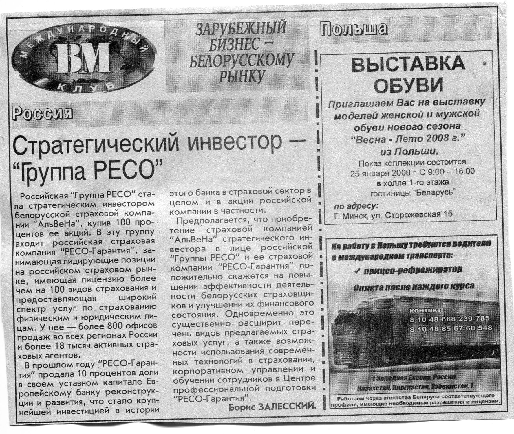 Зарубежный бизнес - белорусскому рынку // Вечерний Минск. - 2008. - 14 янв.