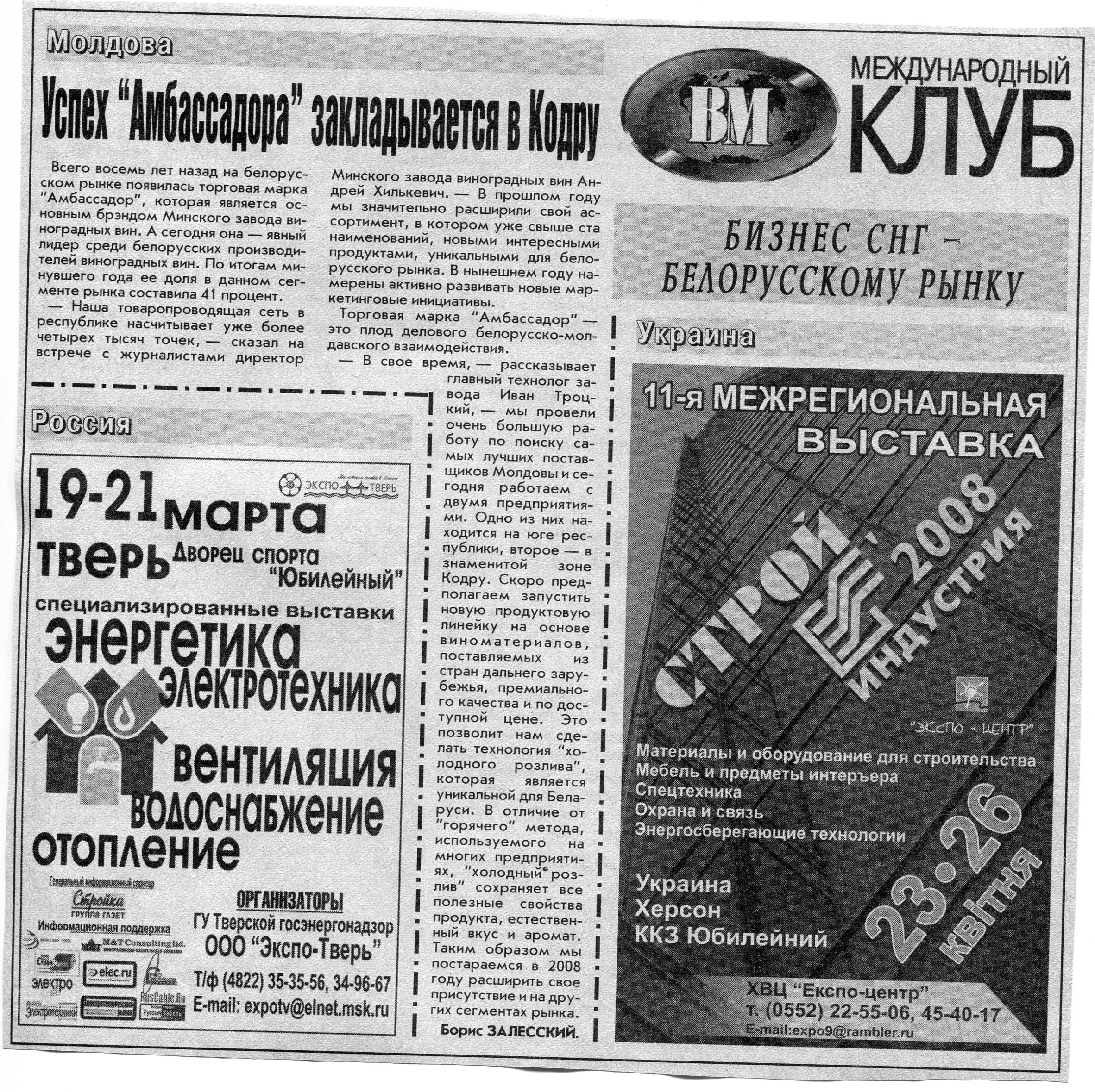 Бизнес СНГ - белорусскому рынку // Вечерний Минск. - 2008. - 29 янв.