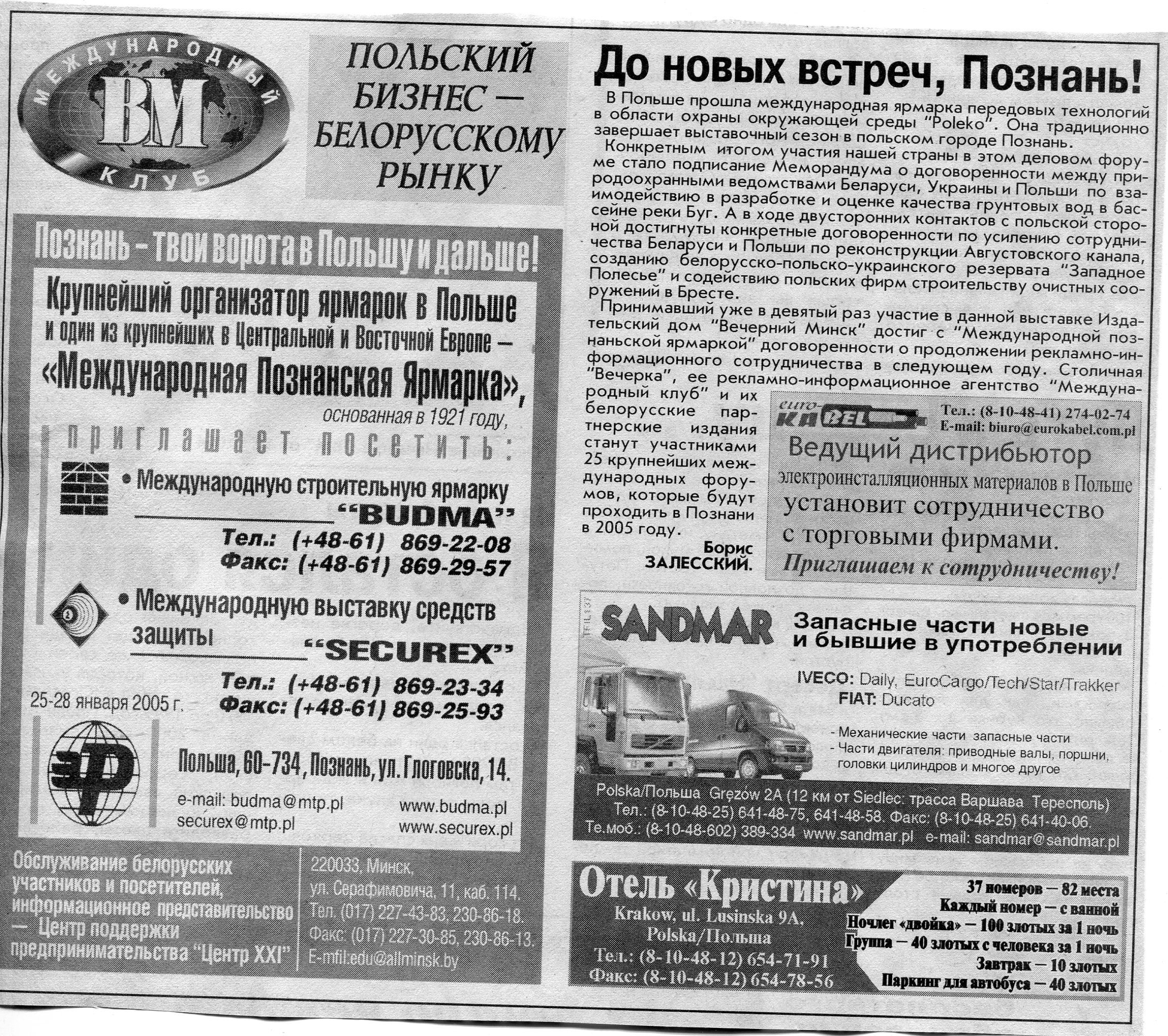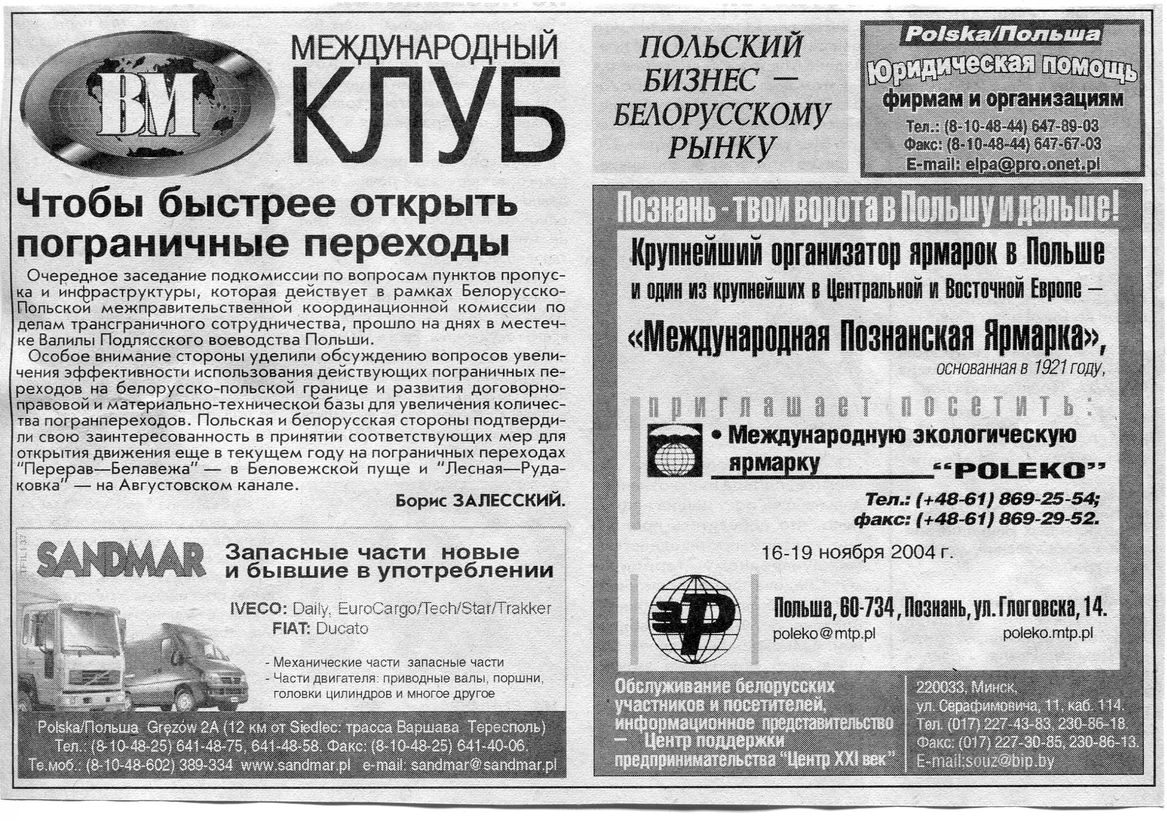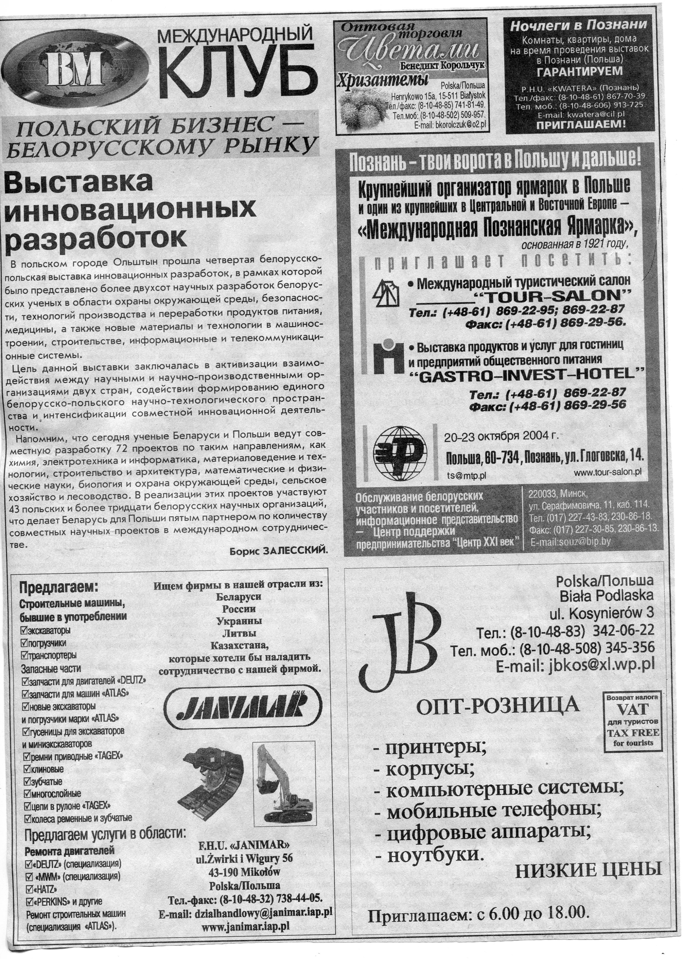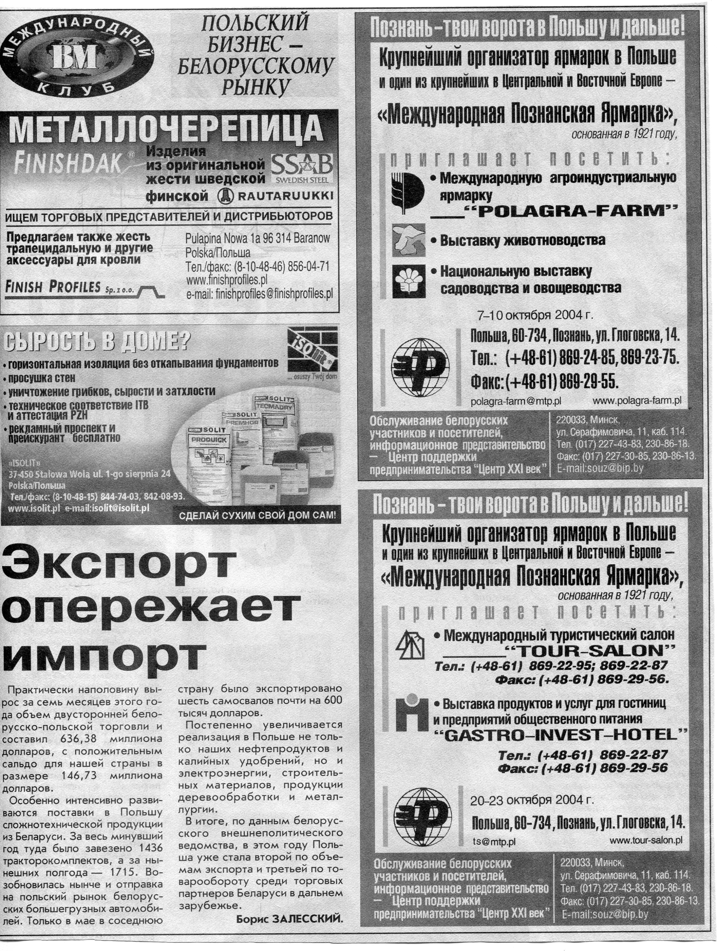 Польский бизнес - белорусскому рынку // Вечерний Минск. - 2004. - 14 окт.