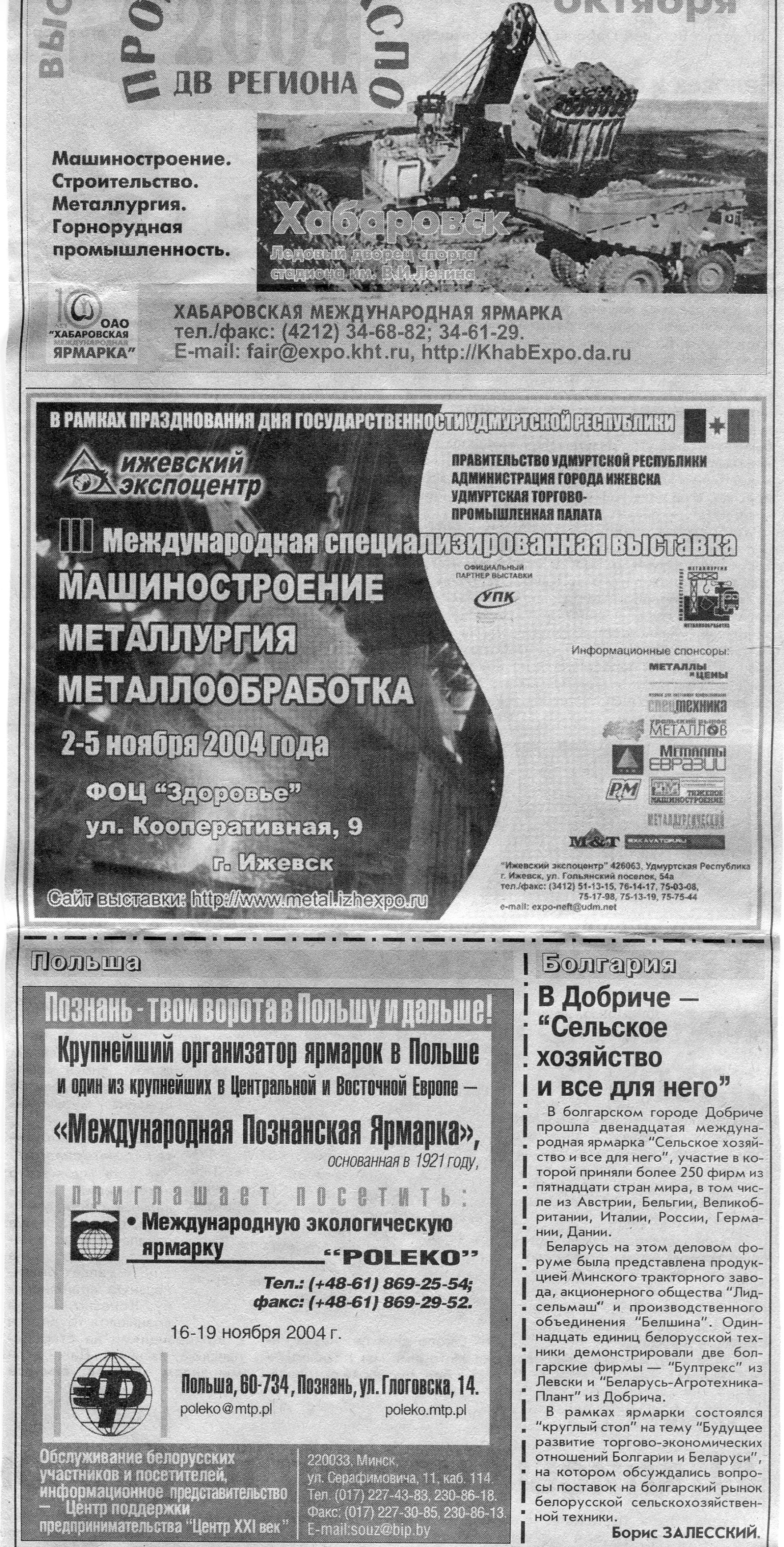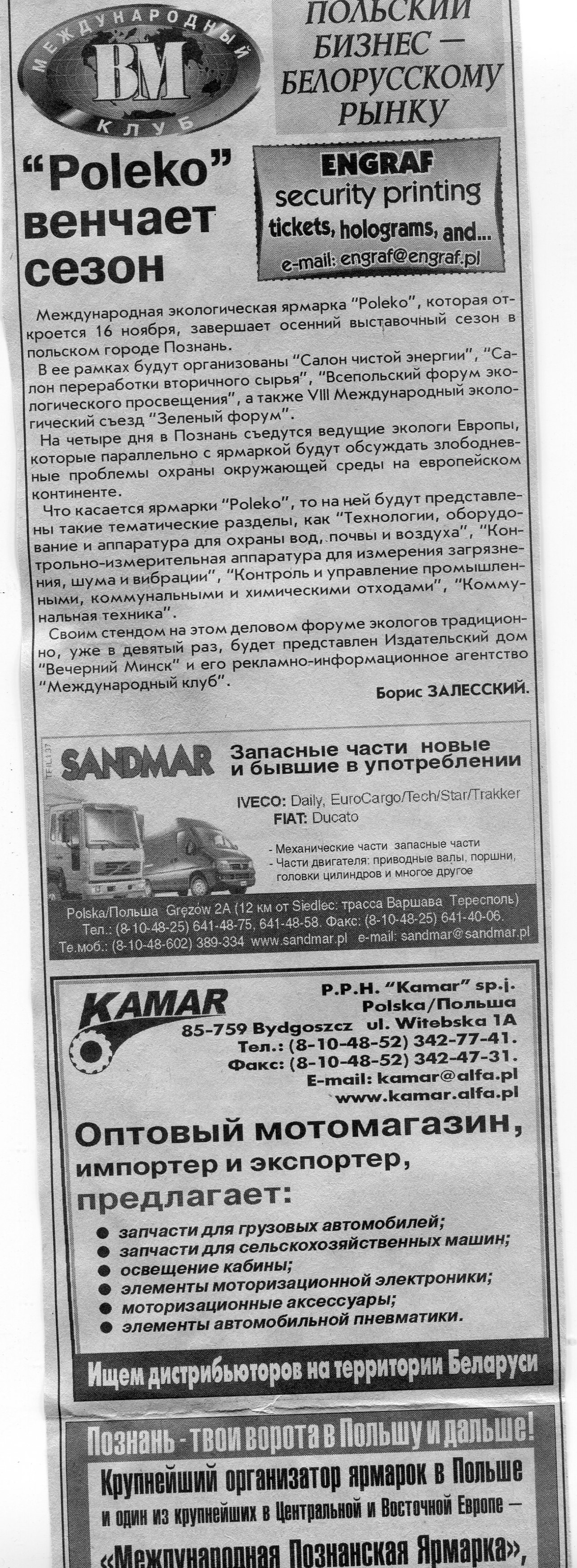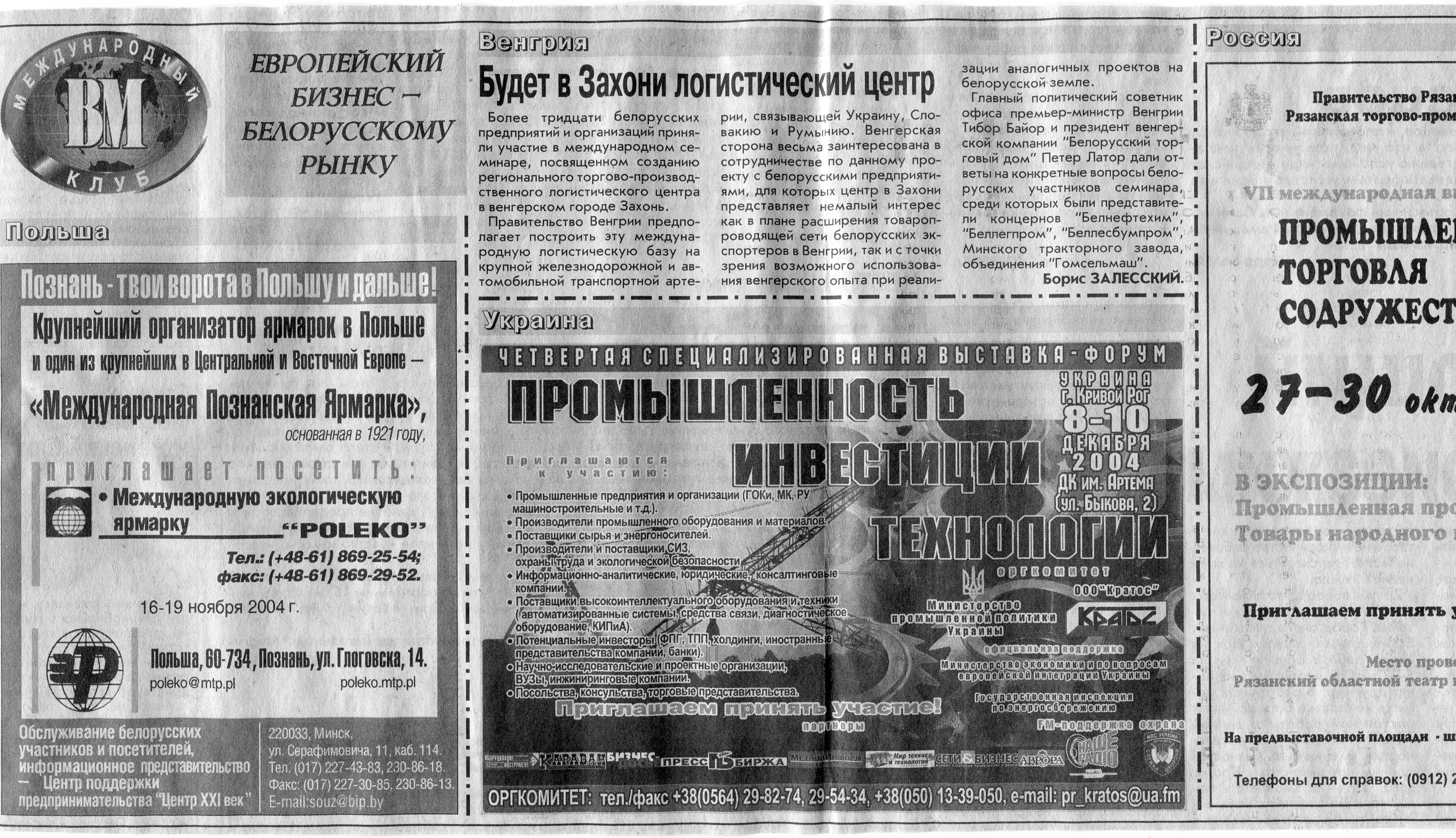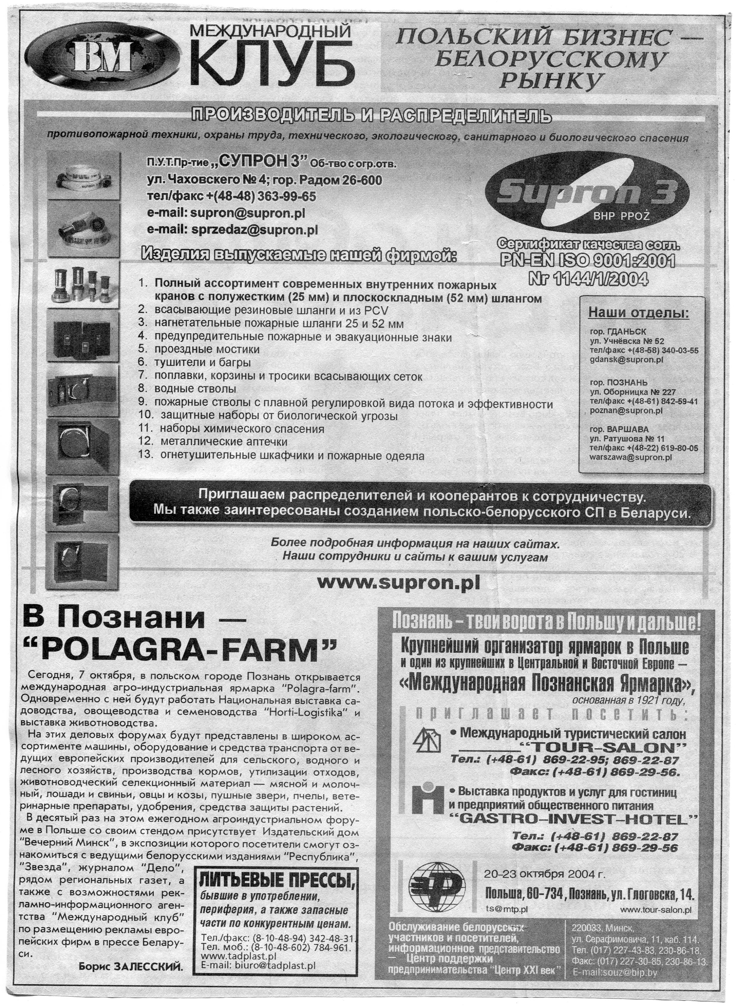 Польский бизнес - белорусскому рынку // Вечерний Минск. - 2004. - 14 окт.