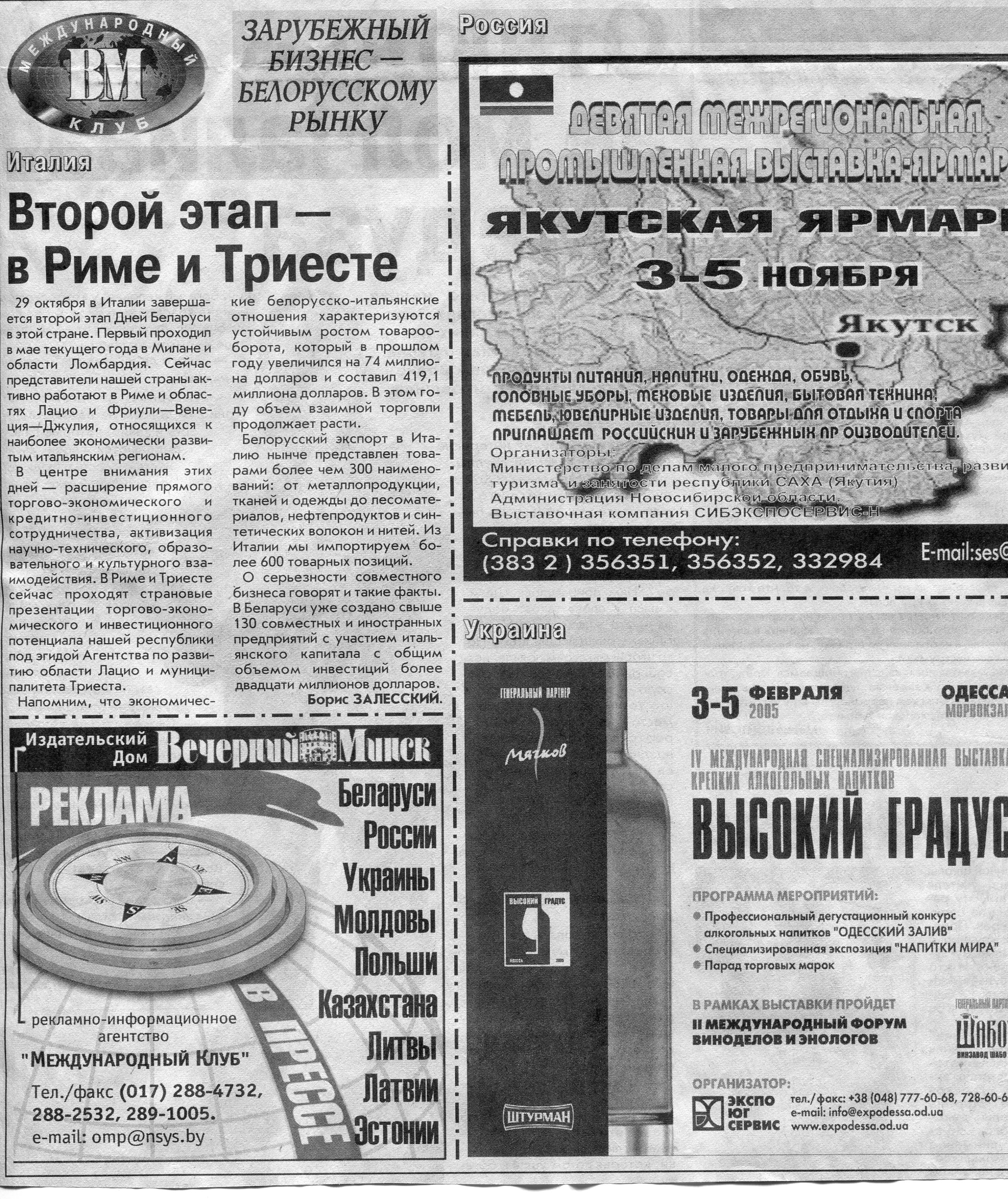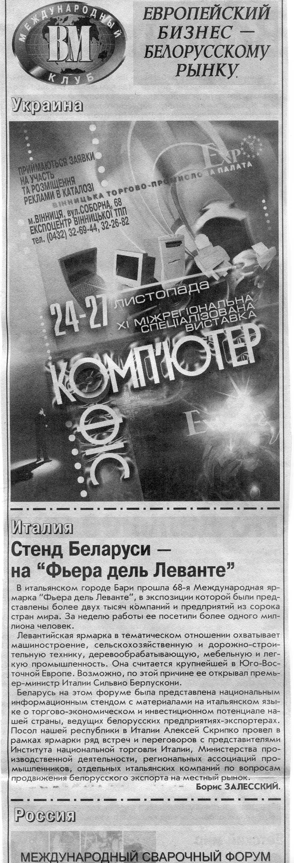 Зарубежный бизнес - белорусскому рынку // Вечерний Минск. - 2004. - 18 окт.