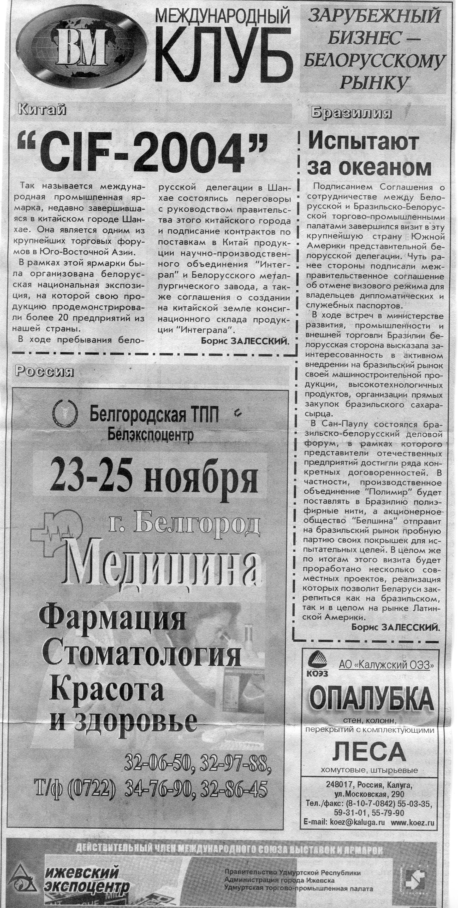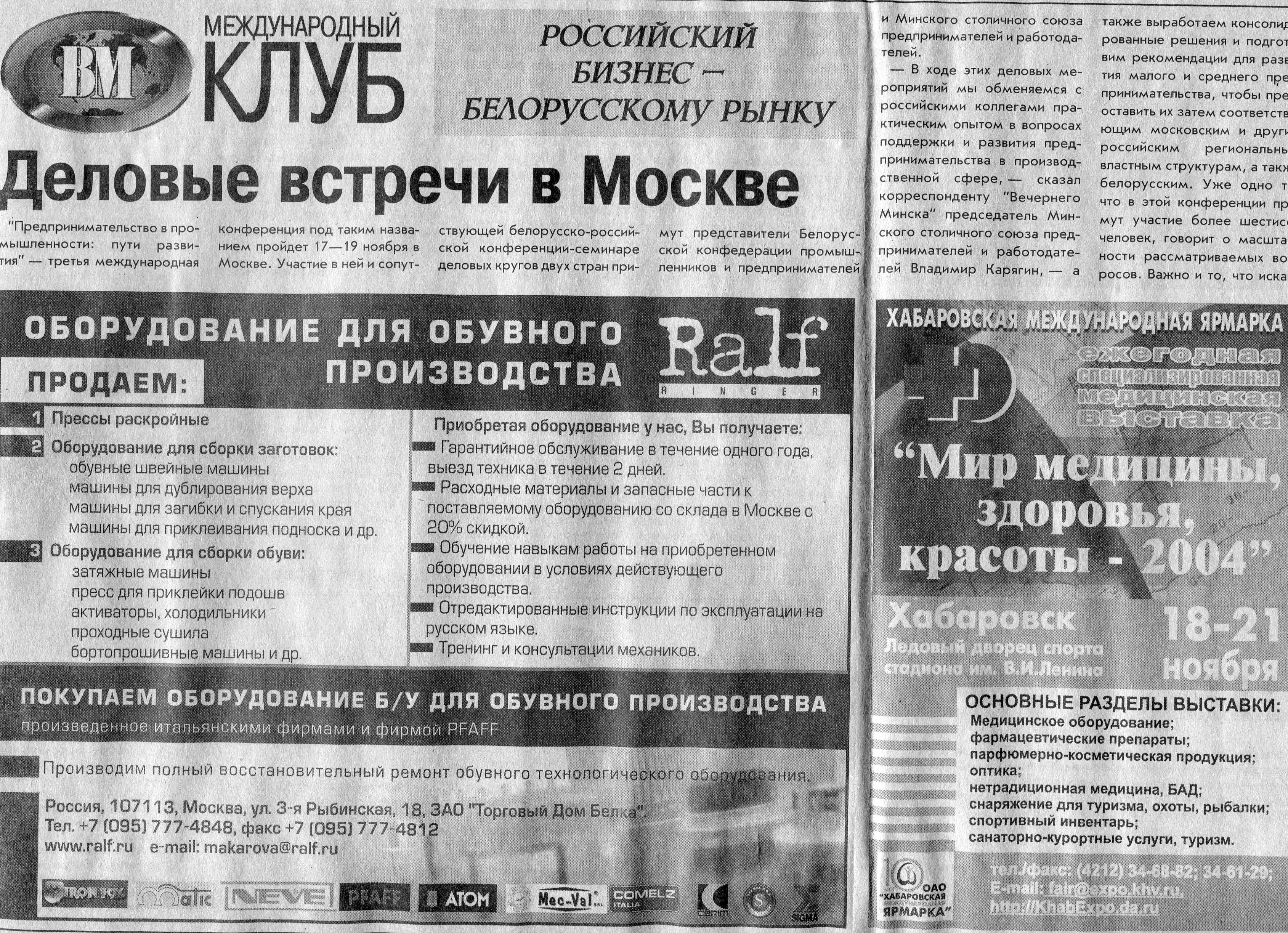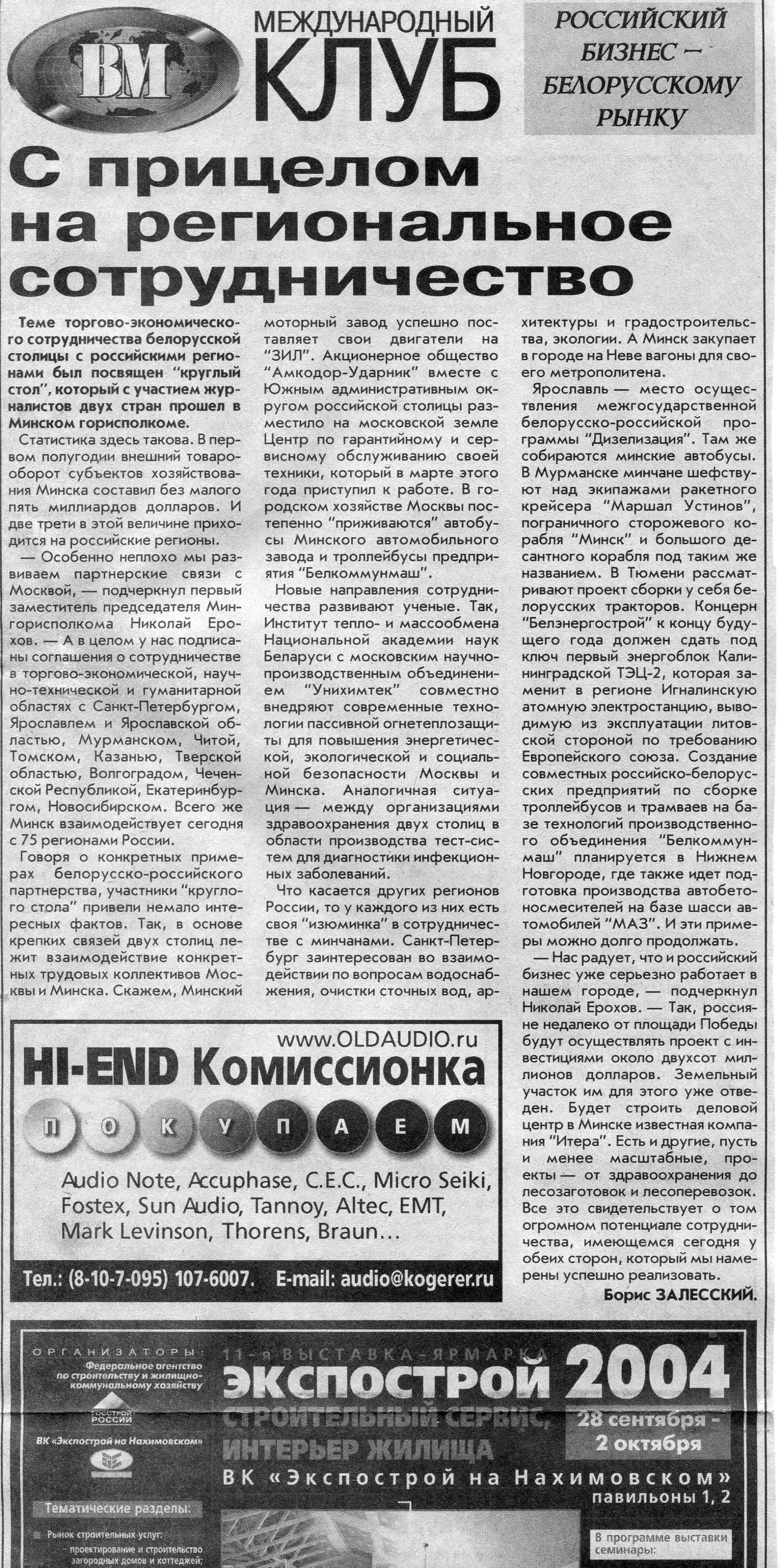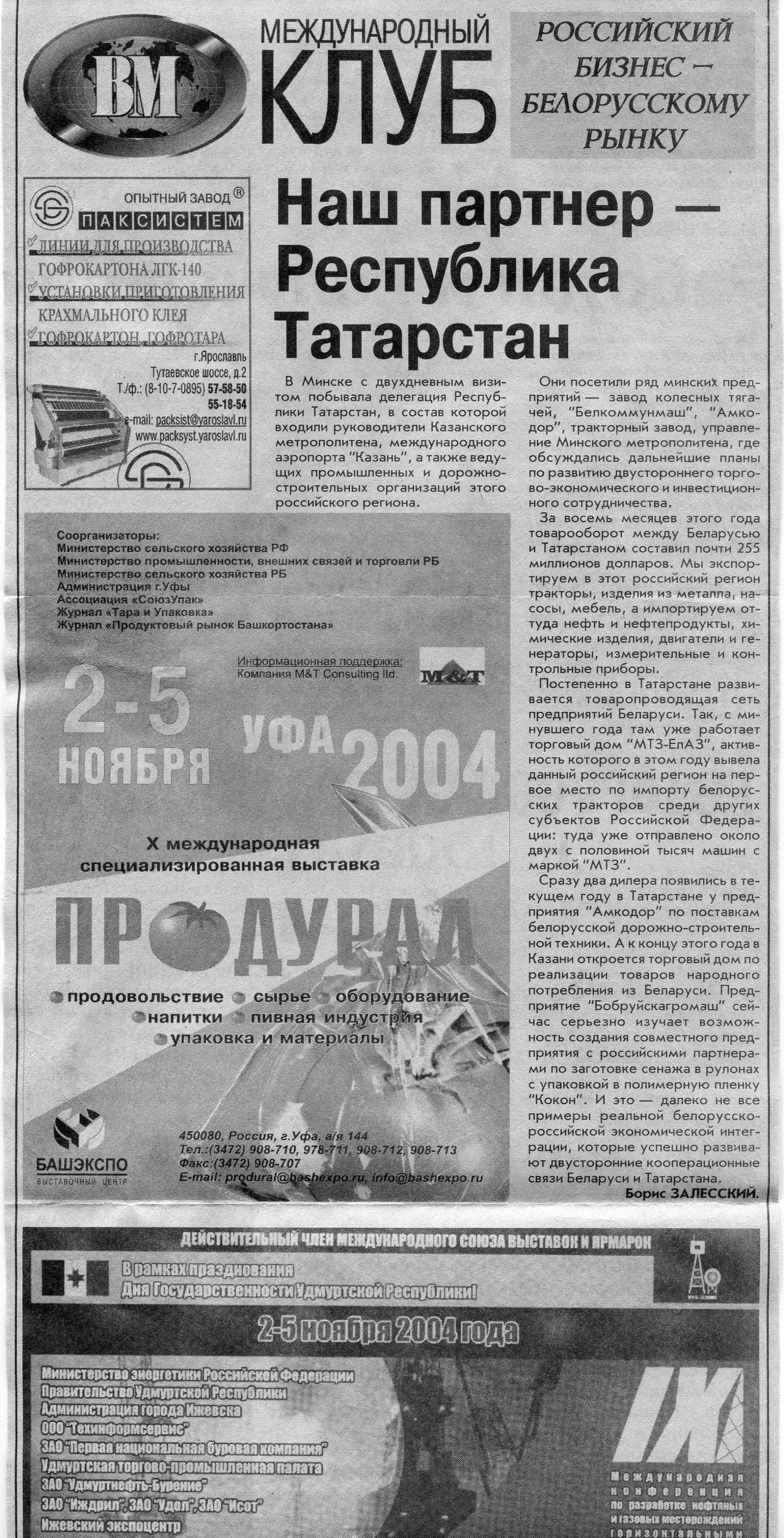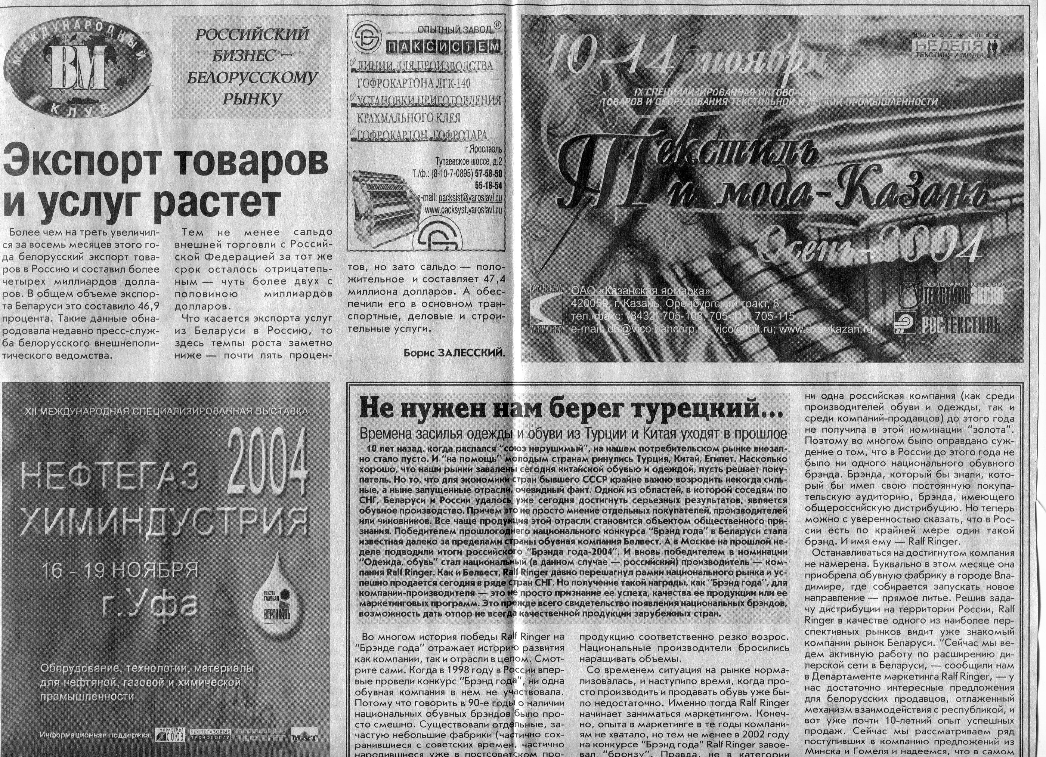 Российский бизнес - белорусскому рынку // Вечерний Минск. - 2004. - 25 окт.