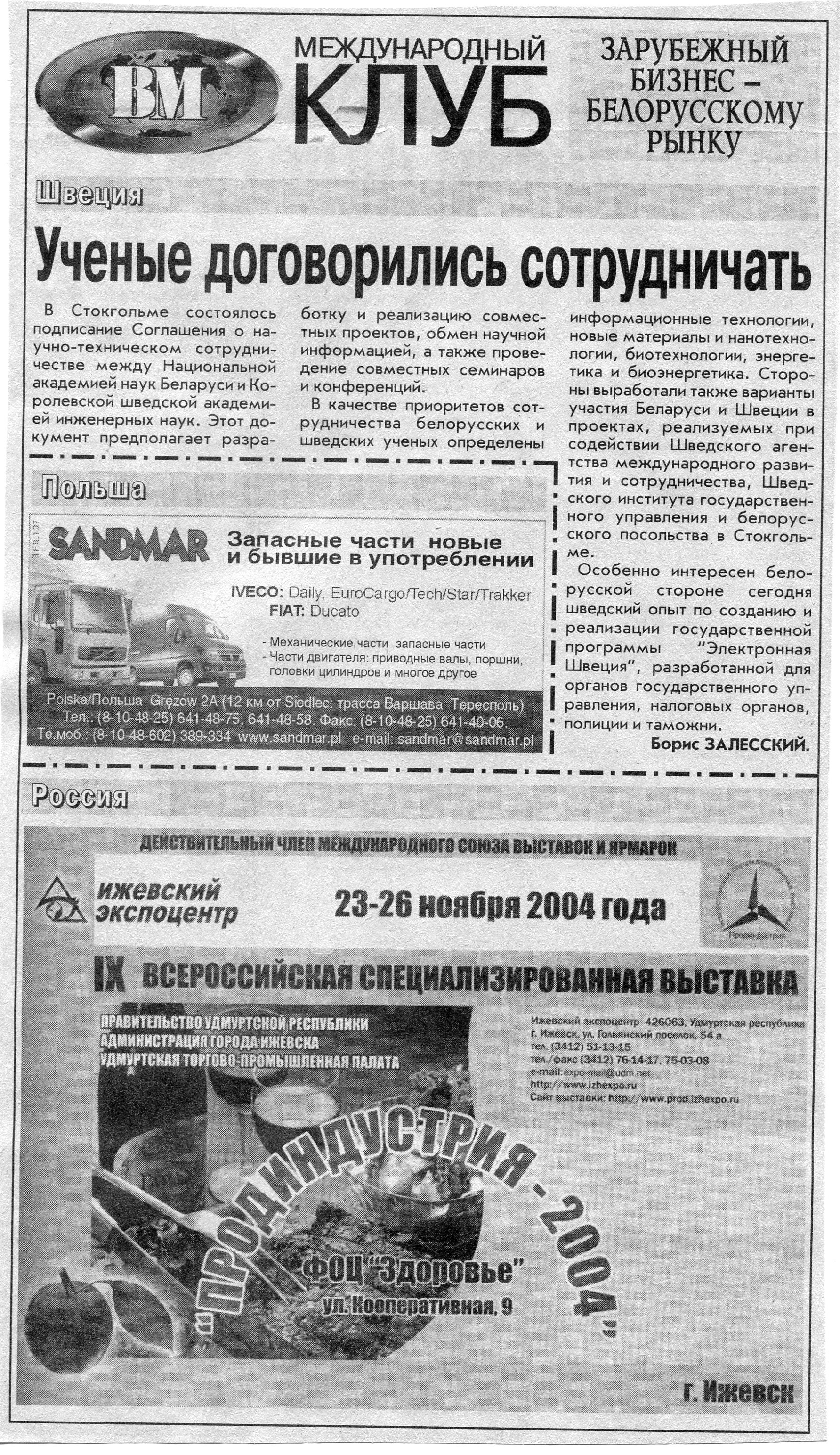 Зарубежный бизнес - белорусскому рынку // Вечерний Минск. - 2004. - 28 окт.