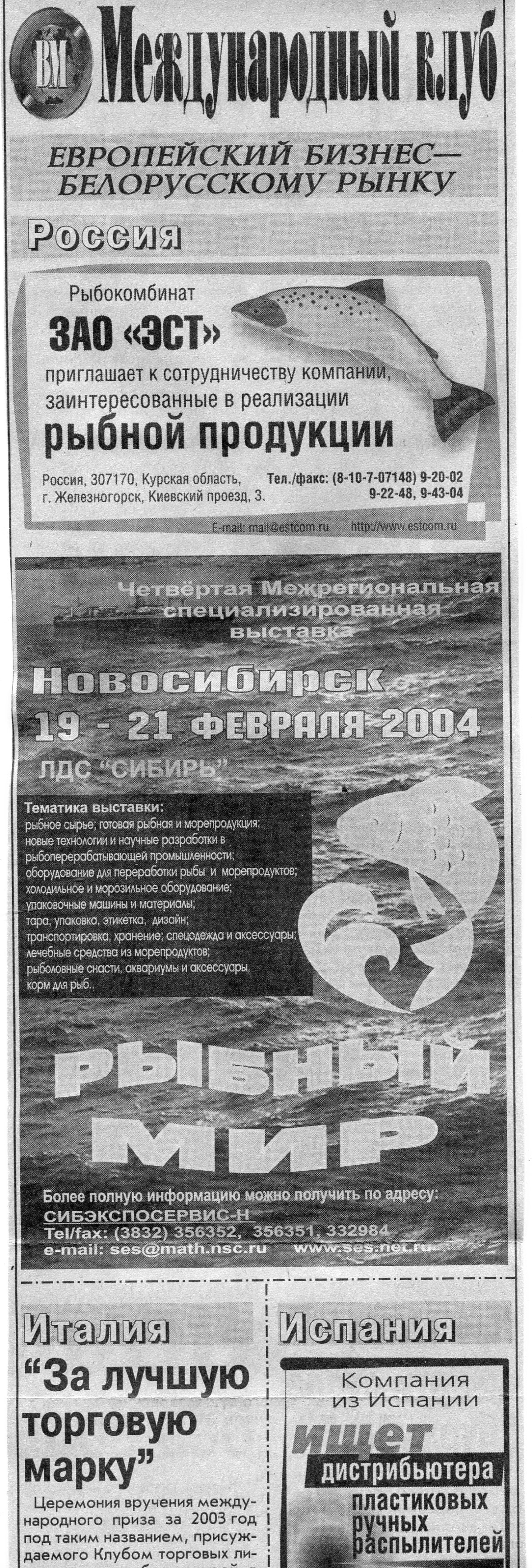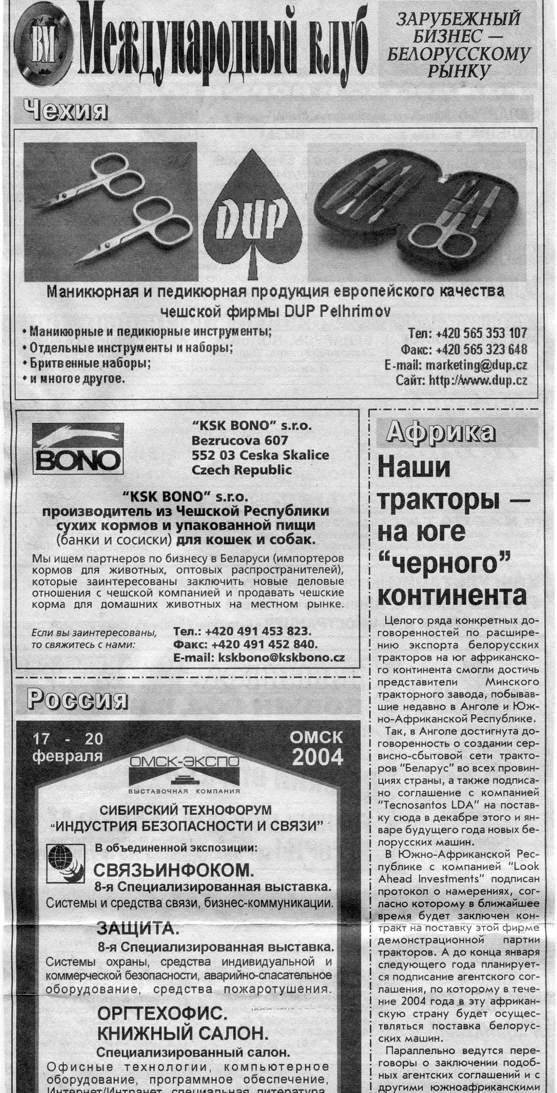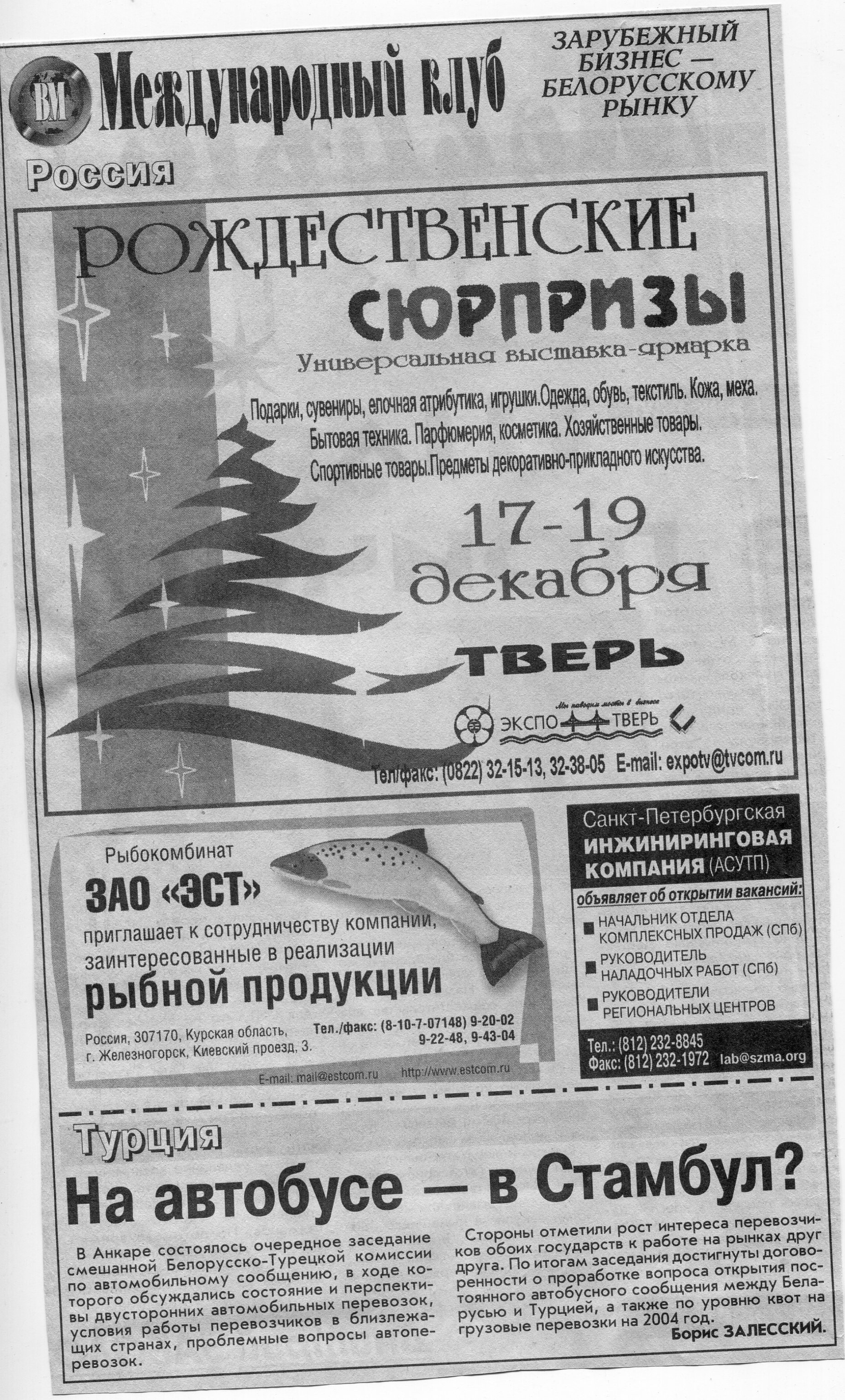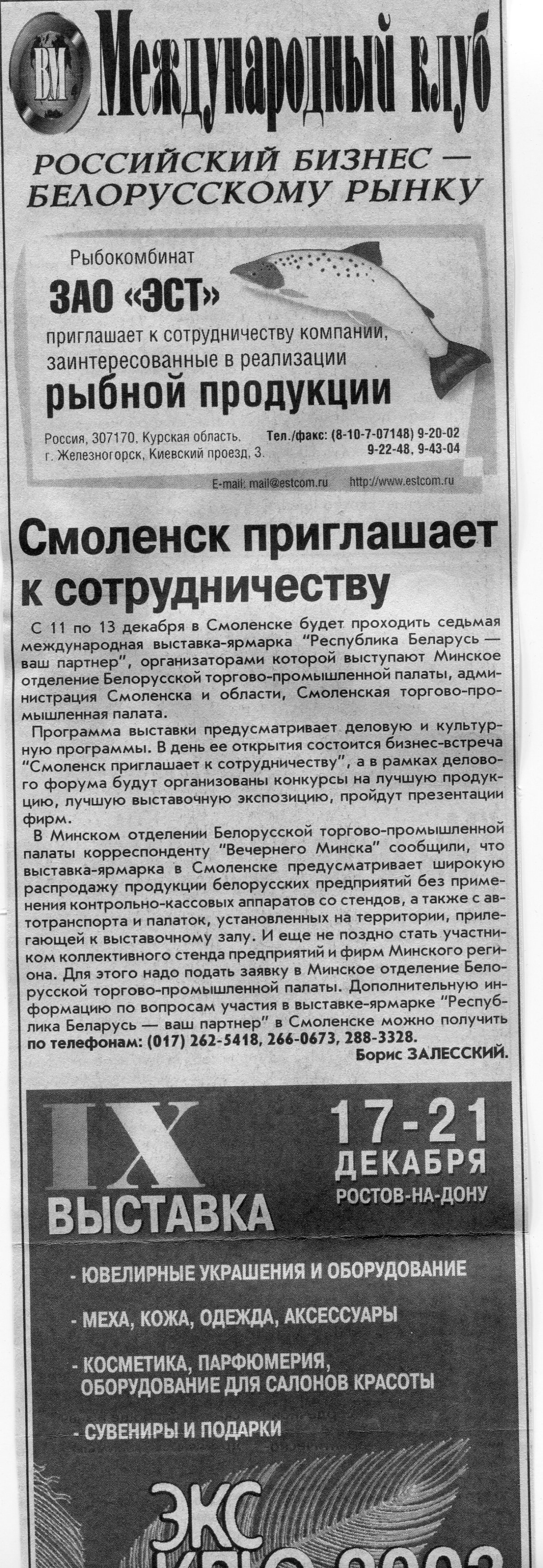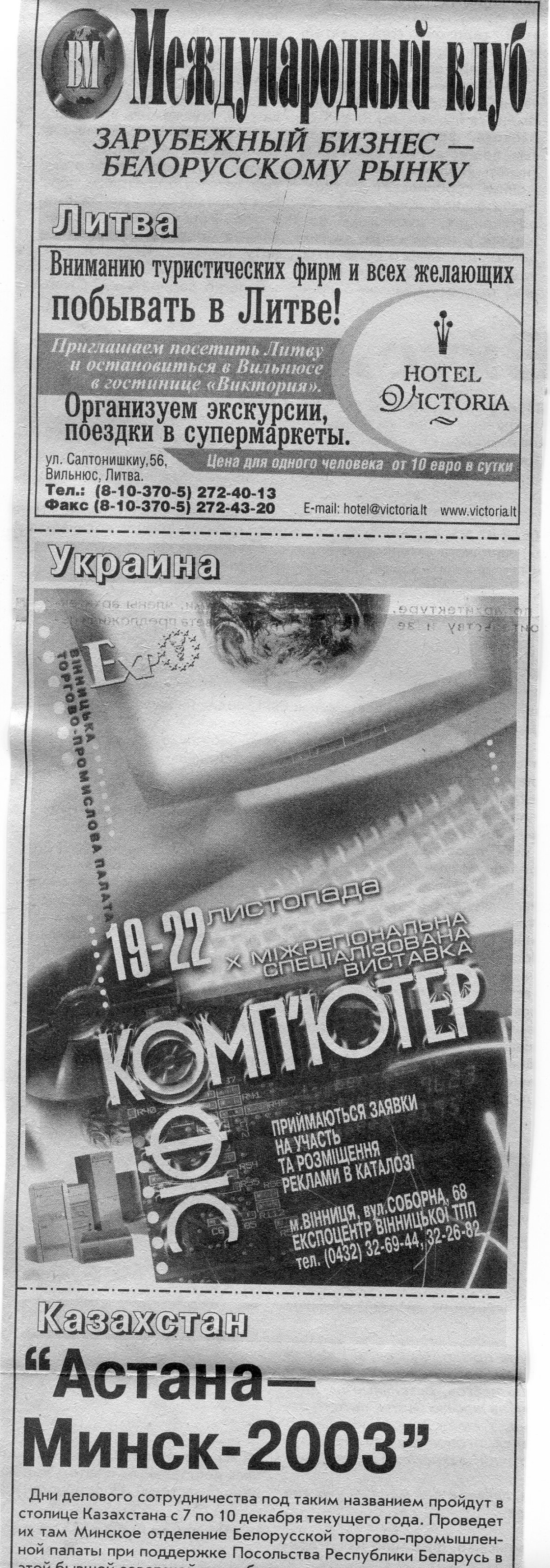 Зарубежный бизнес - белорусскому рынку // Вечерний Минск. - 2003. - 3 дек.