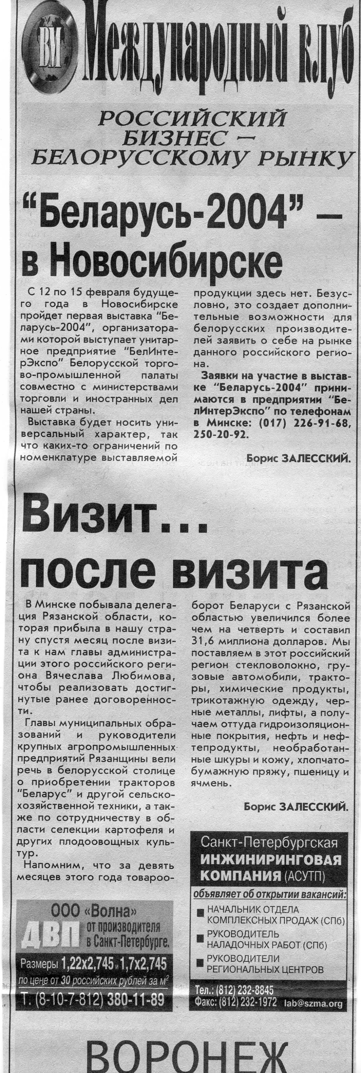 Российский бизнес - белорусскому рынку // Вечерний Минск. - 2003. - 5 дек.
