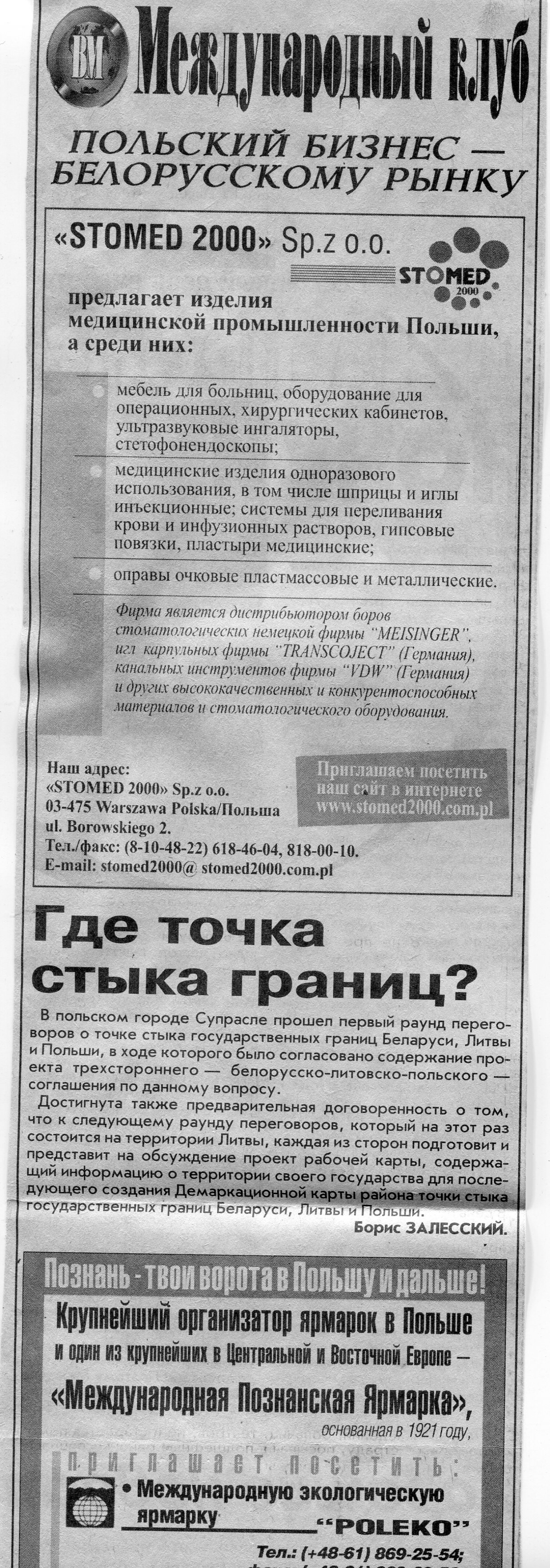 Польский бизнес - белорусскому рынку // Вечерний Минск. - 2003. - 27 нояб.