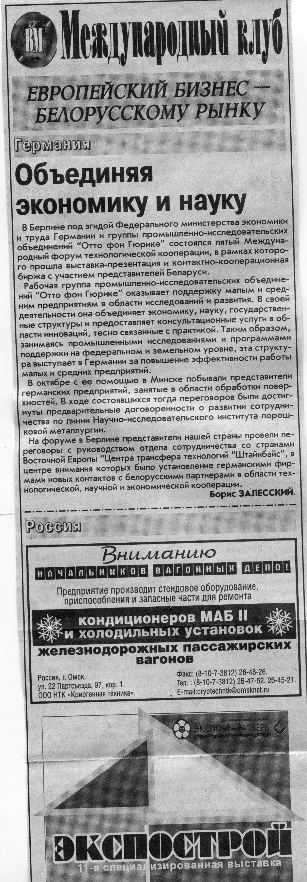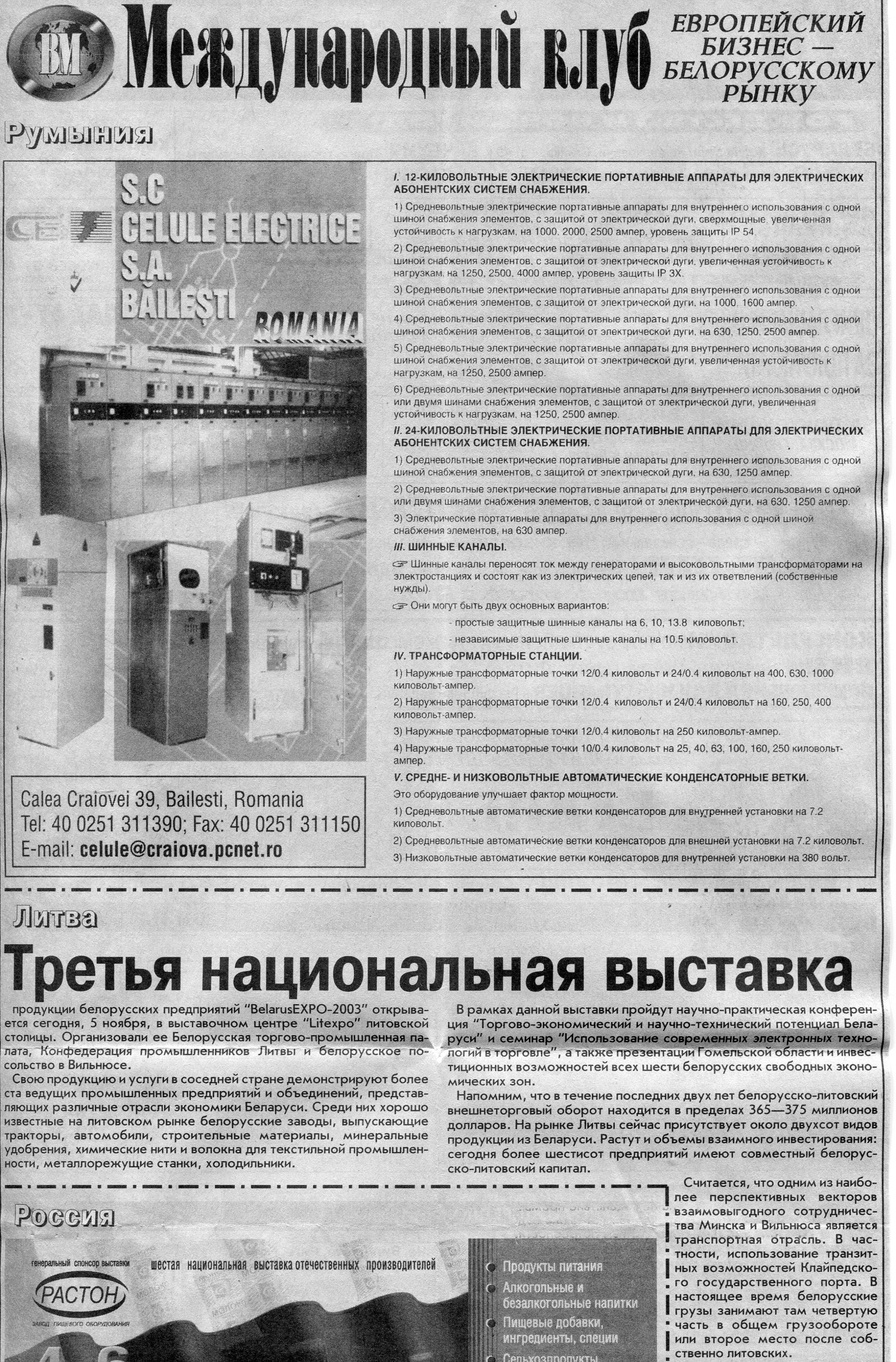 Европейский бизнес - белорусскому рынку // Вечерний Минск. - 2003. - 26 нояб.