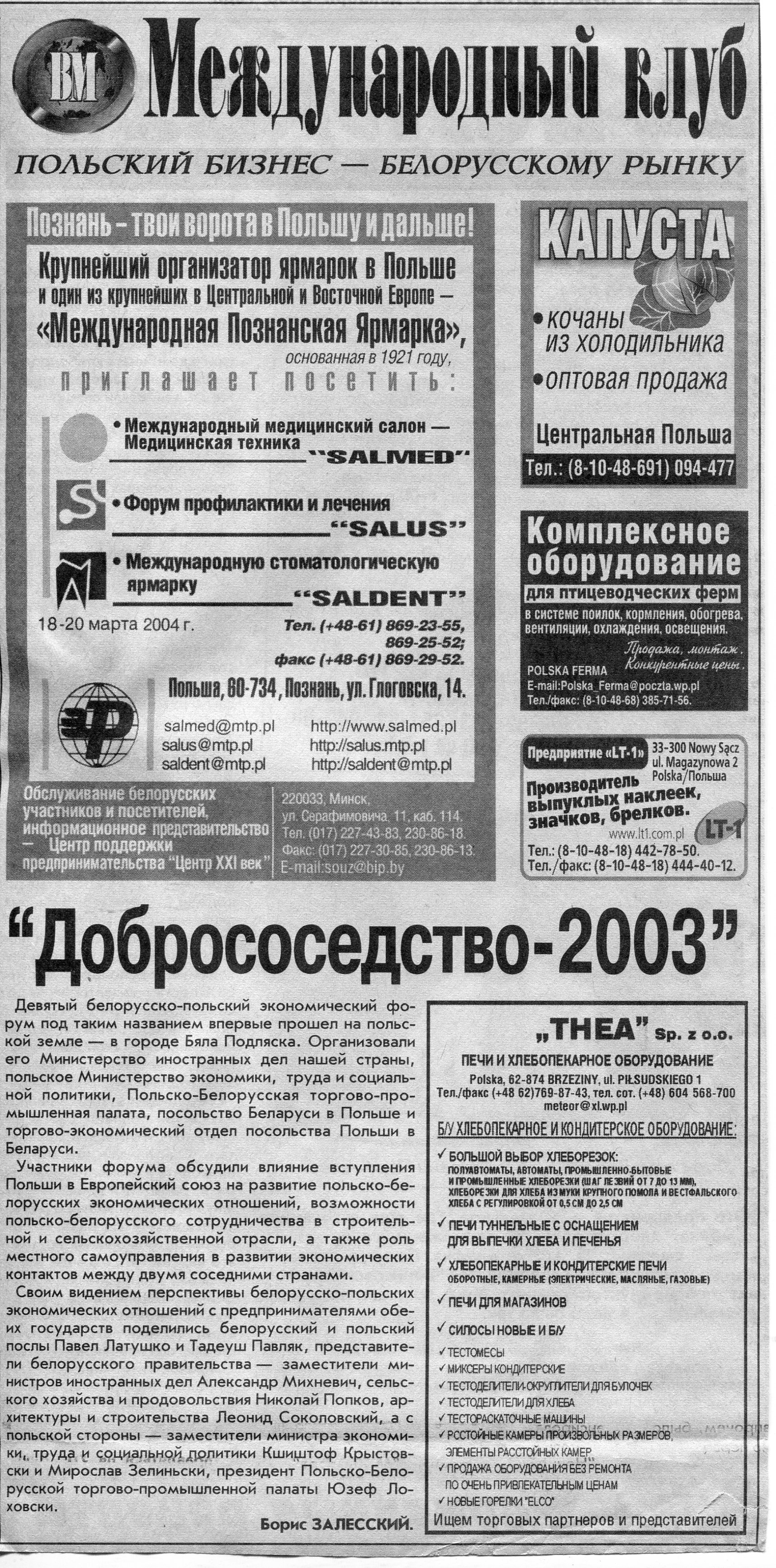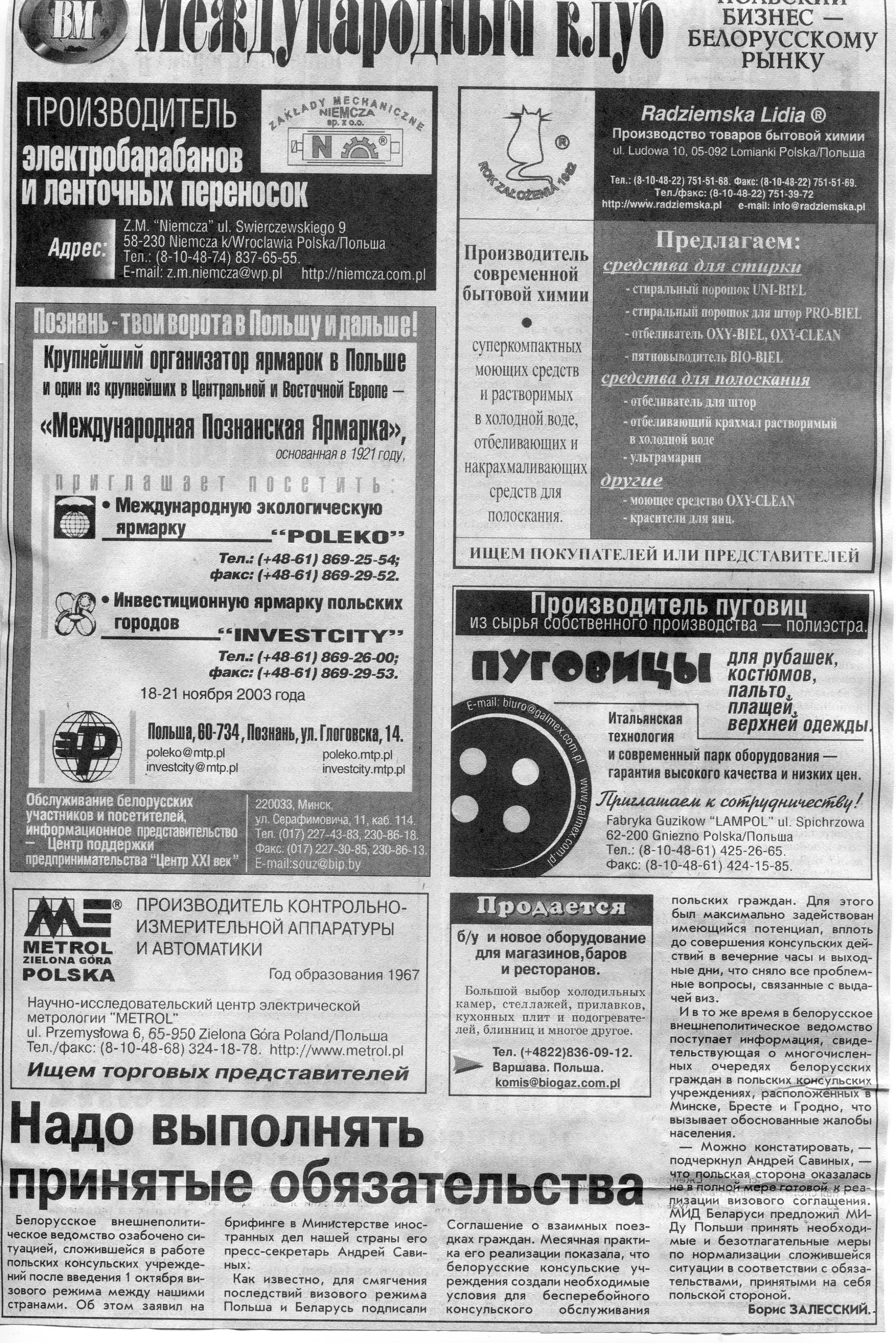 Польский бизнес - белорусскому рынку // Вечерний Минск. - 2003. - 4 дек.