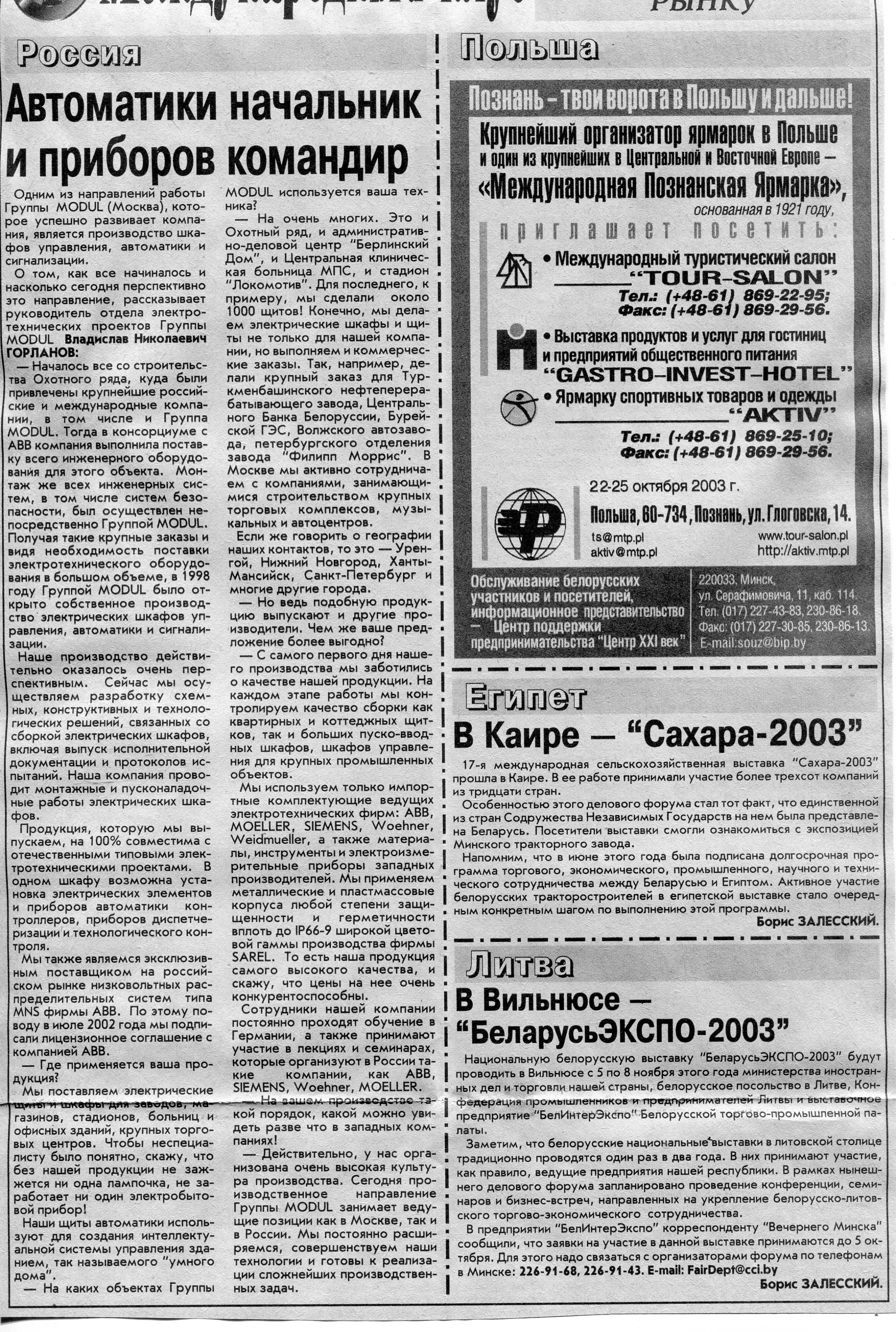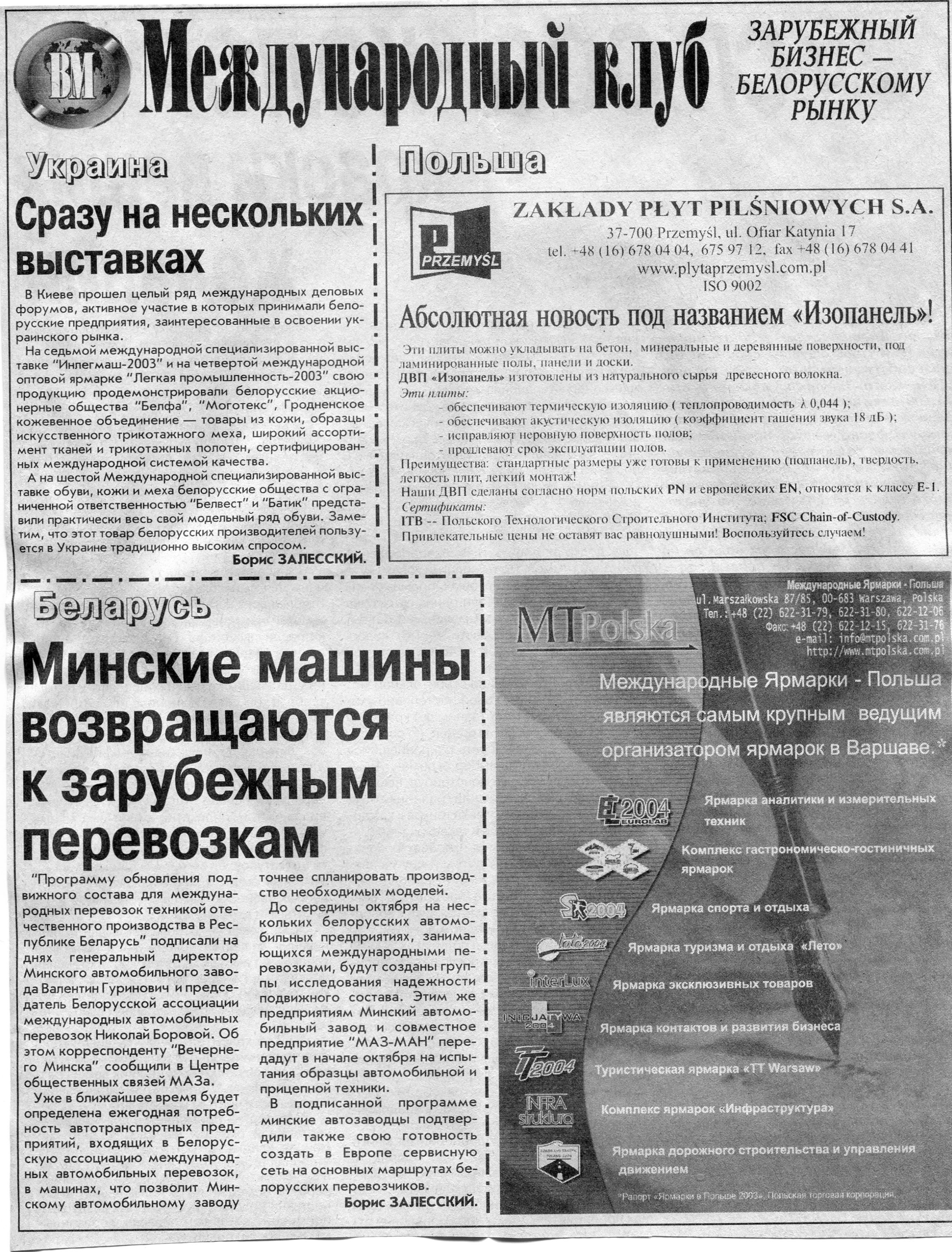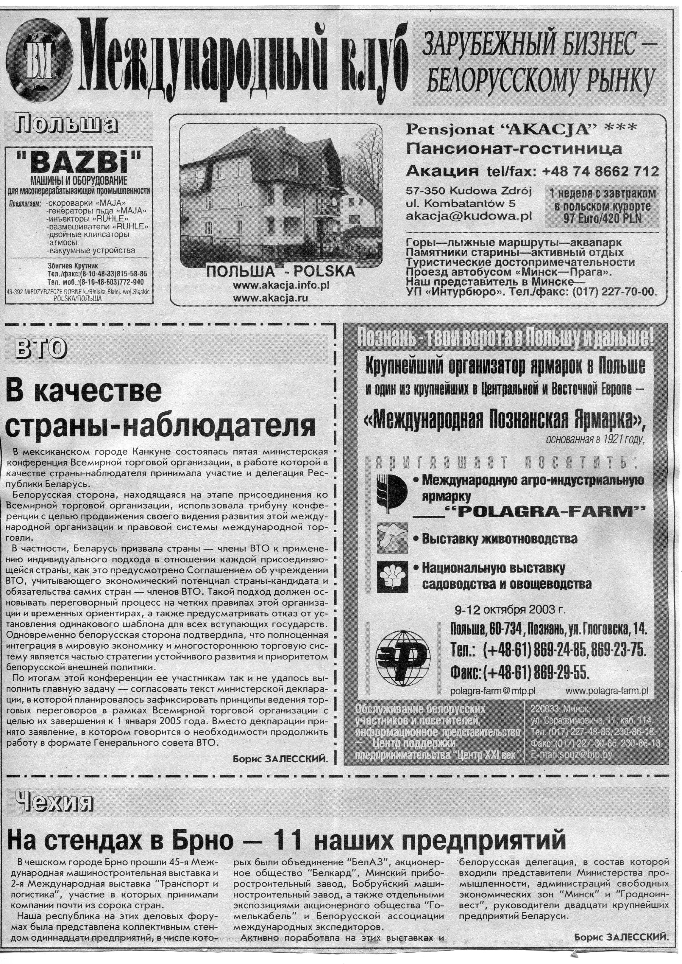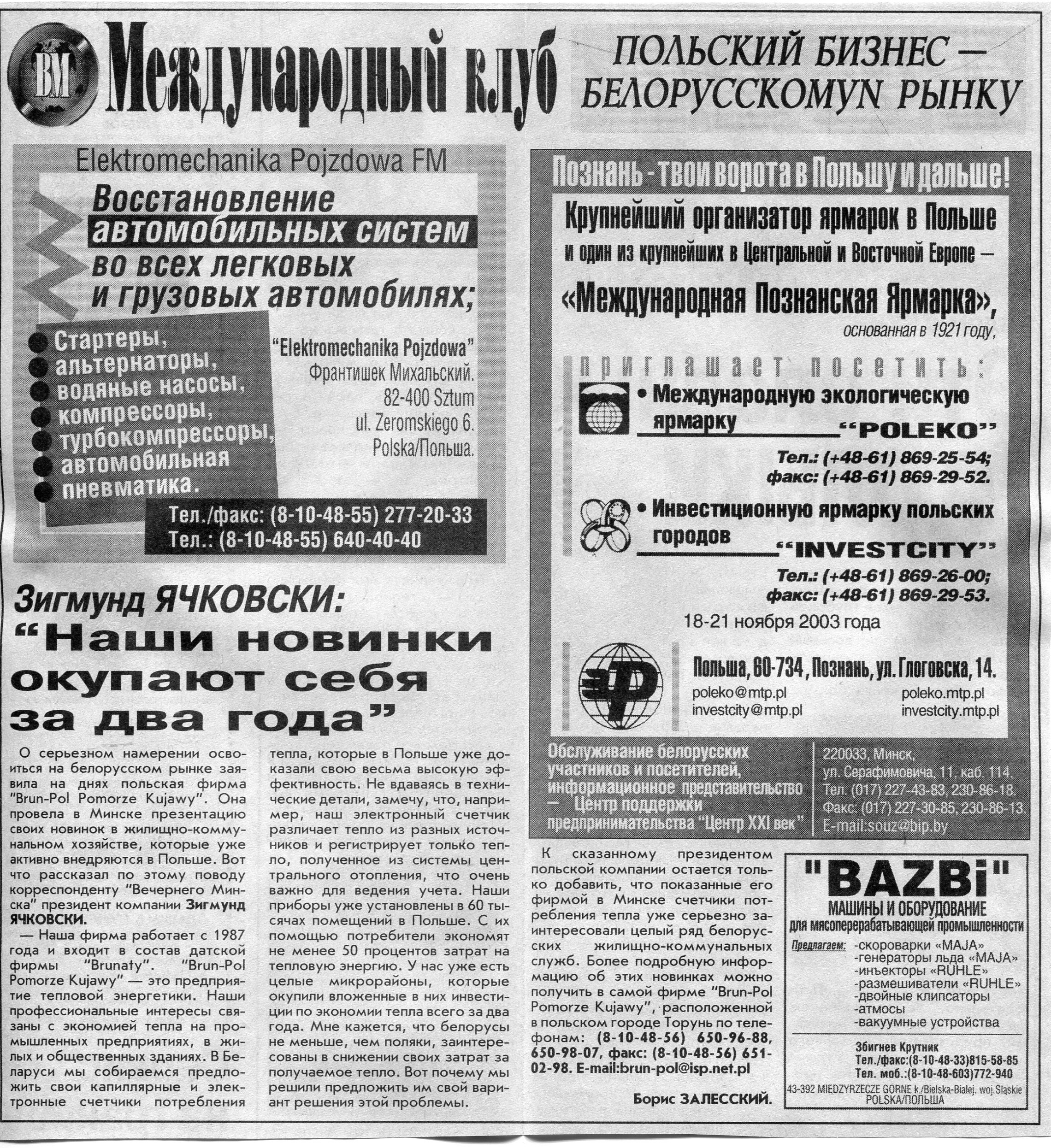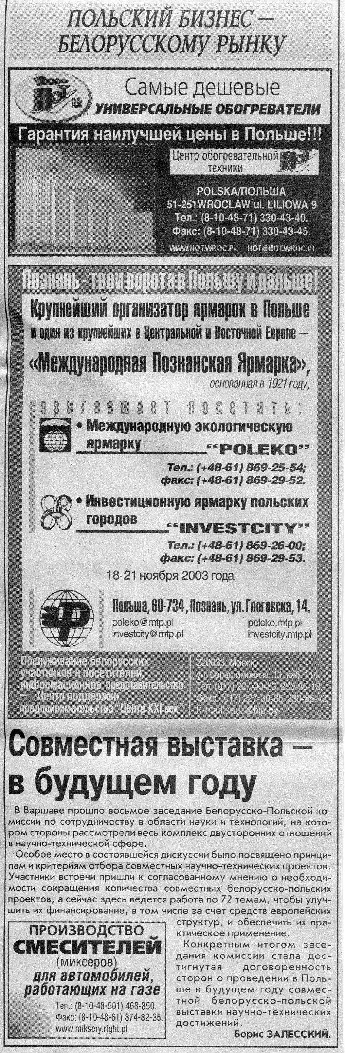 Польский бизнес - белорусскому рынку // Вечерний Минск. - 2003. - 22 окт.