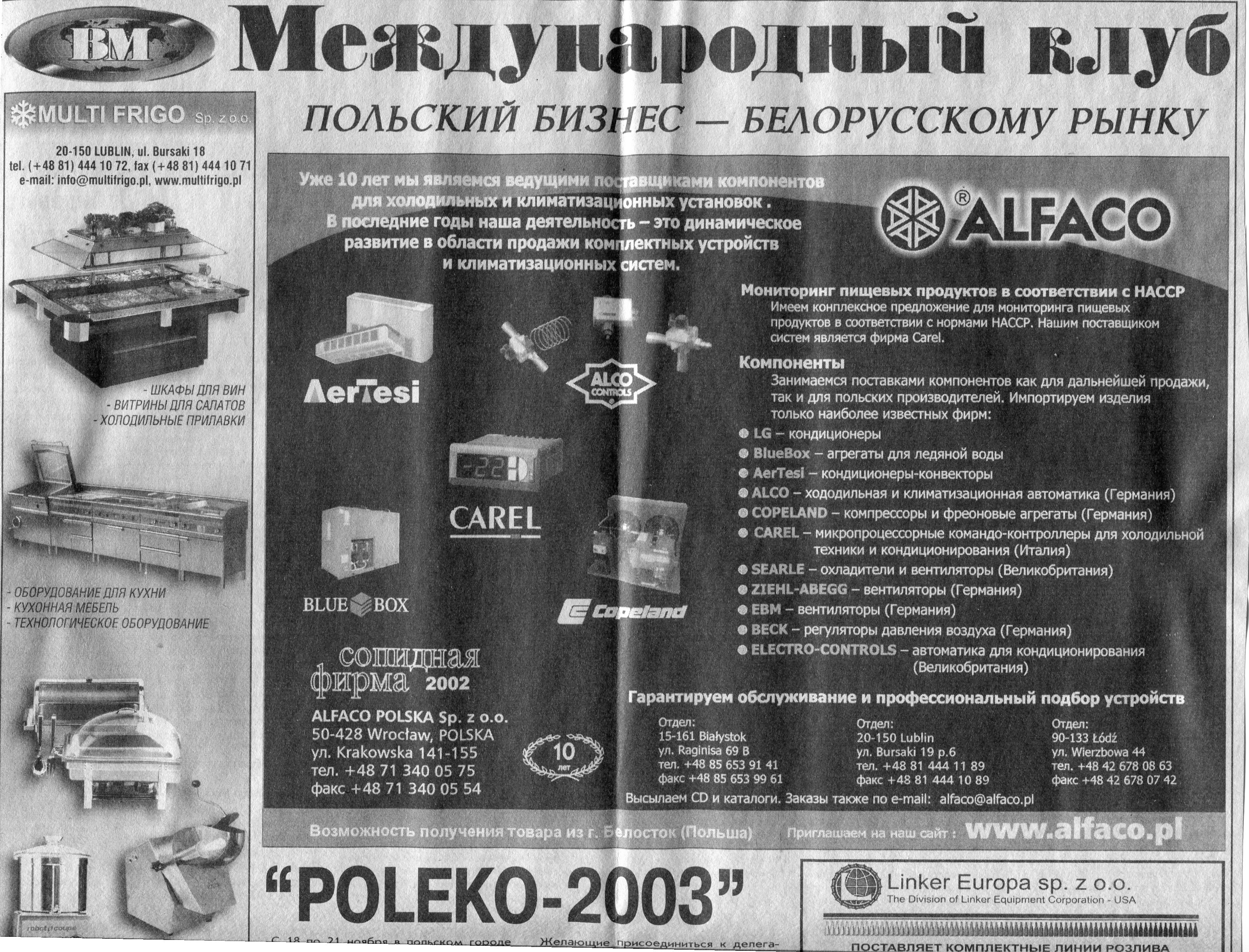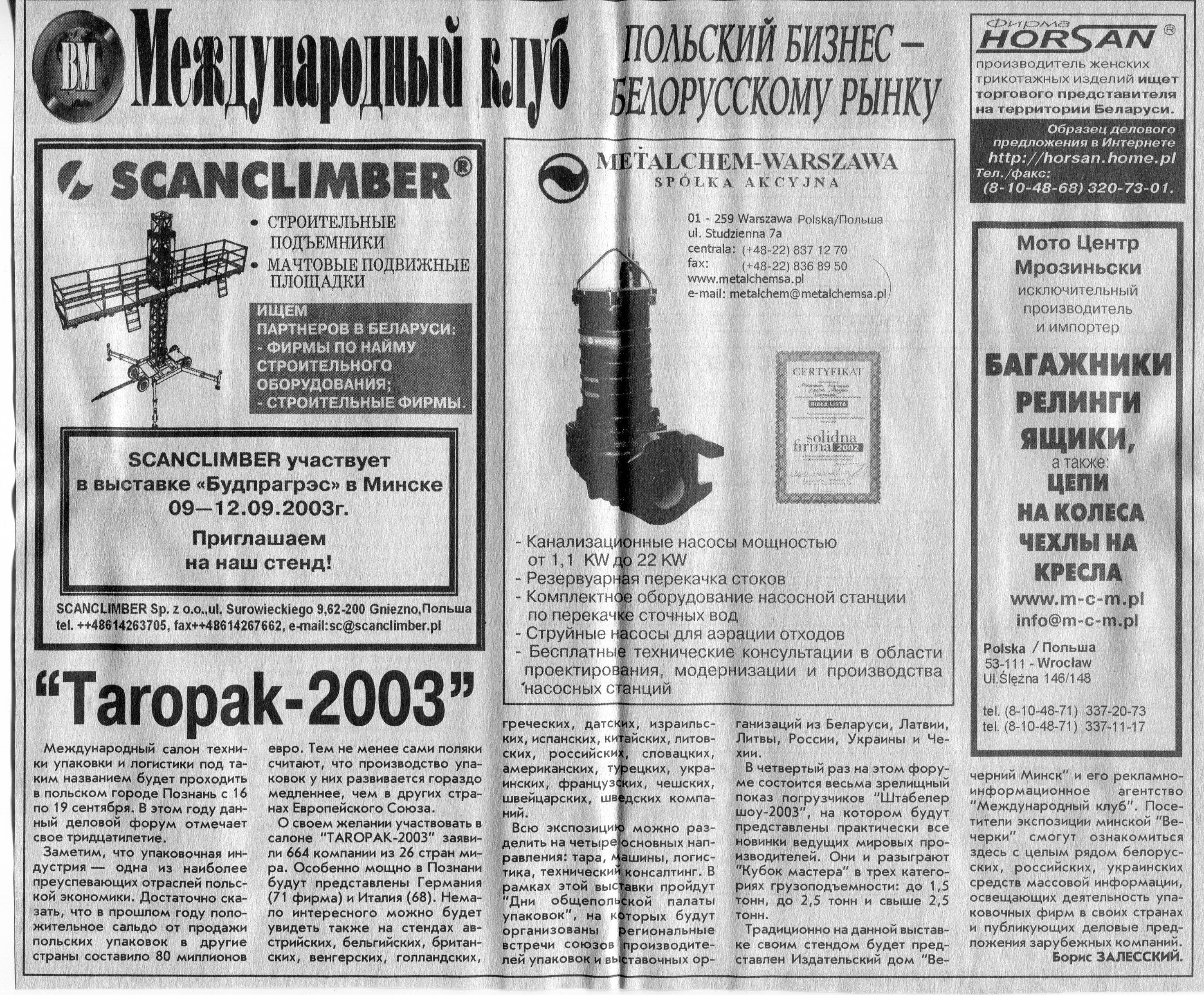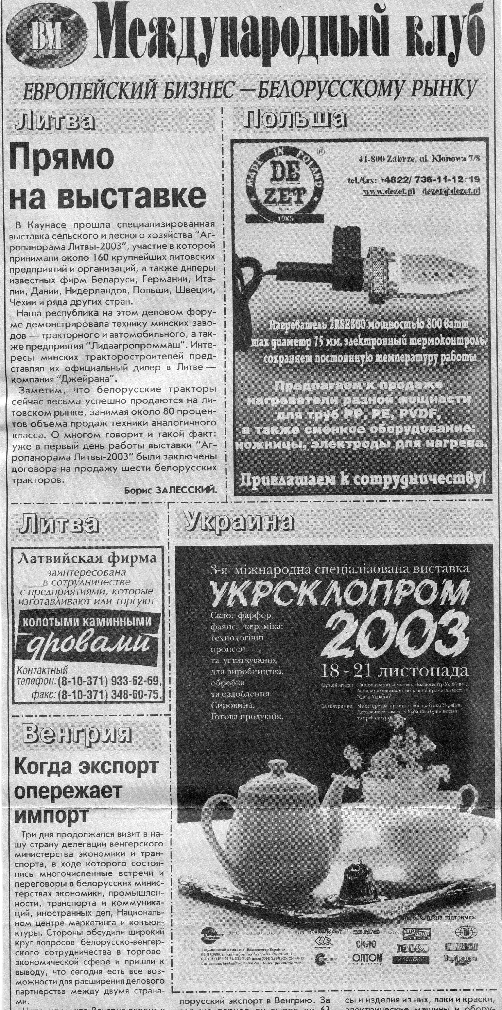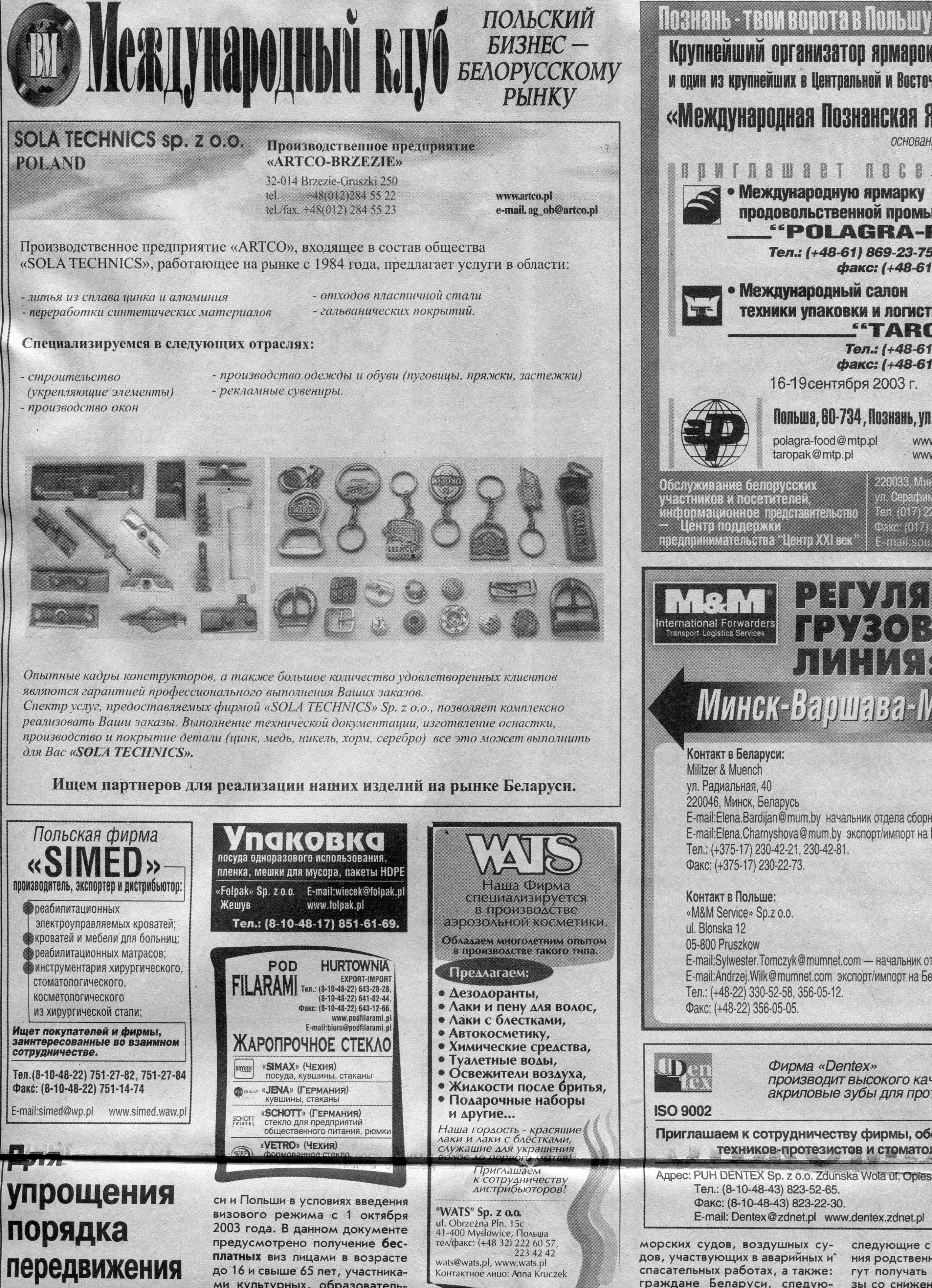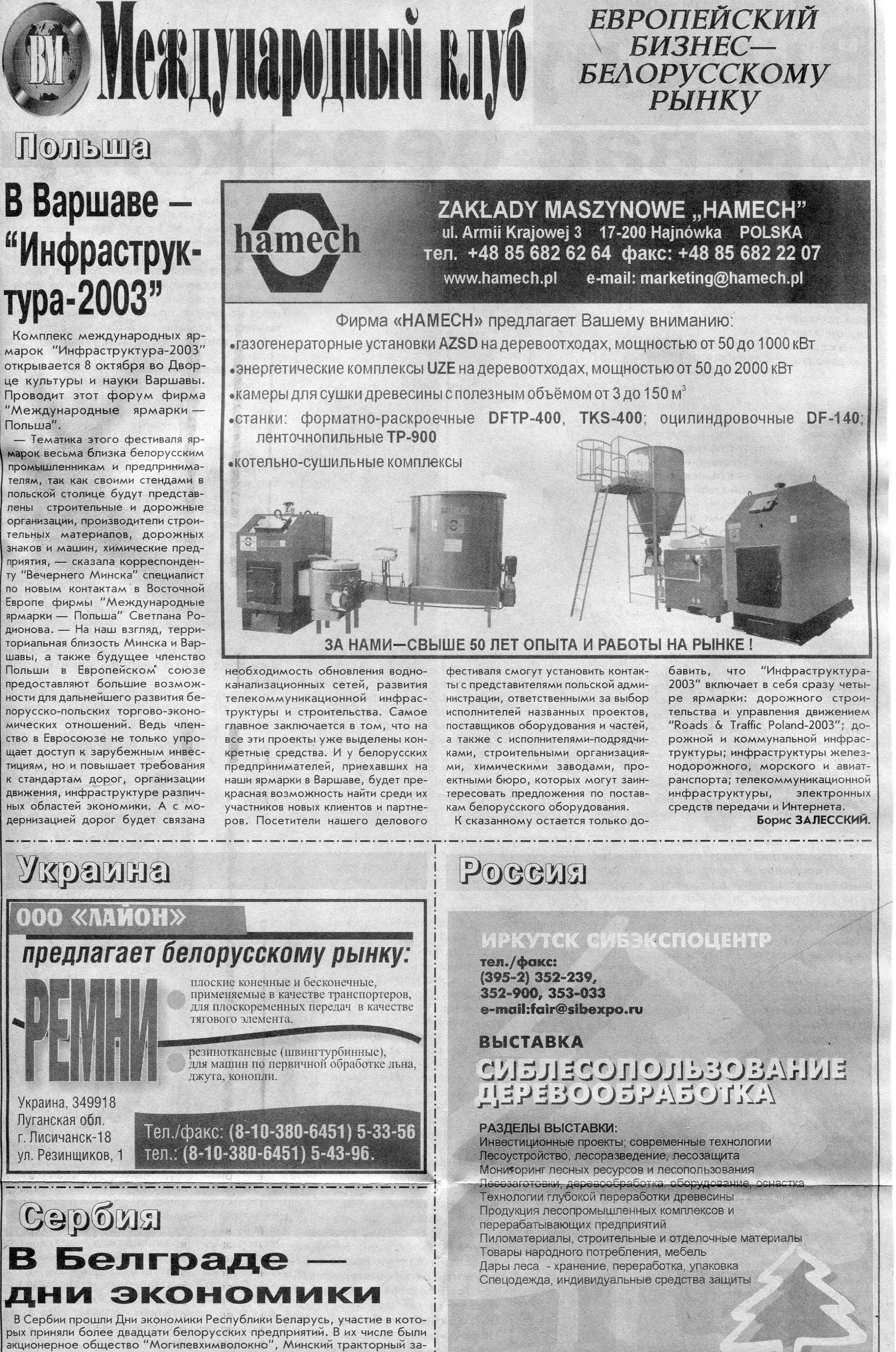 Польский бизнес - белорусскому рынку // Вечерний Минск. - 2003. - 22 окт.