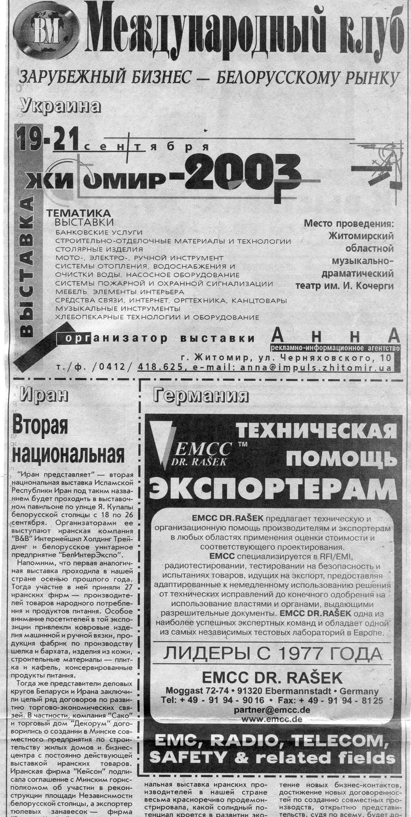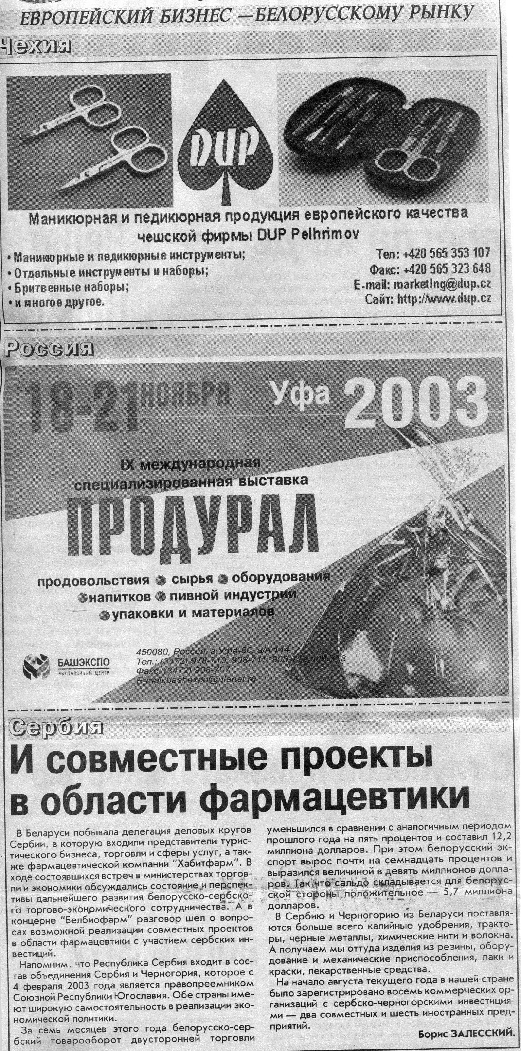 Зарубежный бизнес - белорусскому рынку // Вечерний Минск. - 2003. - 26 авг.