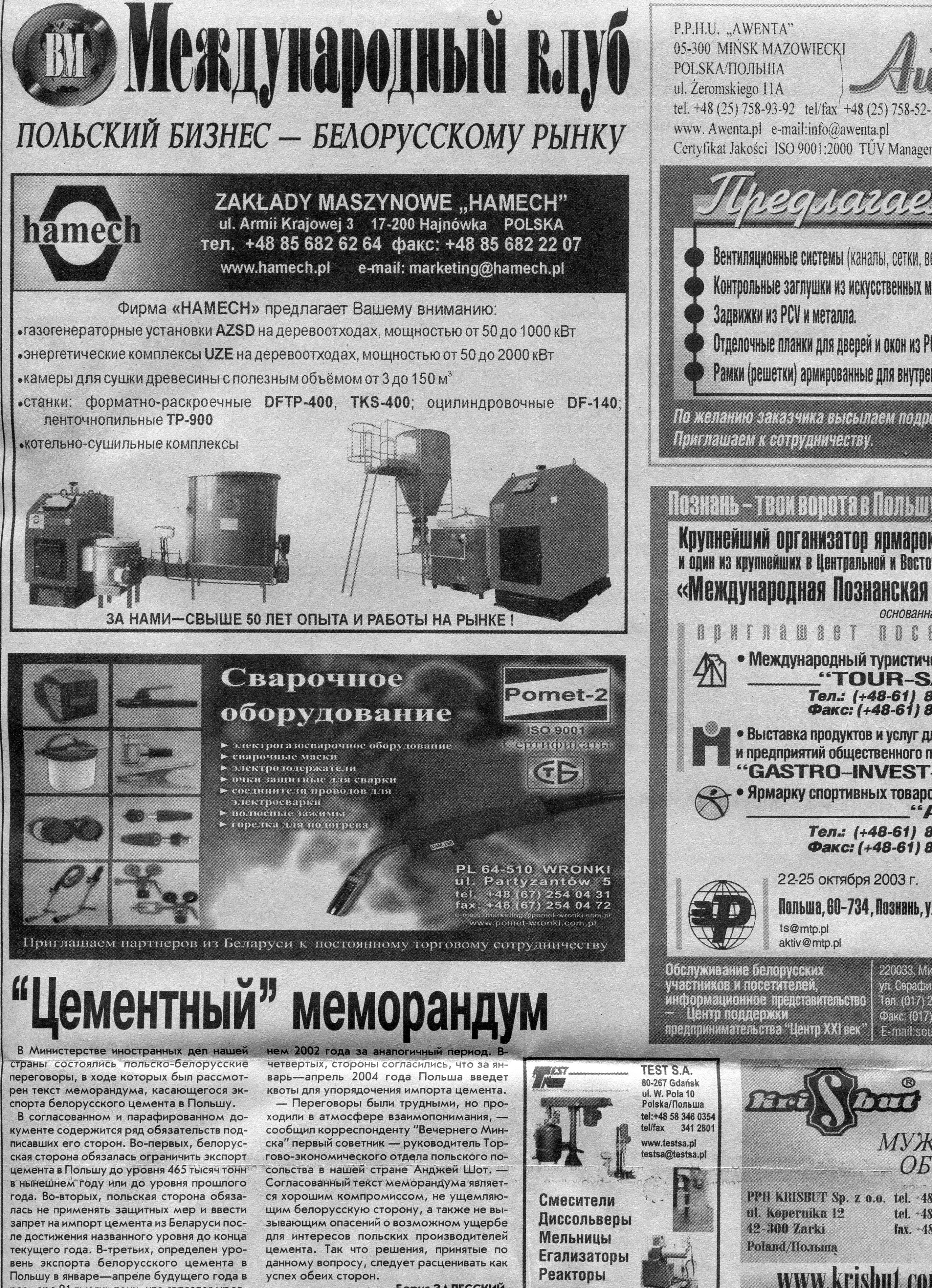 Польский бизнес - белорусскому рынку // Вечерний Минск. - 2003. - 8 окт.