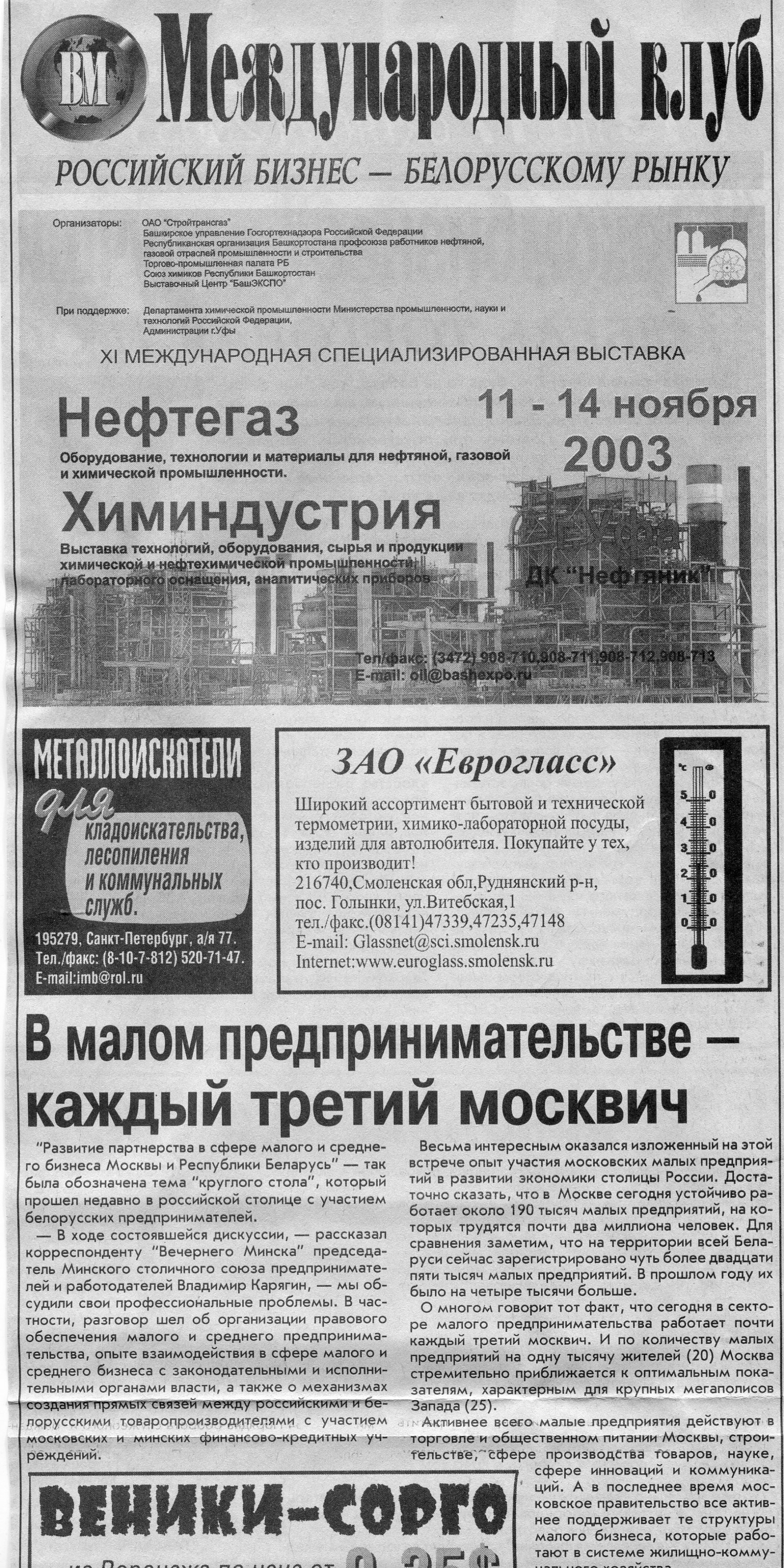 Европейский бизнес - белорусскому рынку // Вечерний Минск. - 2003. - 16 окт.