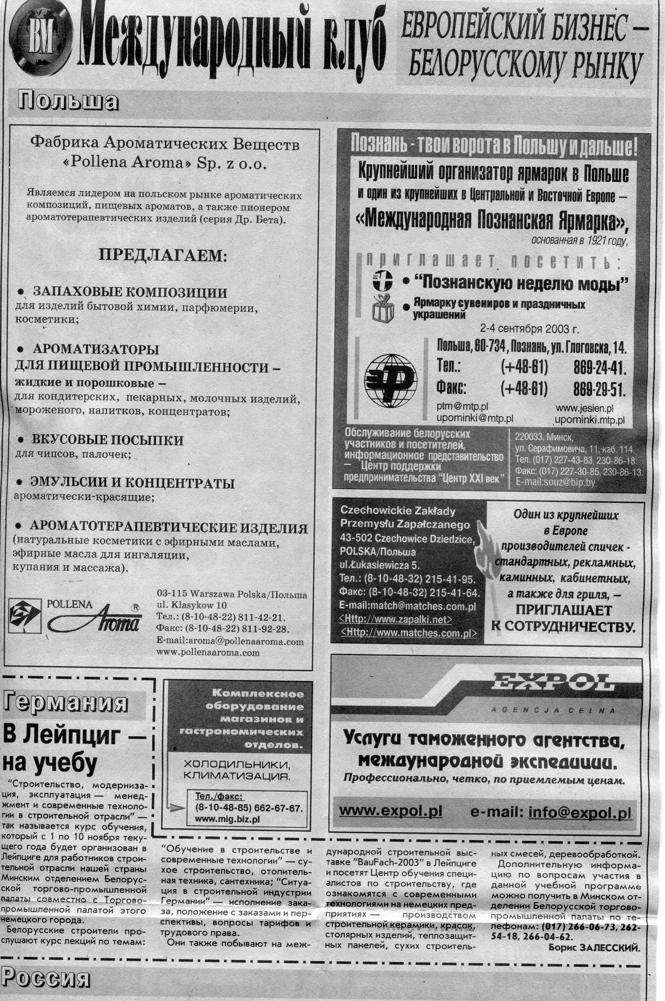 Польский бизнес - белорусскому рынку // Вечерний Минск. - 2003. - 4 сент.