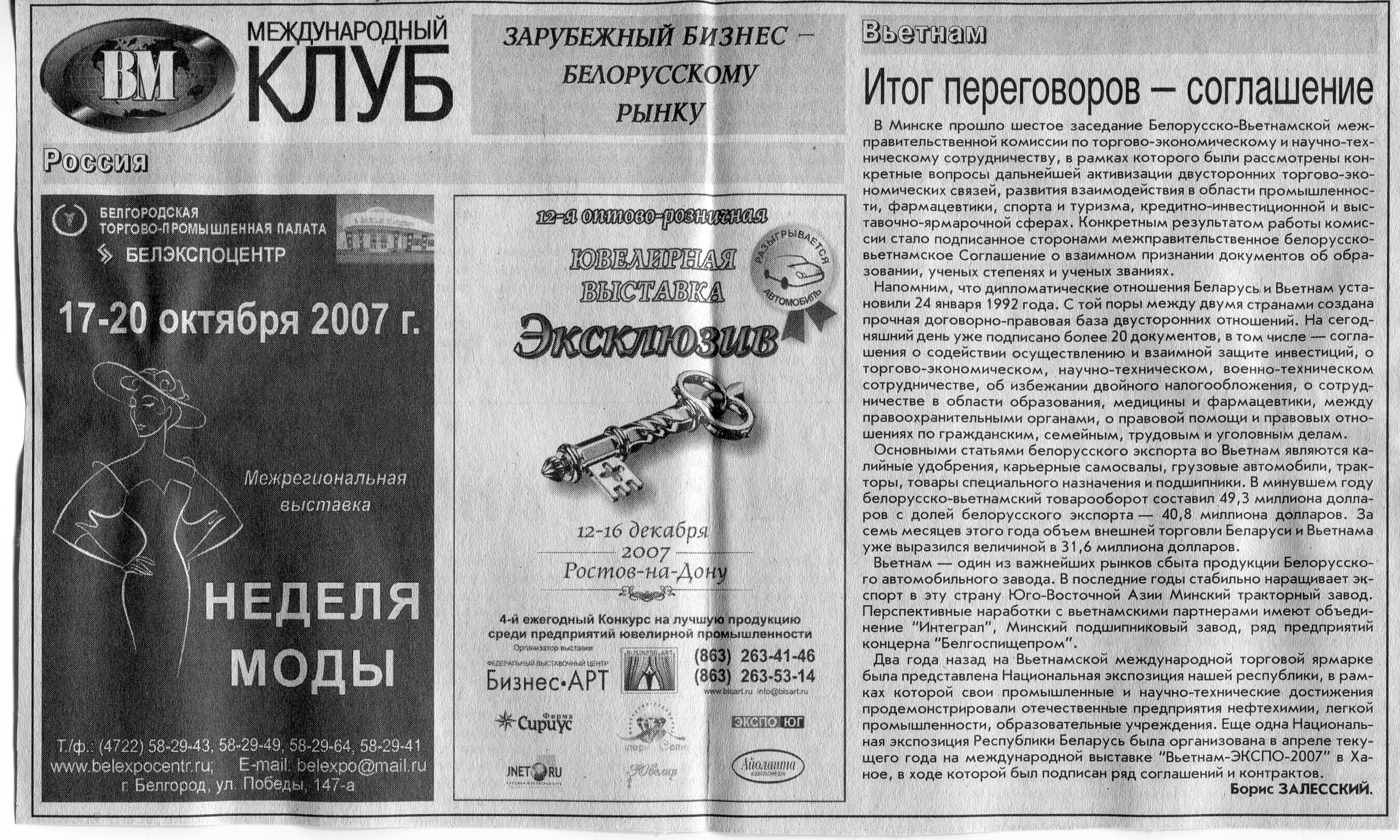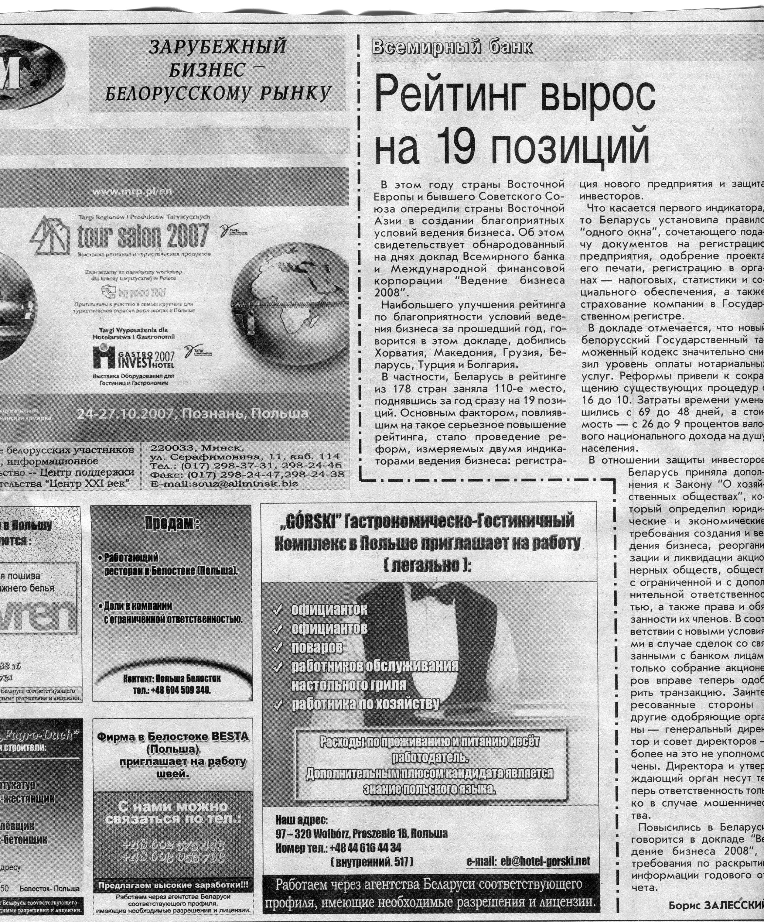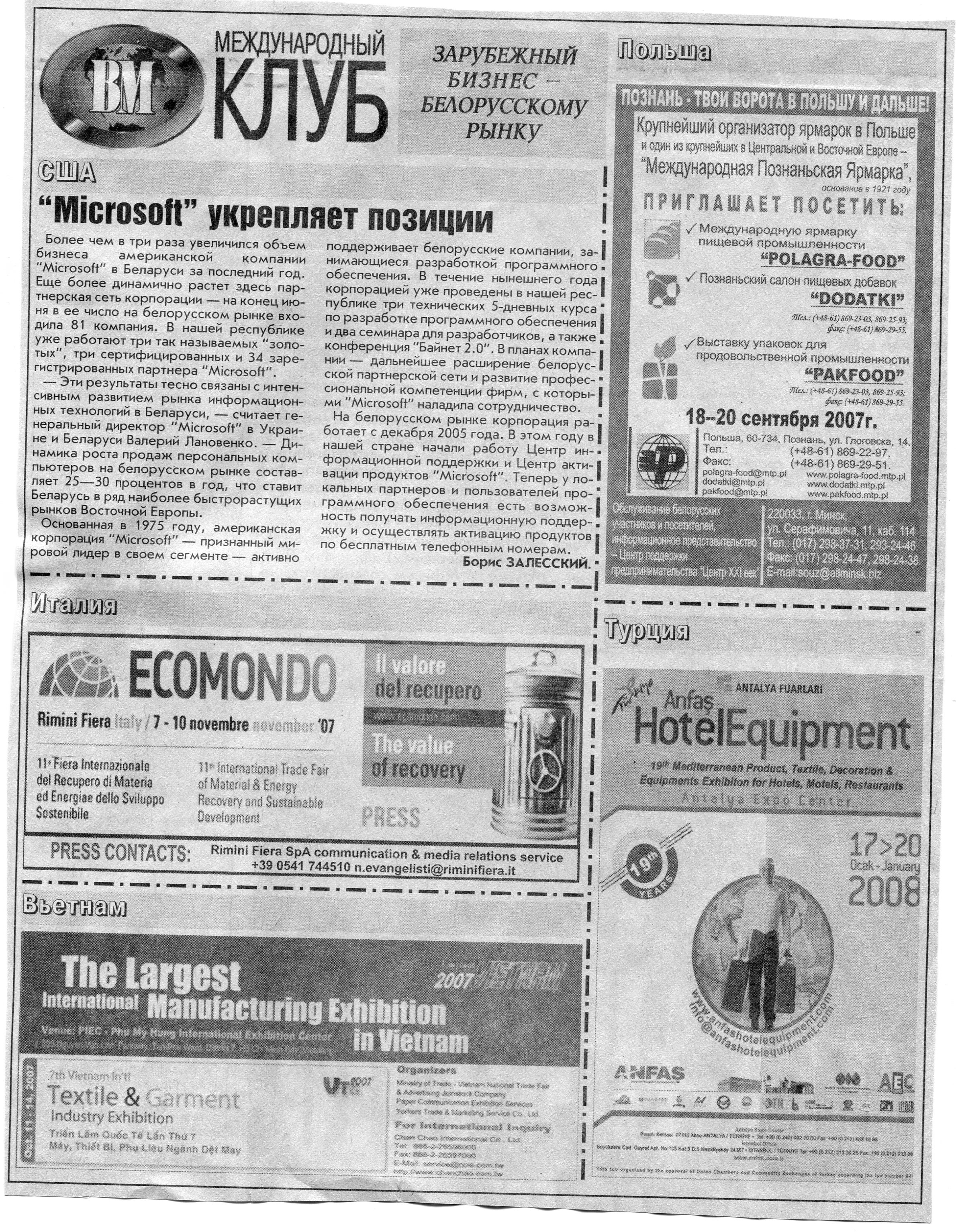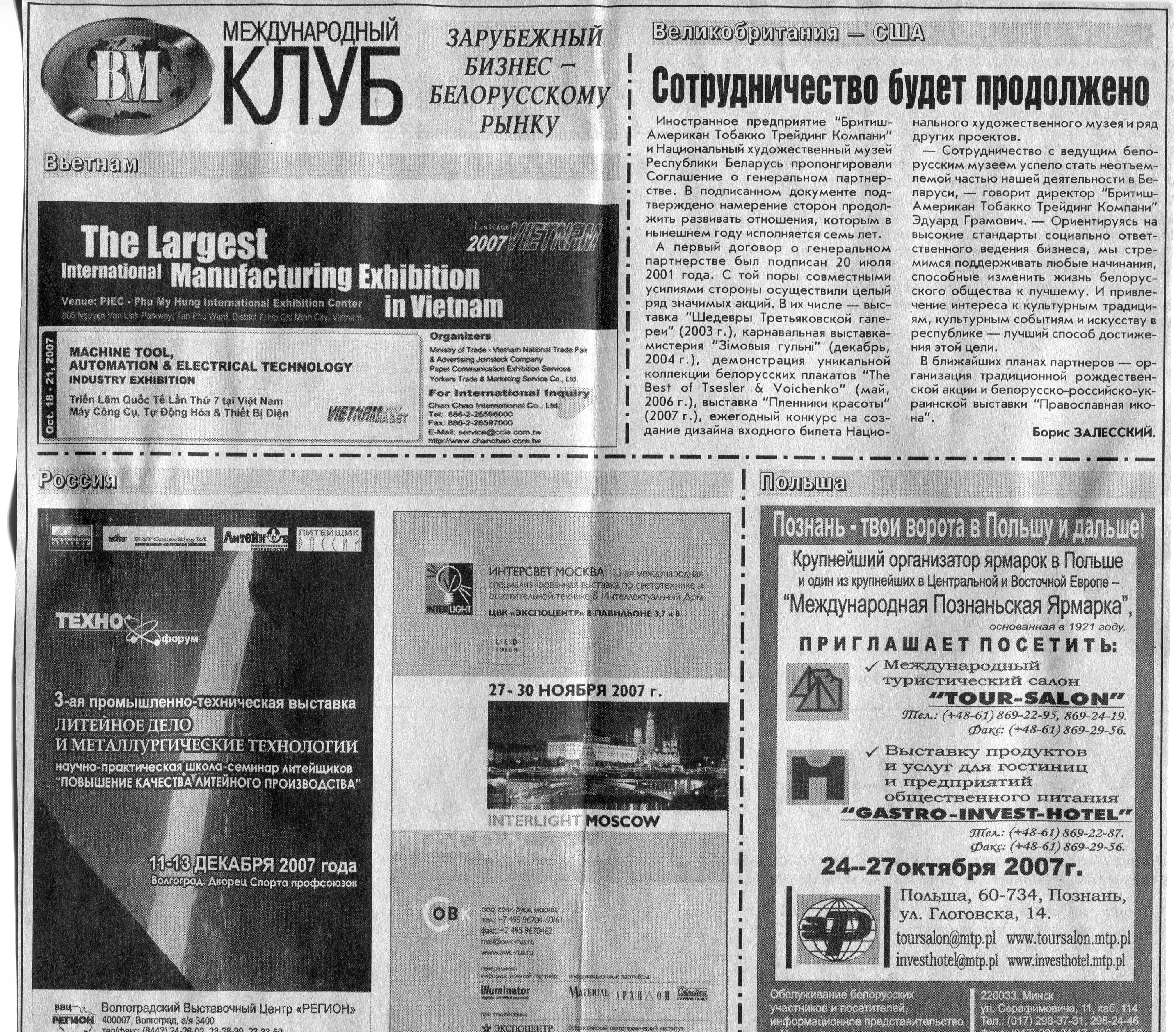 Зарубежный бизнес - белорусскому рынку // Вечерний Минск. - 2007. - 26 сент.
