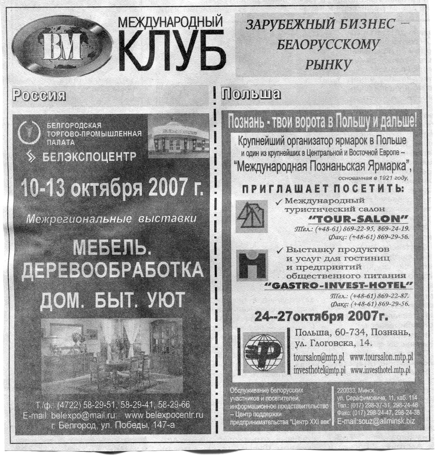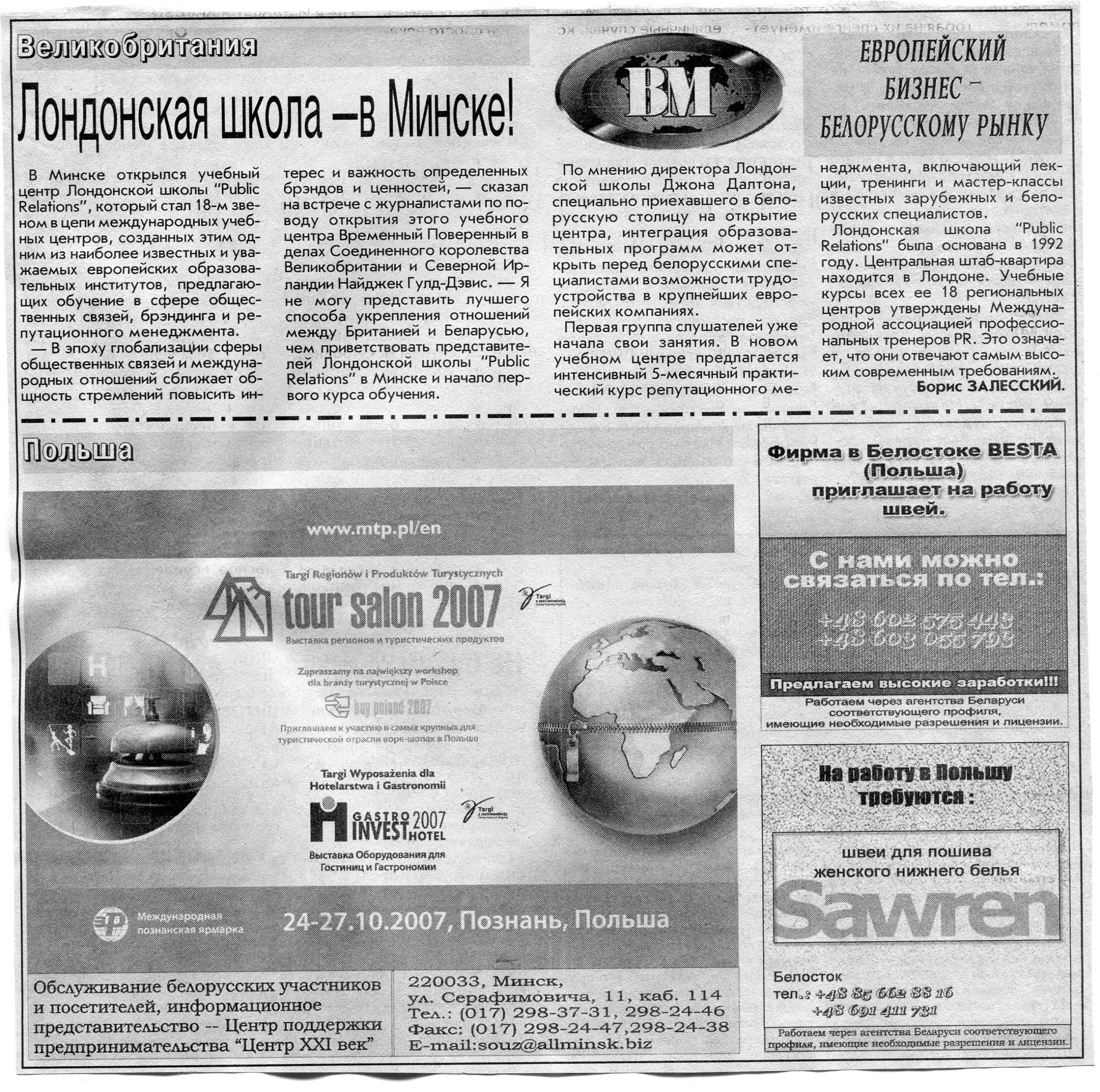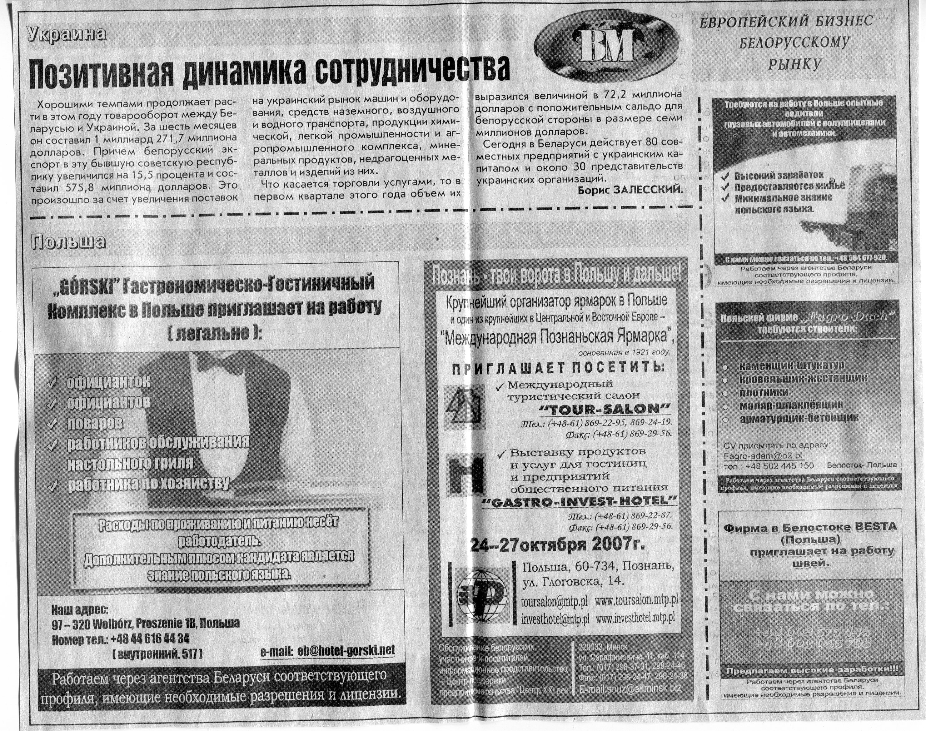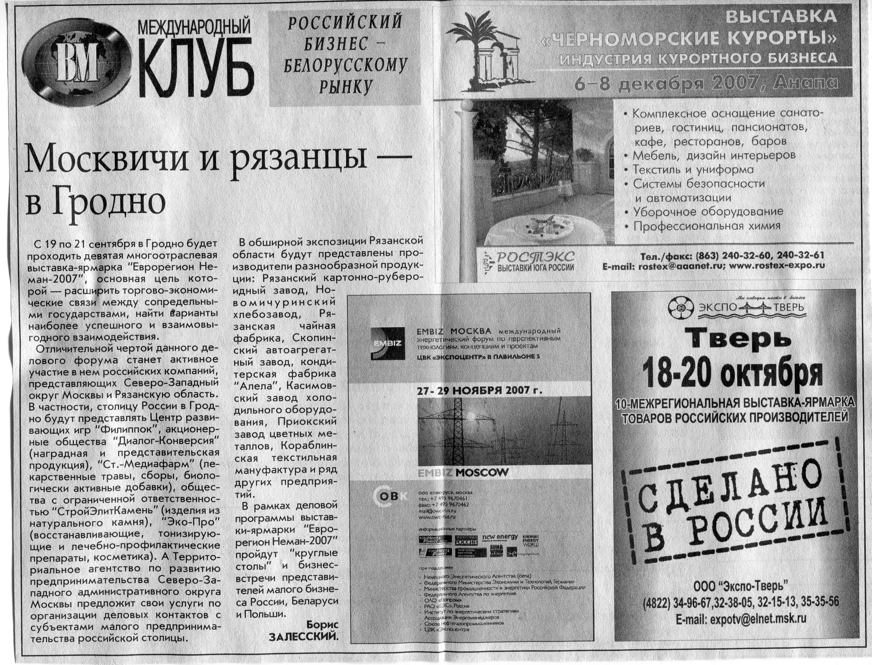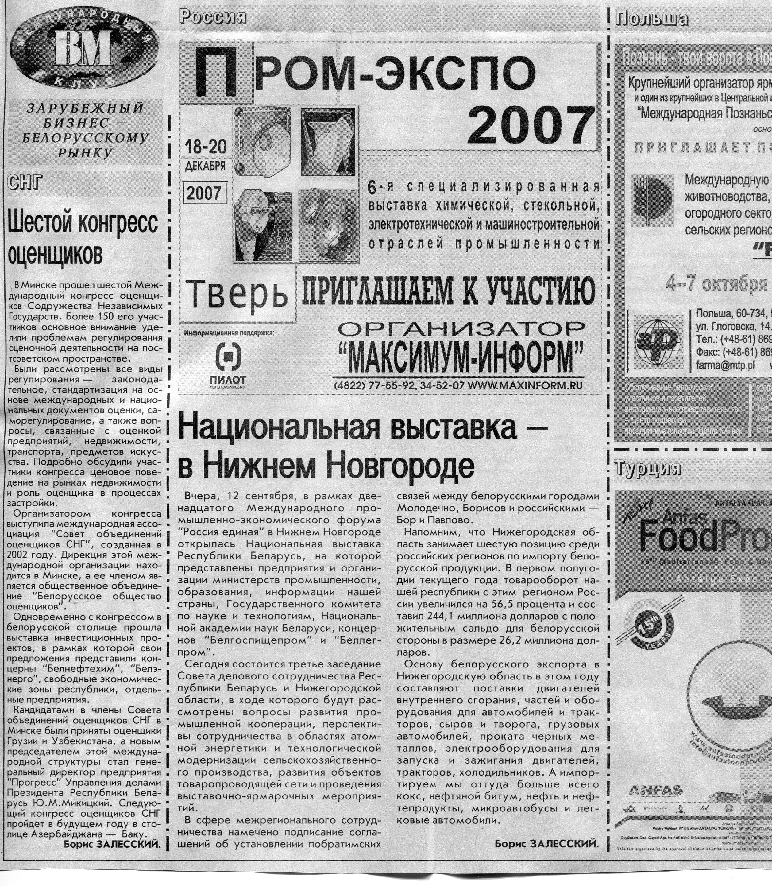 Европейский бизнес - белорусскому рынку // Вечерний Минск. - 2007. - 12 окт.