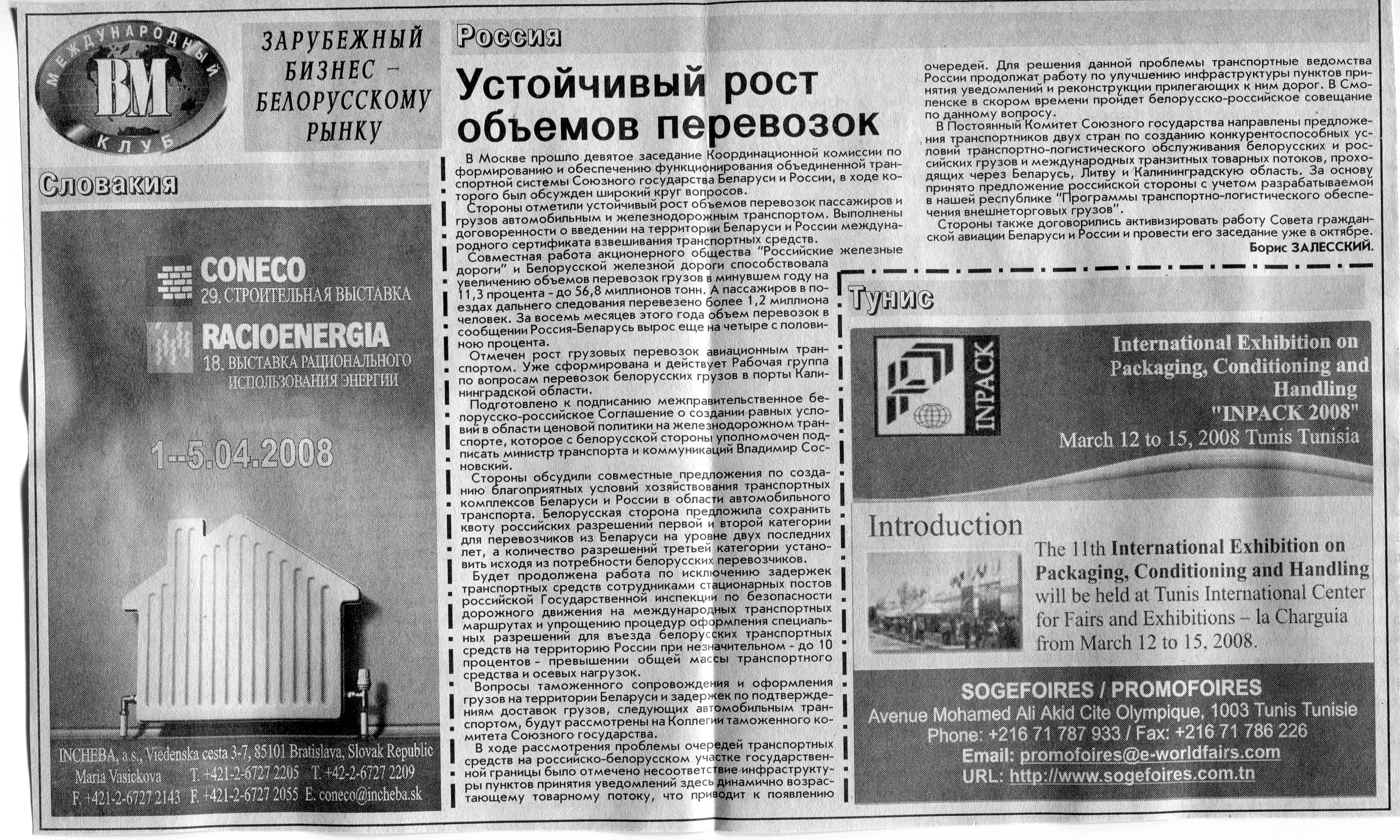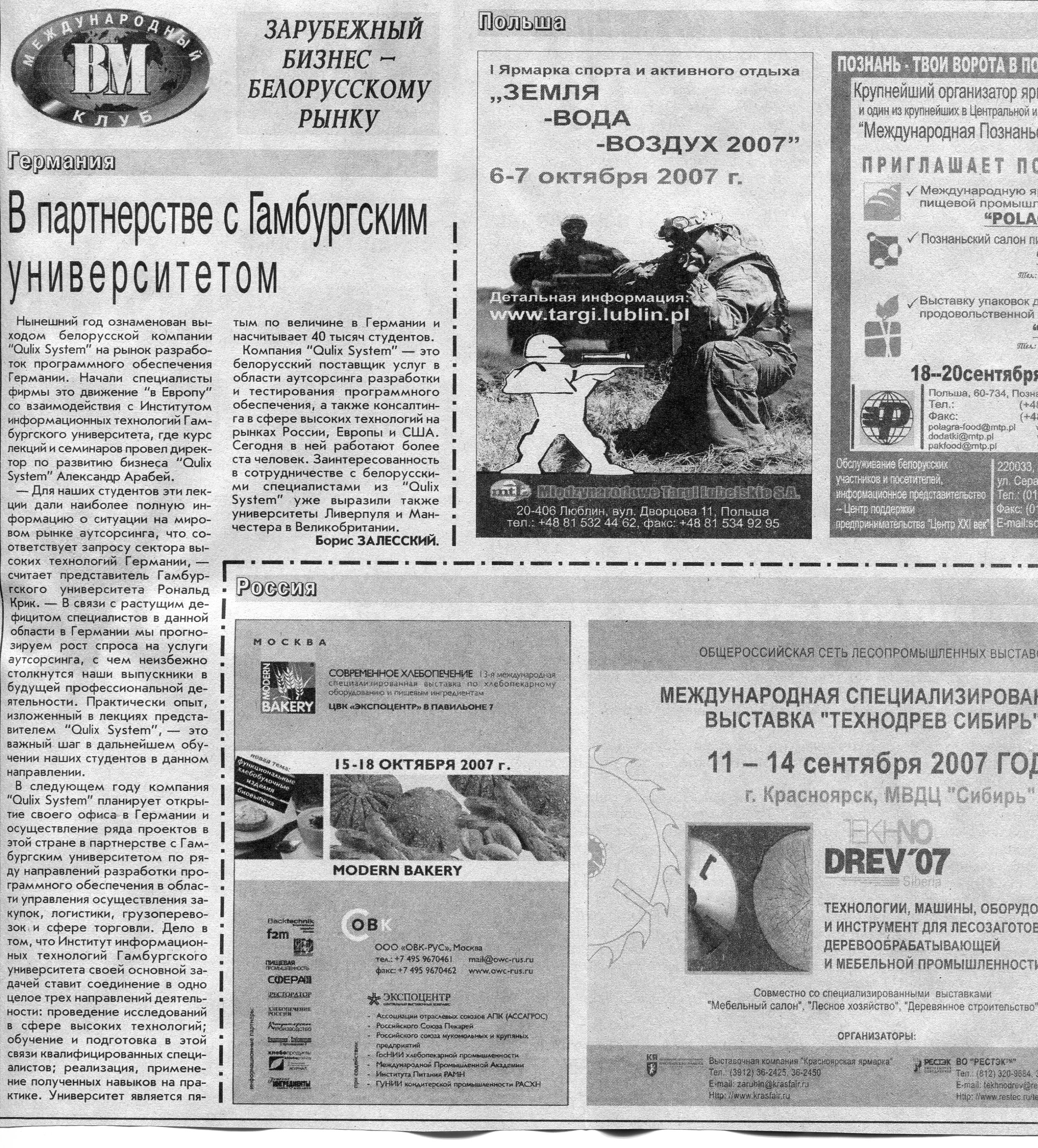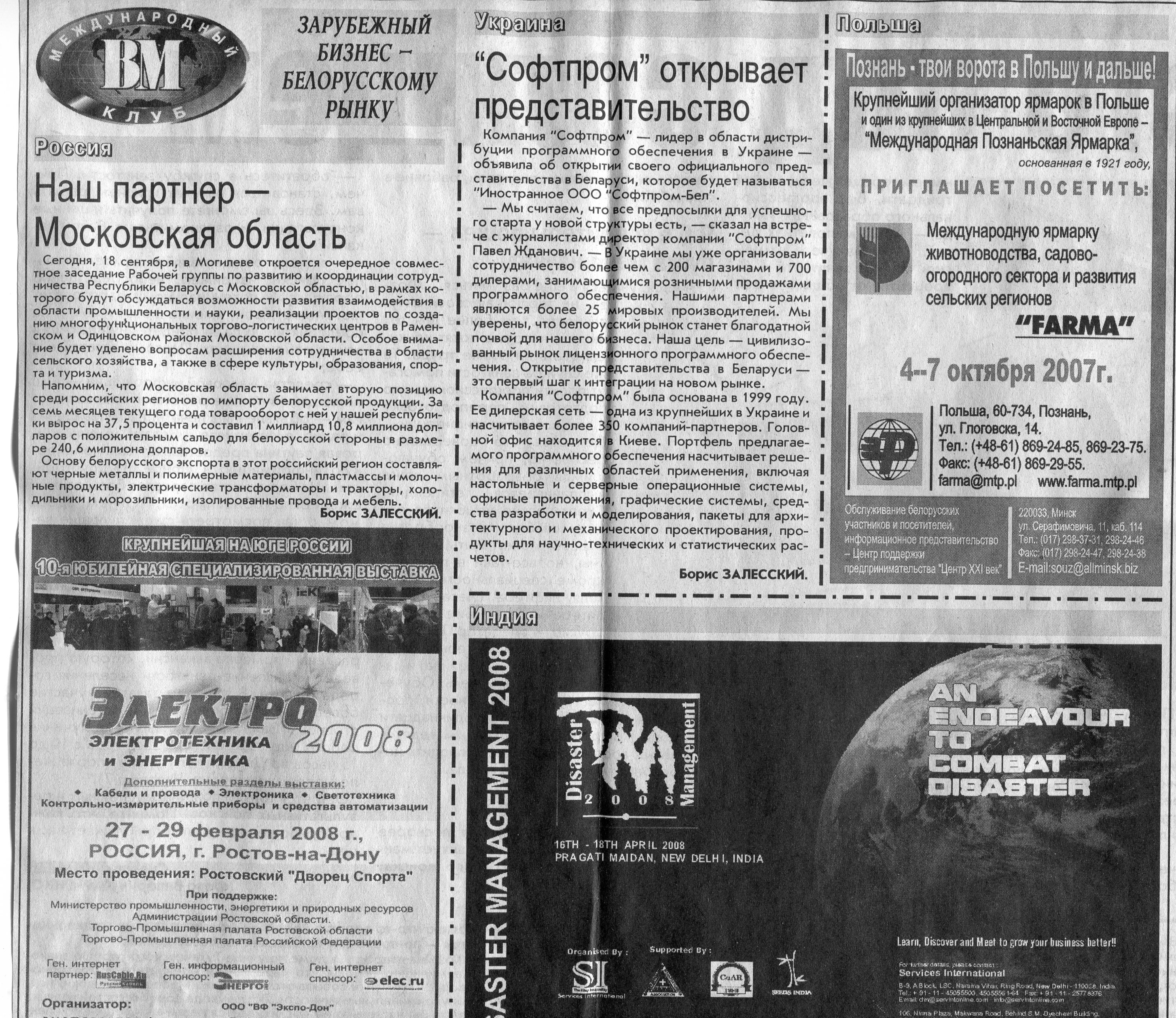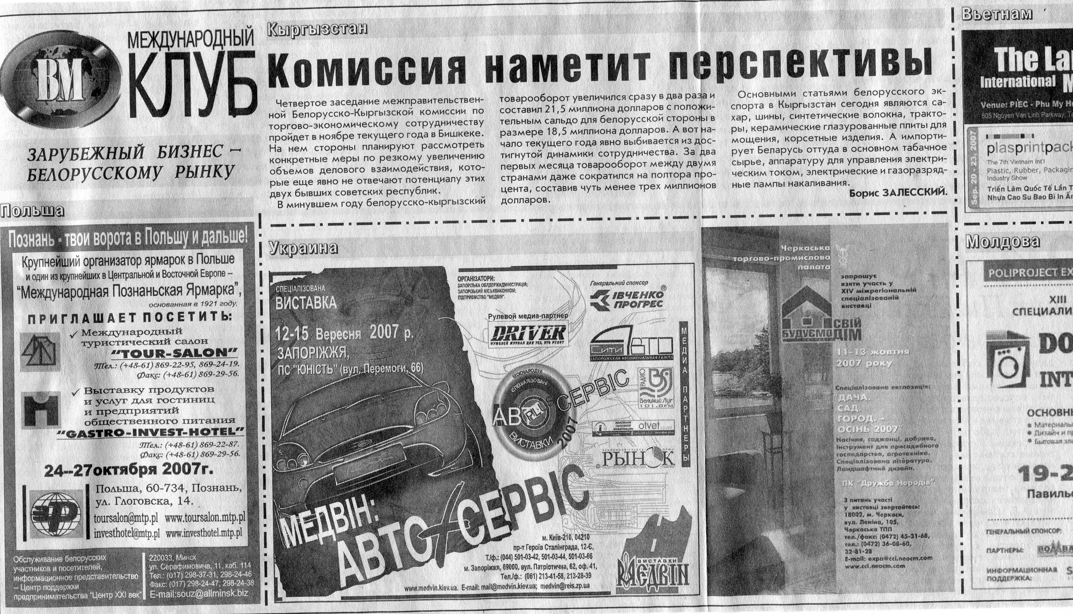 Зарубежный бизнес - белорусскому рынку // Вечерний Минск. - 2007. - 18 сент.