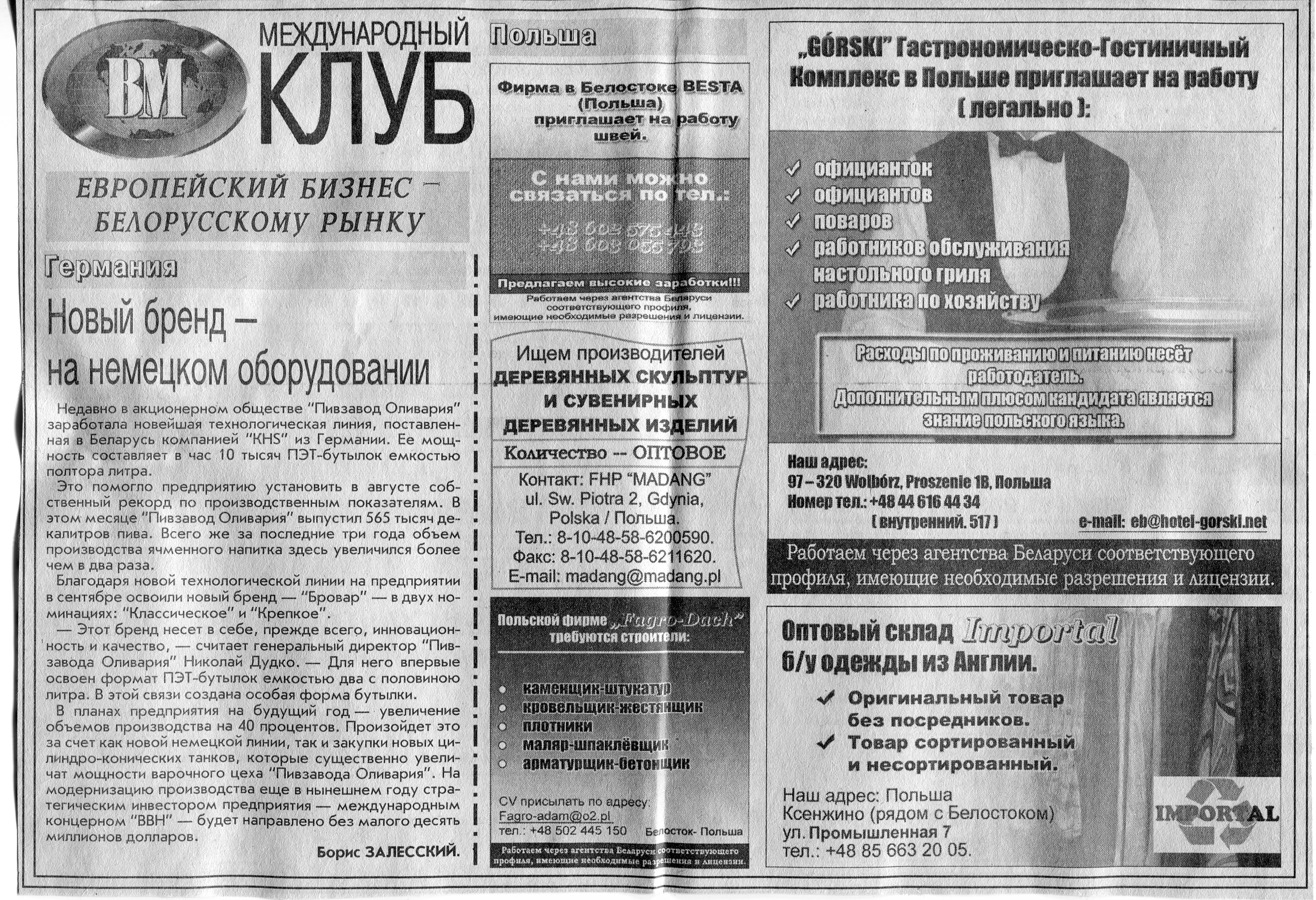 Зарубежный бизнес - белорусскому рынку // Вечерний Минск. - 2007. - 27 сент.