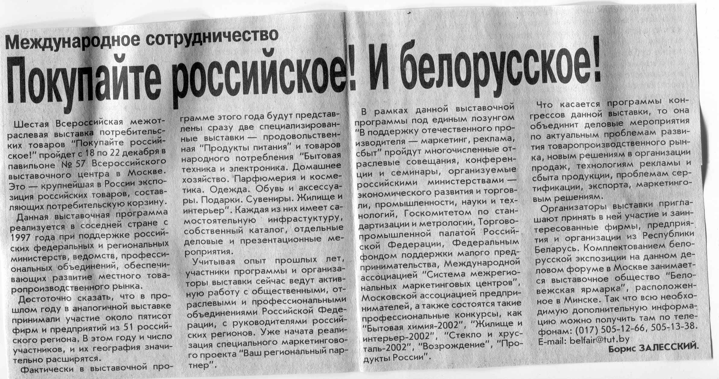Залесский, Б. Покупайте российское! И белорусское! / Б. Залесский // Вечерний Минск. - 2002. - 22 нояб.
