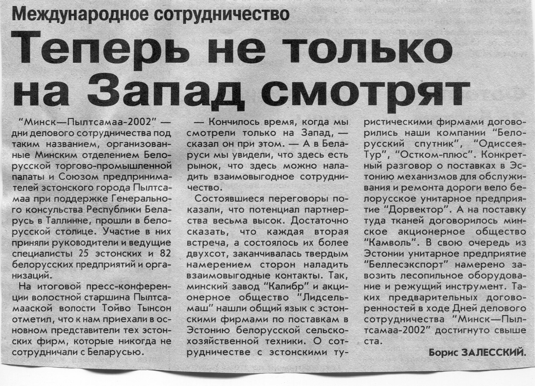 Залесский, Б. Теперь не только на Запад смотрят / Б. Залесский // Вечерний Минск. - 2002. - 11 окт.