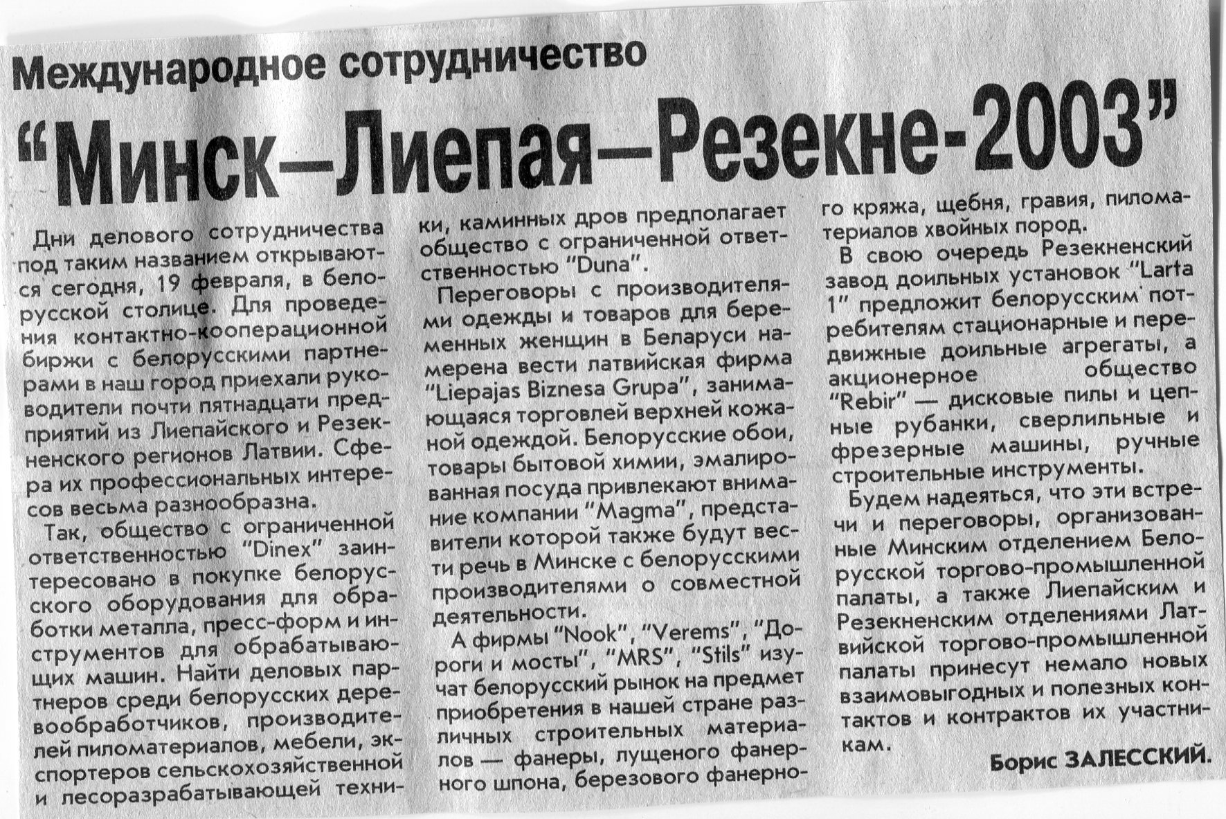 Залесский, Б. "Минск - Лиепая - Резекне - 2003" / Б. Залесский // Вечерний Минск. - 2003. - 19 февр.