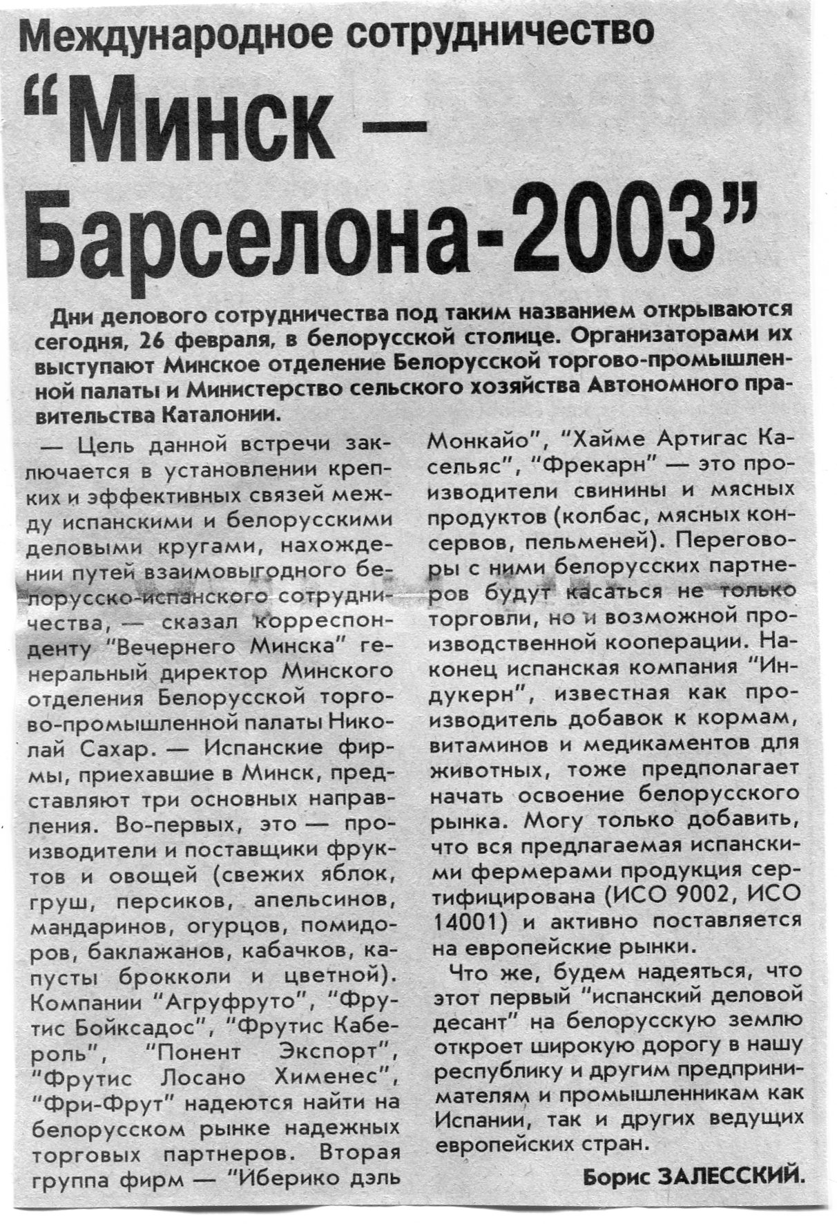 Залесский, Б. "Минск - Барселона - 2003" / Б. Залесский // Вечерний Минск. - 2003. - 26 февр.