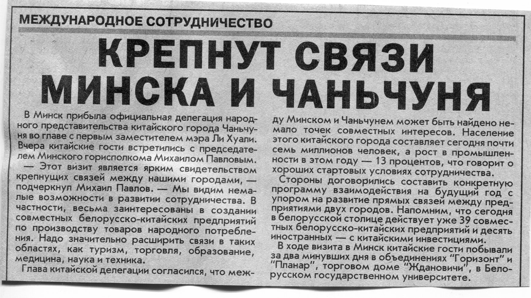 Залесский, Б. Крепнут связи Минска и Чанчуня / Б. Залесский // Вечерний Минск. - 2000. - 29 нояб.