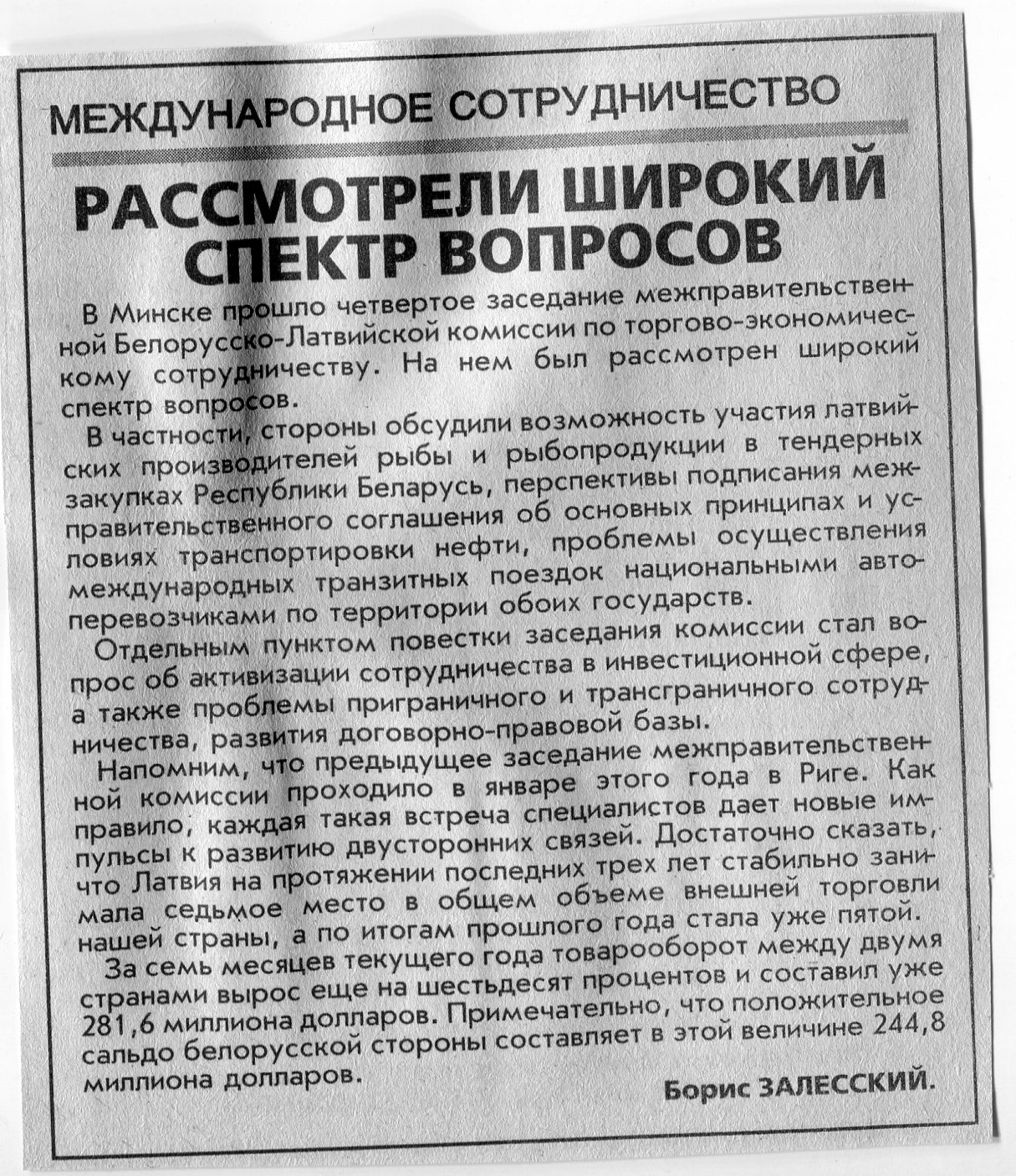 Залесский, Б. Рассмотрели широкий спектр вопросов / Б. Залесский // Вечерний Минск. - 2000. - 10 окт.