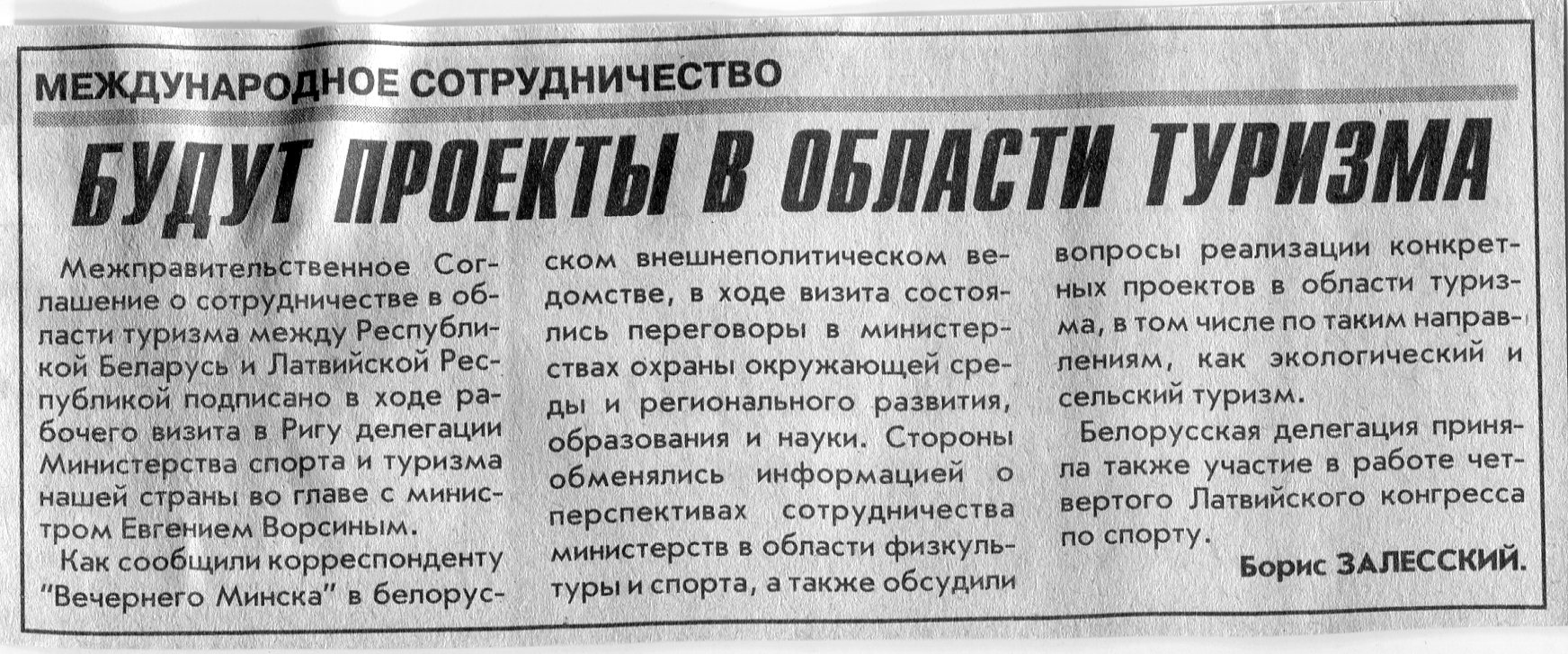 Залесский, Б. Будут проекты в области туризма / Б. Залесский // Вечерний Минск. - 2001. - 22 янв.