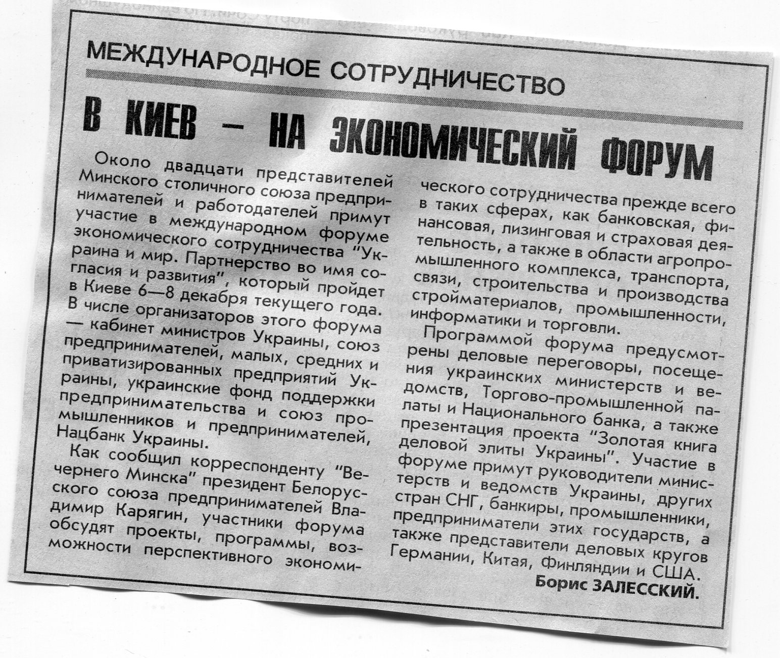 Залесский, Б. В Киев - на экономический форум / Б. Залесский / Вечерний Минск. - 2000. - 9 окт.