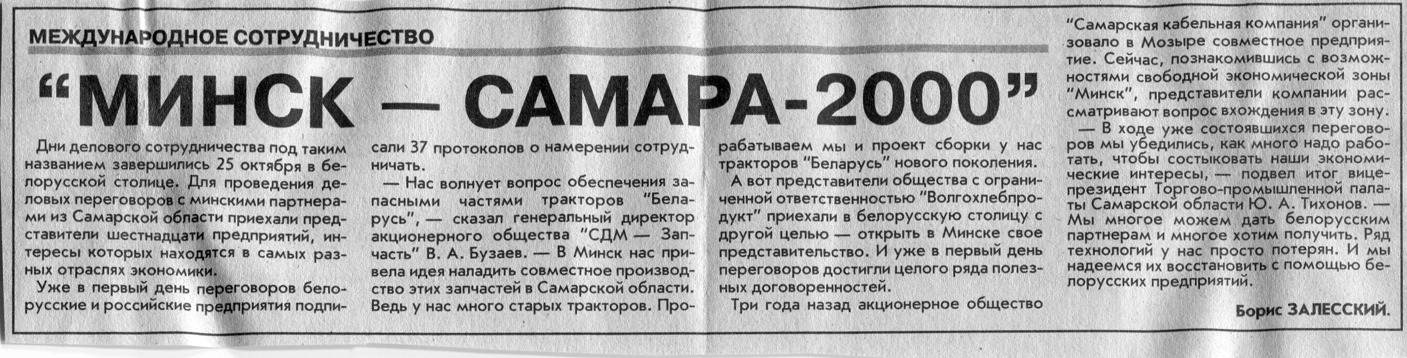 Залесский, Б. "Минск - Самара - 2000" / Б. Залесский // Вечерний Минск. - 2000. - 26 окт.
