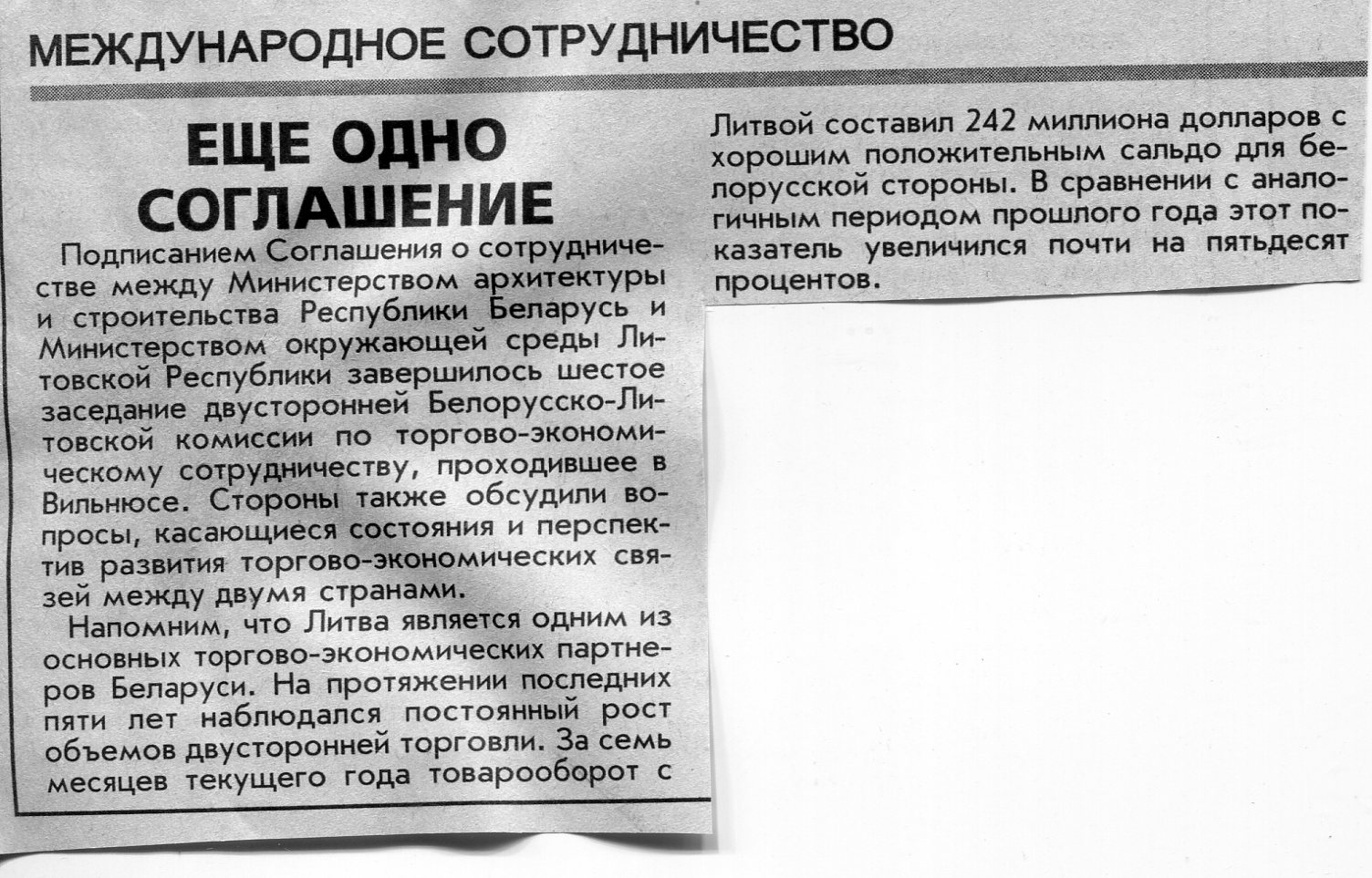 Залесский, Б. Еще одно соглашение / Б. Залесский // Вечерний Минск. - 2000. - 9 окт.