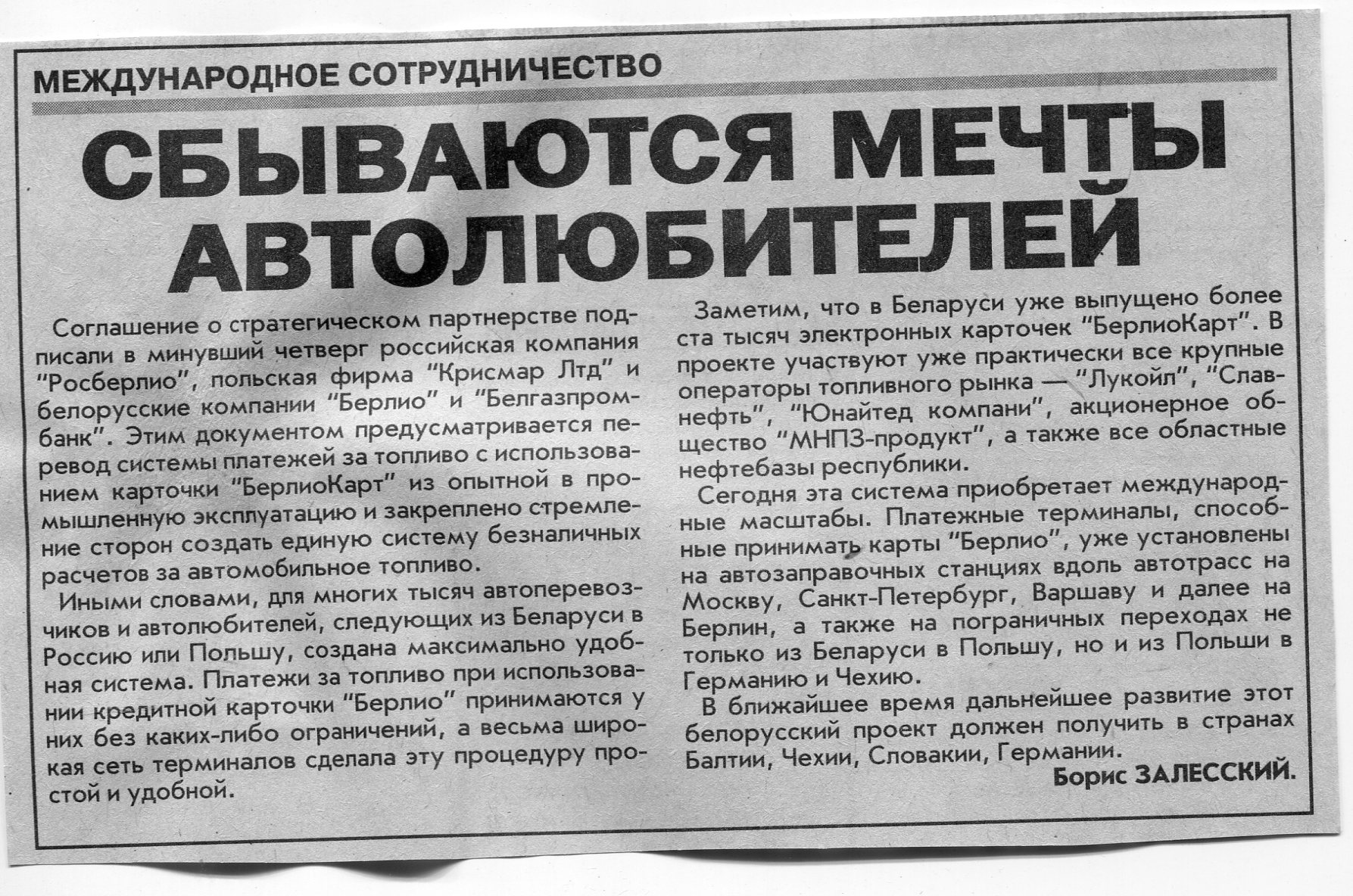 Залесский, Б. Сбываются мечты автолюбителей / Б. Залесский // Вечерний Минск. - 2000. - 11 дек.