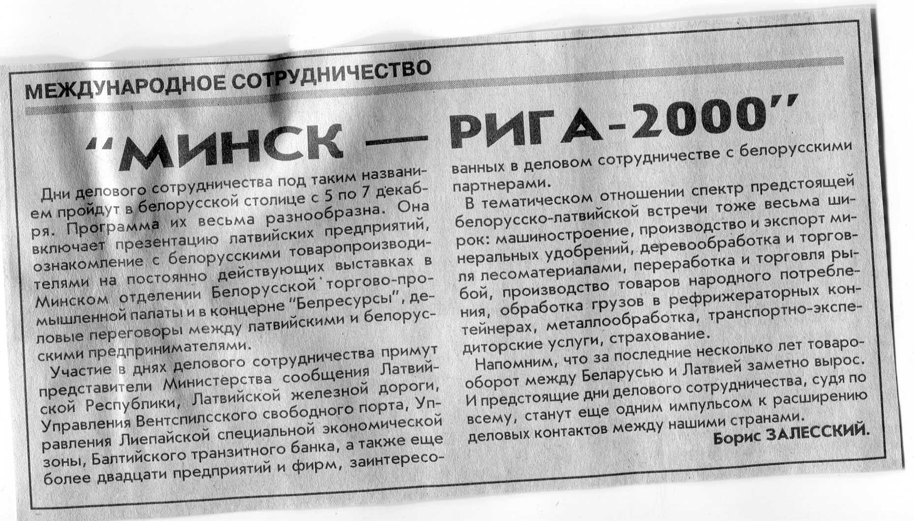 Залесский, Б. "Минск - Рига - 2000" / Б. Залесский // Вечерний Минск. - 2000. - 4 дек.