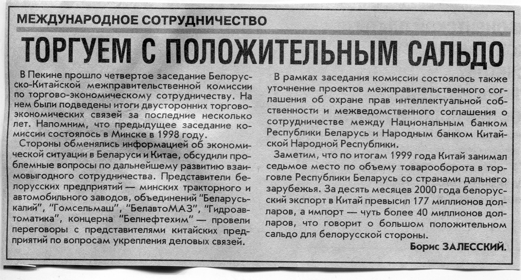 Залесский, Б. Торгуем с положительным сальдо / Б. Залесский // Вечерний Минск. - 2000. - 27 дек.
