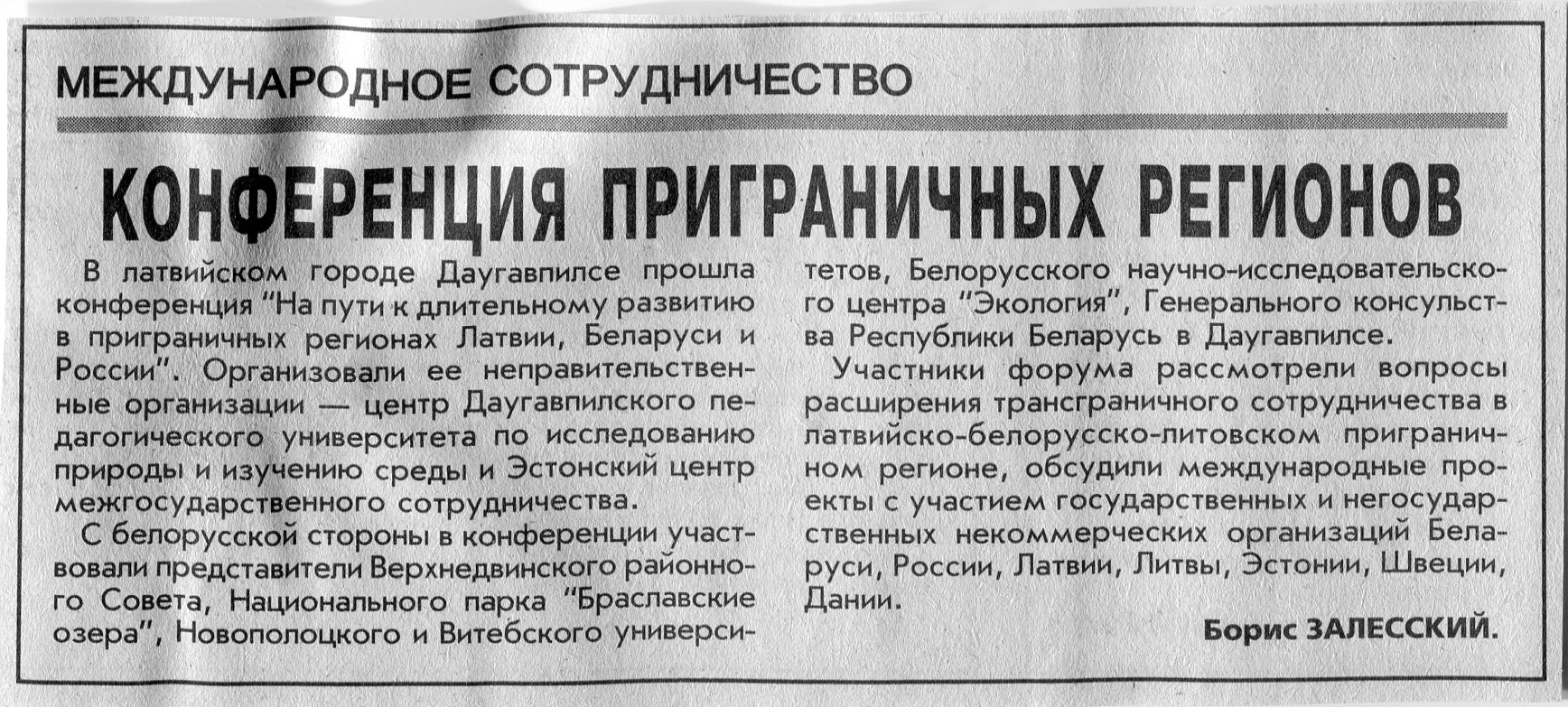 Залесский, Б. Конференция приграничных регионов / Б. Залесский // Вечерний Минск. - 2000. - 6 окт.