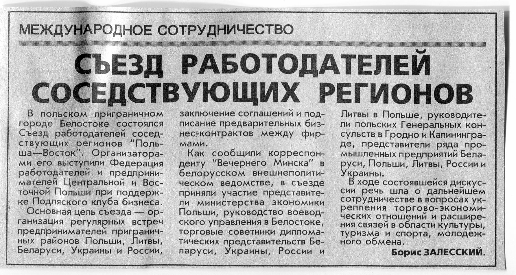 Залесский, Б. Съезд работодателей соседствующих регионов / Б. Залесский // Вечерний Минск. - 2000. - 2 окт.