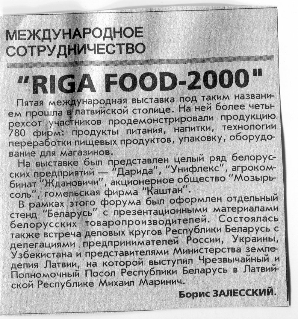 Залесский, Б. "Riga food-2000" / Б. Залесский // Вечерний Минск. - 2000. - 27 сент.