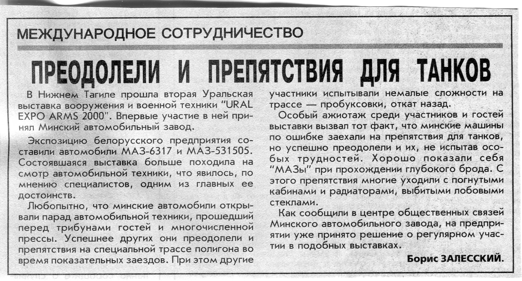 Залесский, Б. Преодолели и препятствия для танков / Б. Залесский // Вечерний Минск. - 2000. - 21 июл.