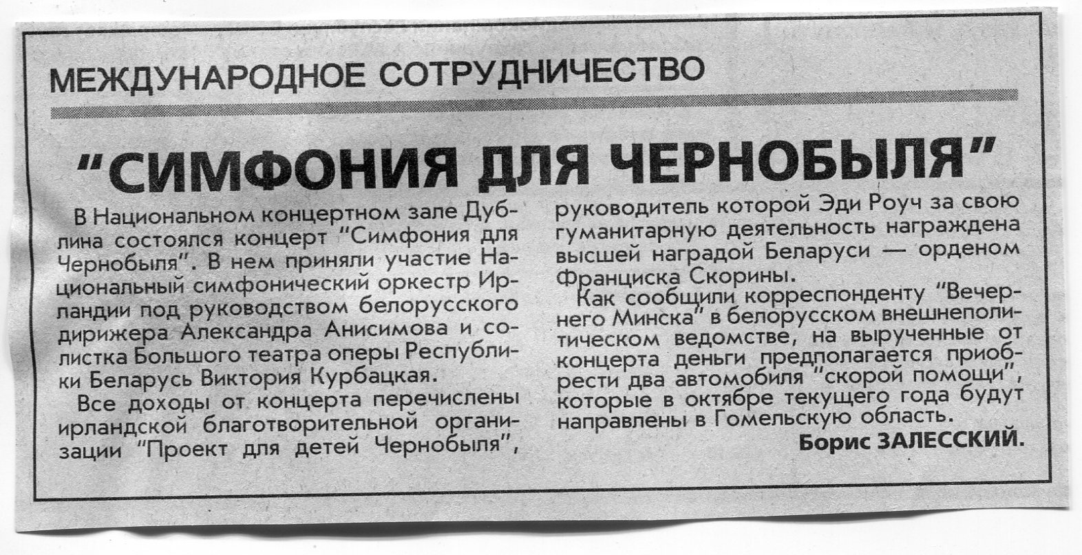 Залесский, Б. "Симфония для Чернобыля" / Б. Залесский // Вечерний Минск. - 2000. - 4 окт.