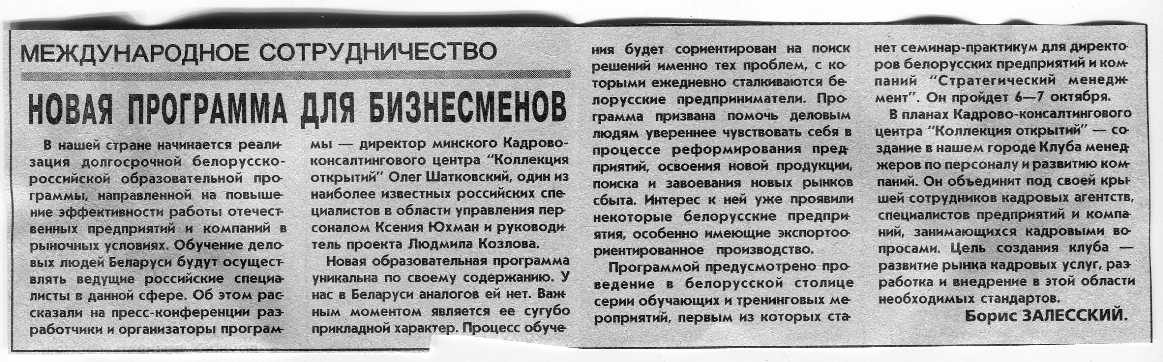 Залесский, Б. Новая программа для бизнесменов / Б. Залесский // Вечерний Минск. - 2000. - 3 окт.