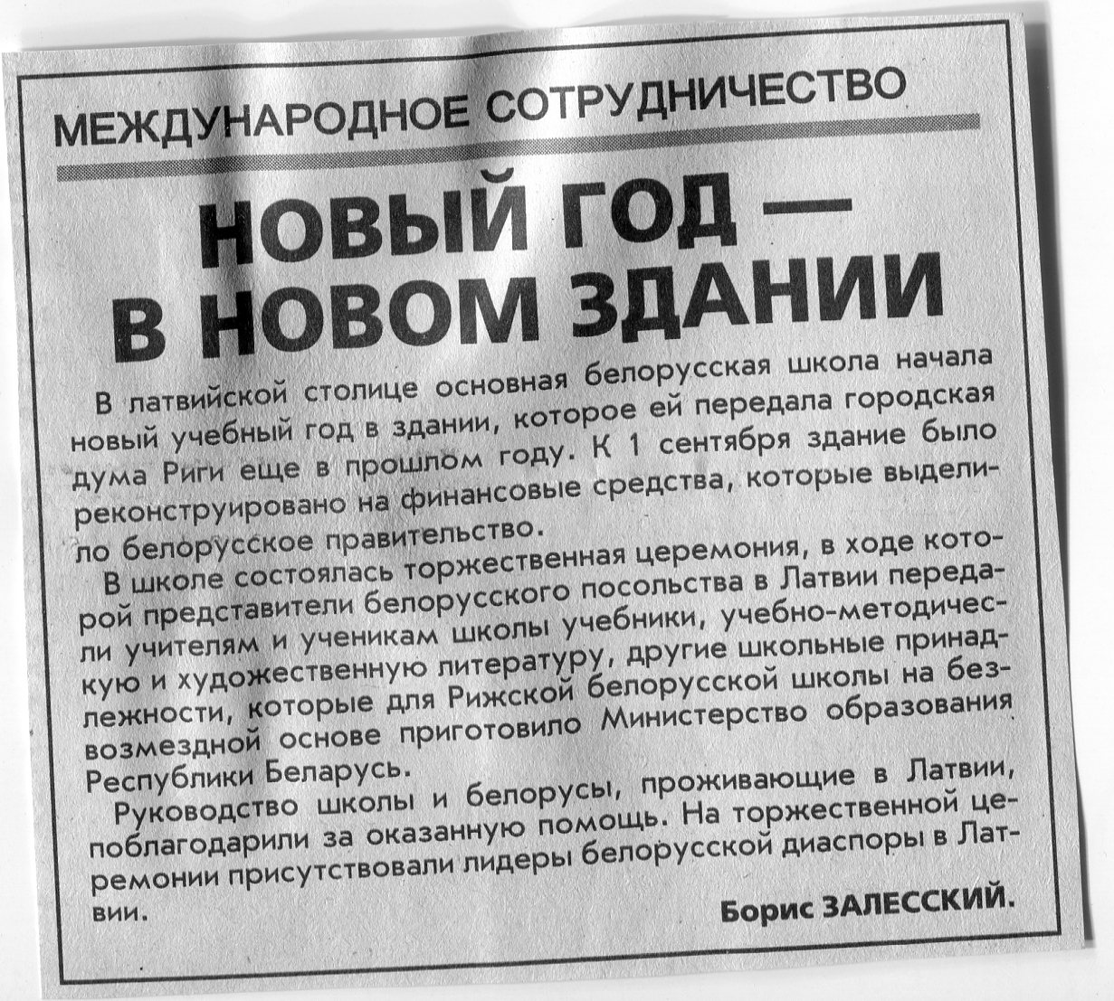 Залесский, Б. Новый год - в новом здании / Б. Залесский // Вечерний Минск. - 2000. - 12 сент.