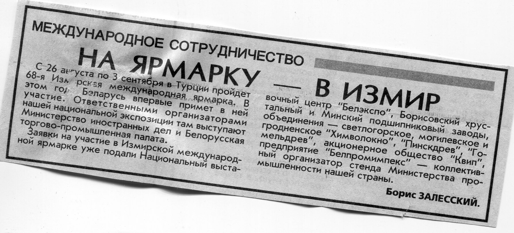 Залесский, Б. На ярмарку - в Измир / Б. Залесский // Вечерний Минск. - 1999. - 13 авг.