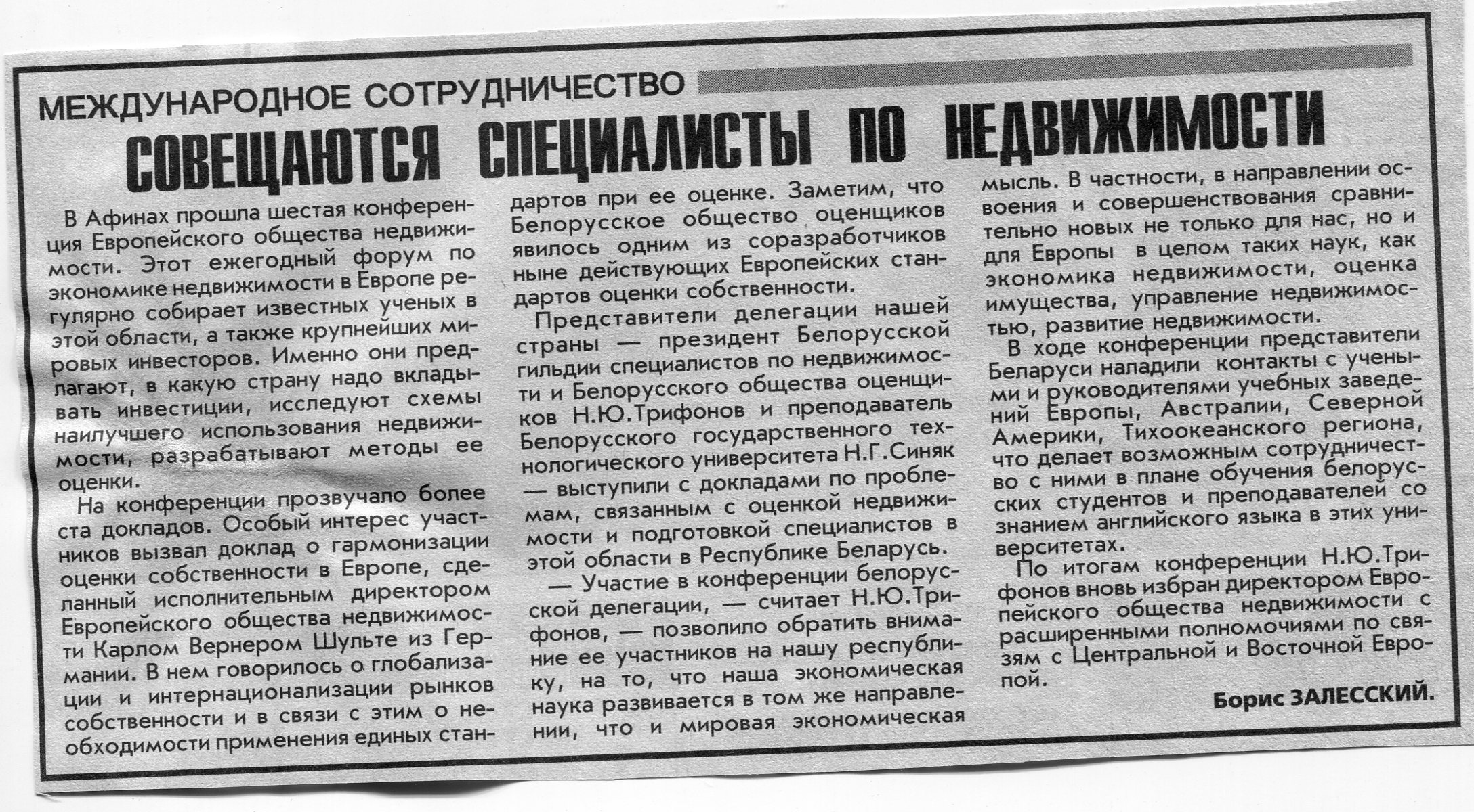 Залесский, Б. Совещаются специалисты по недвижимости / Б. Залесский // Вечерний Минск. - 1999. - 3 авг.