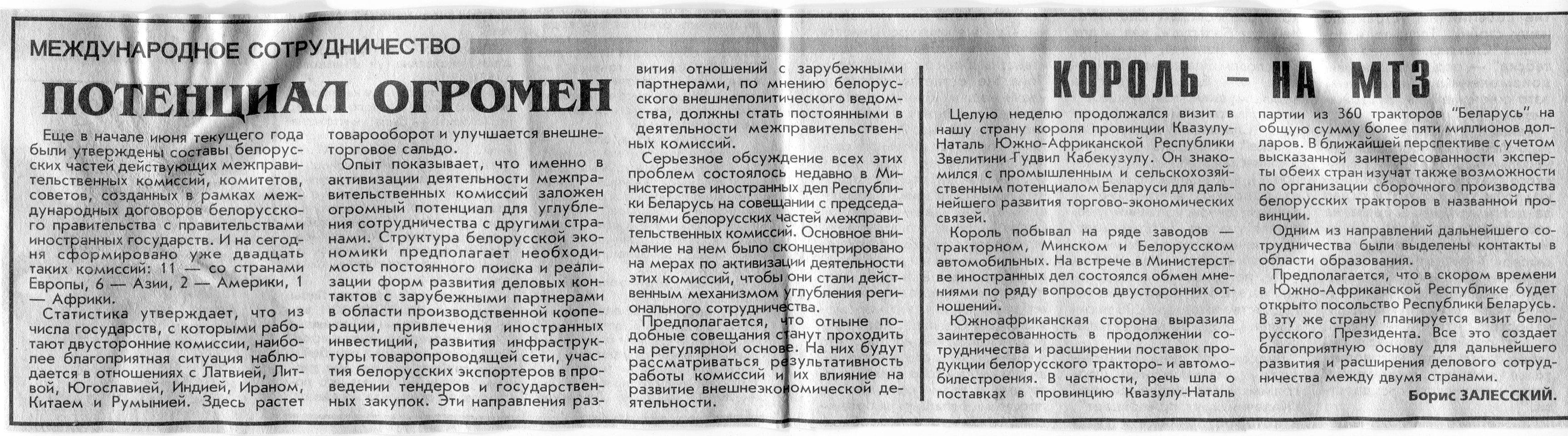 Залесский, Б. Международное сотрудничество / Б. Залесский // Вечерний Минск. - 1999. - 23 июл.