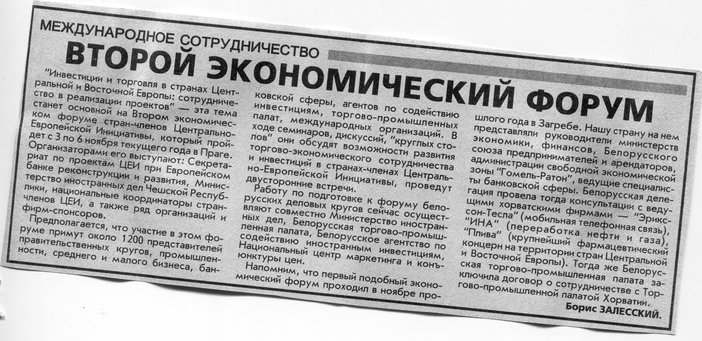 Залесский, Б. Второй экономический форум / Б. Залесский // Вечерний Минск. - 1999. - 6 сент.