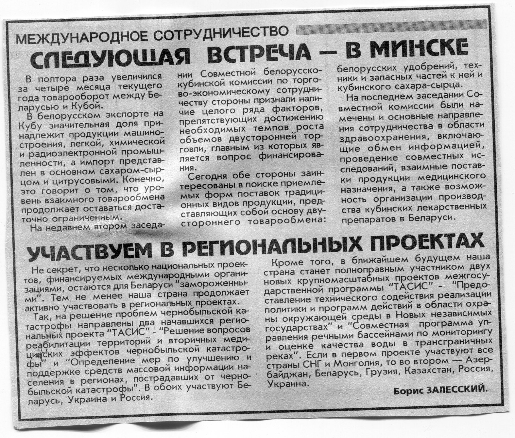Залесский, Б. Международное сотрудничество / Б. Залесский // Вечерний Минск. - 1999. - 14 июл.