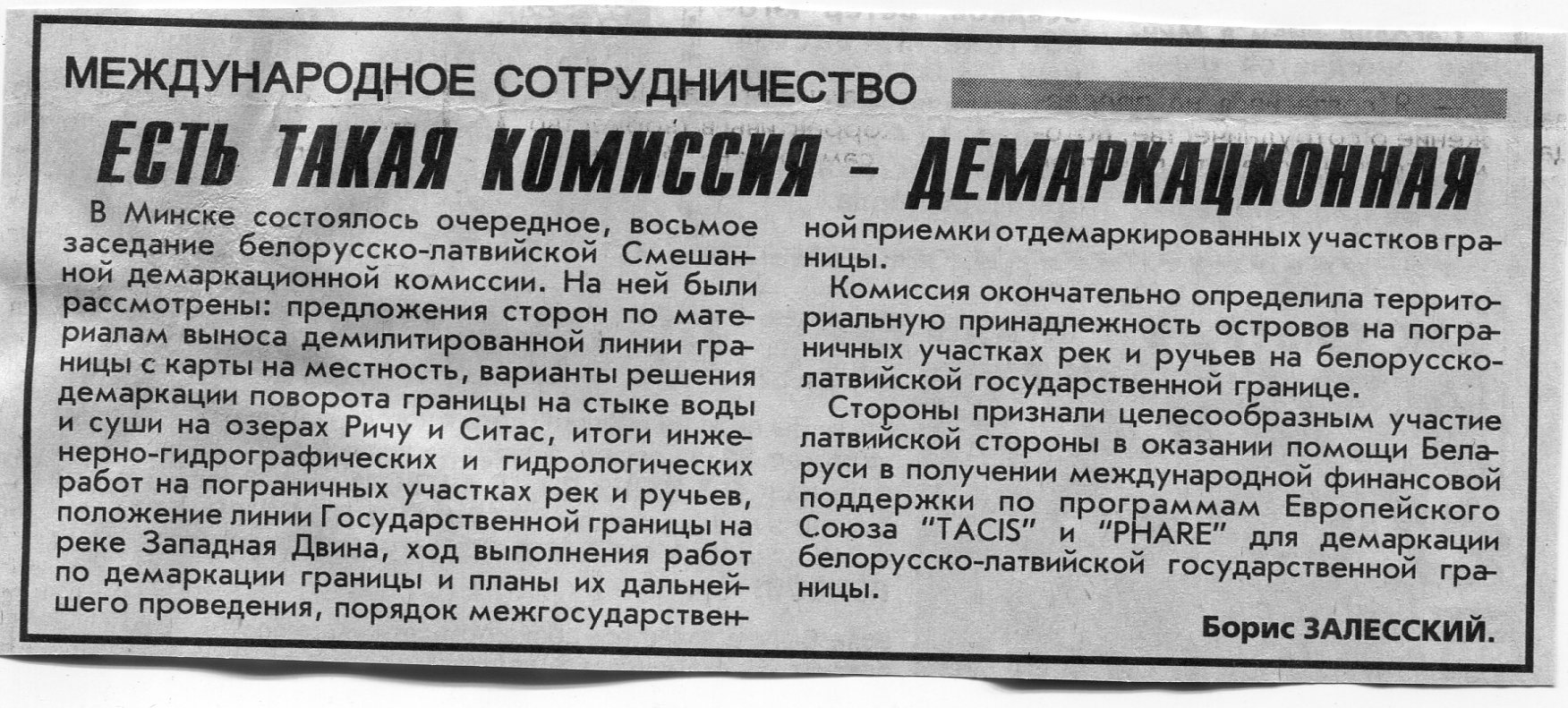 Залесский, Б. Есть такая комиссия - демаркационная / Б. Залесский // Вечерний Минск. - 1999. - 8 июн.