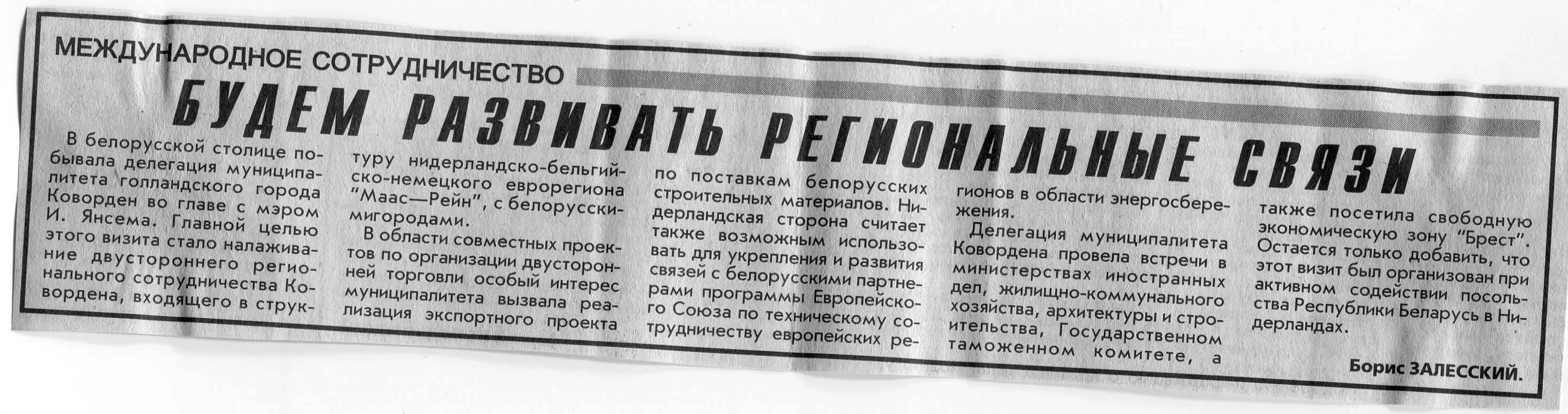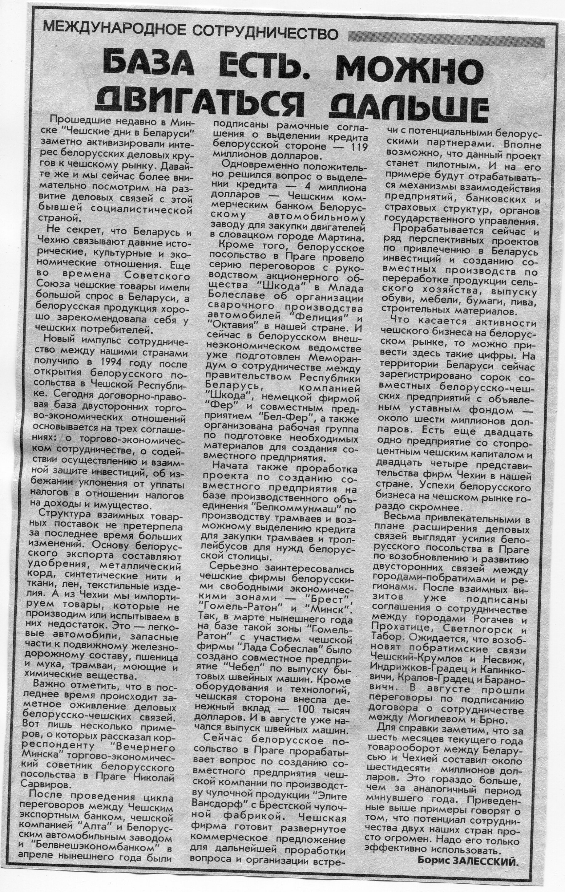 Залесский, Б. Будем развивать региональные связи / Б. Залесский // Вечерний Минск. - 1999. - 15 янв.