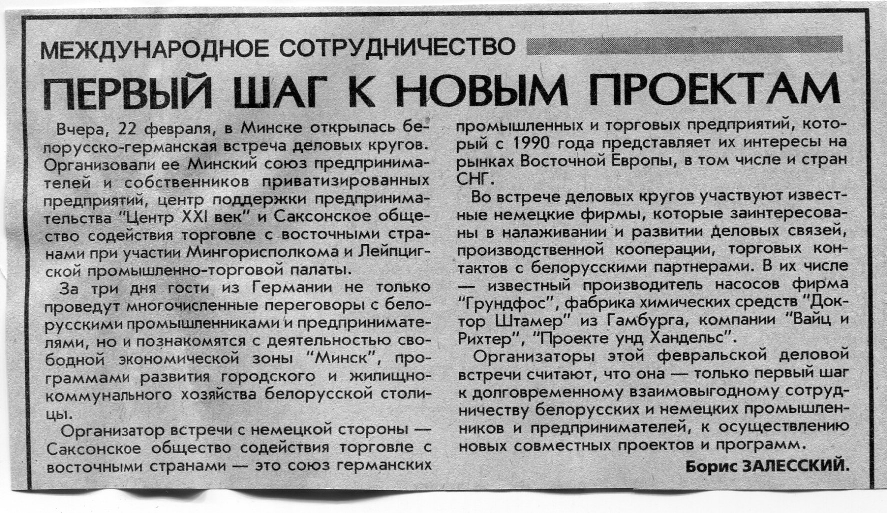 Залесский, Б. Первый шаг к новым проектам / Б. Залесский // Вечерний Минск. - 1999. - 23 февр.
